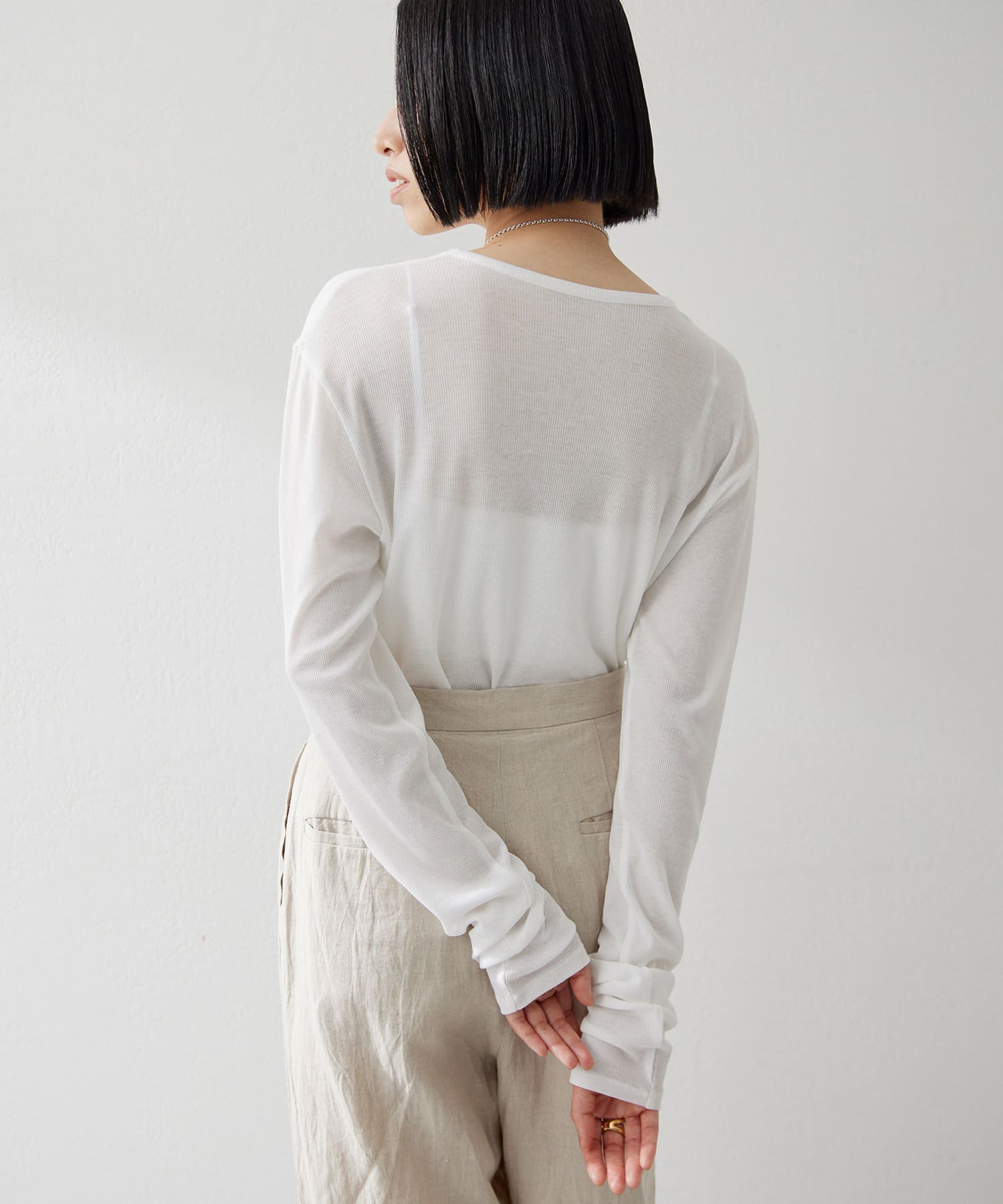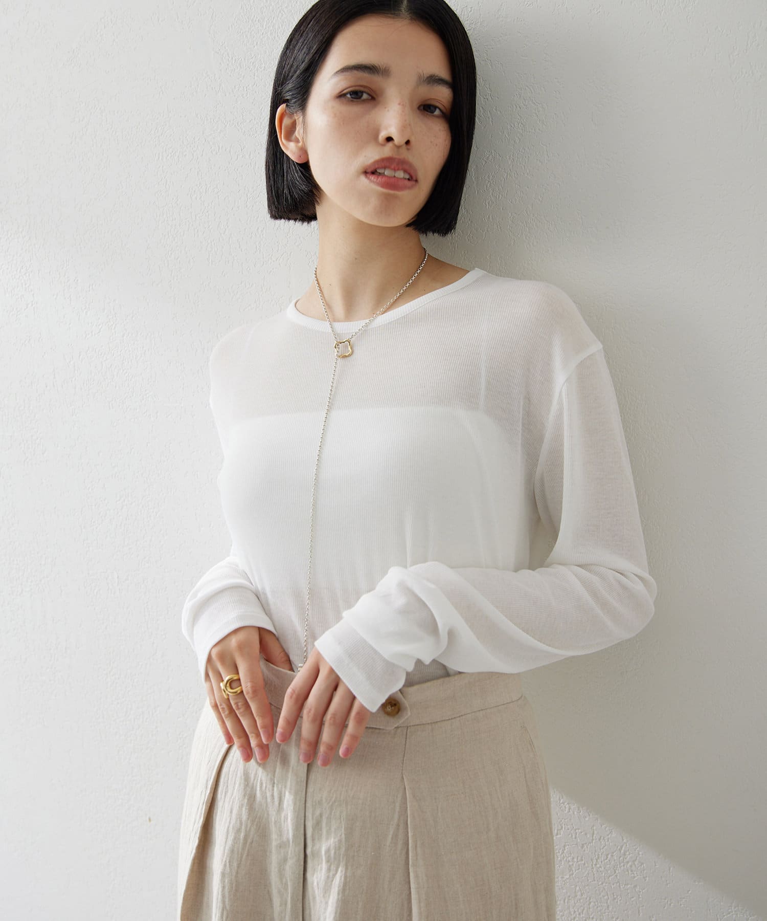 ■長めの袖丈がこなれて見え、一枚ではもちろんレイヤードアイテムとしても重宝するアイテム。