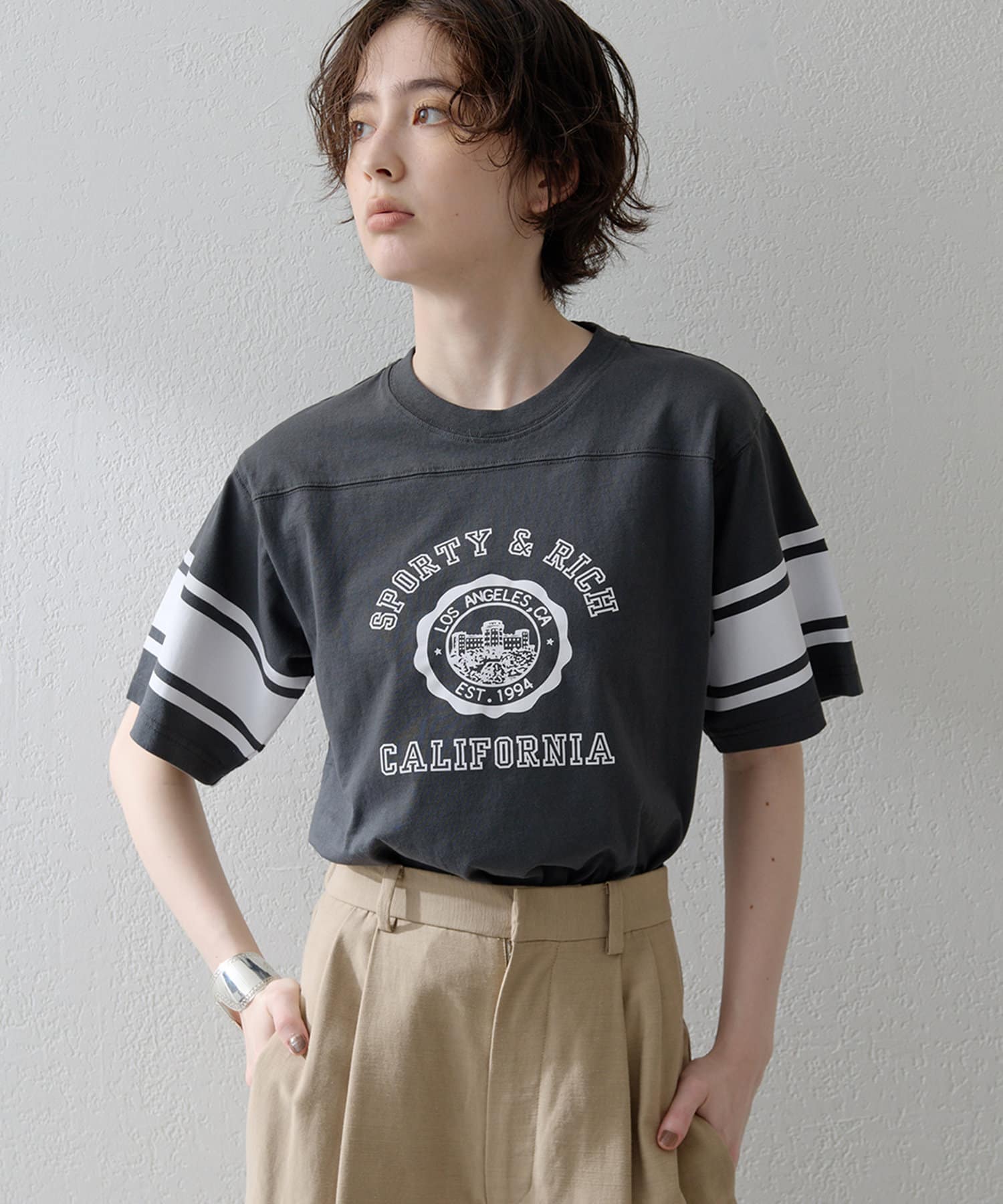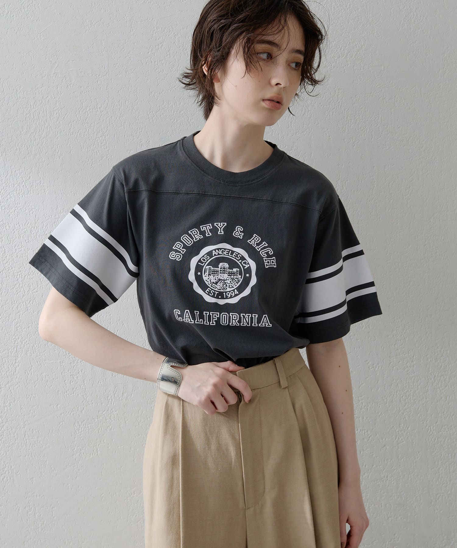 都会的なスポーツテイストが魅力の、Sporty&RichのロゴTEE