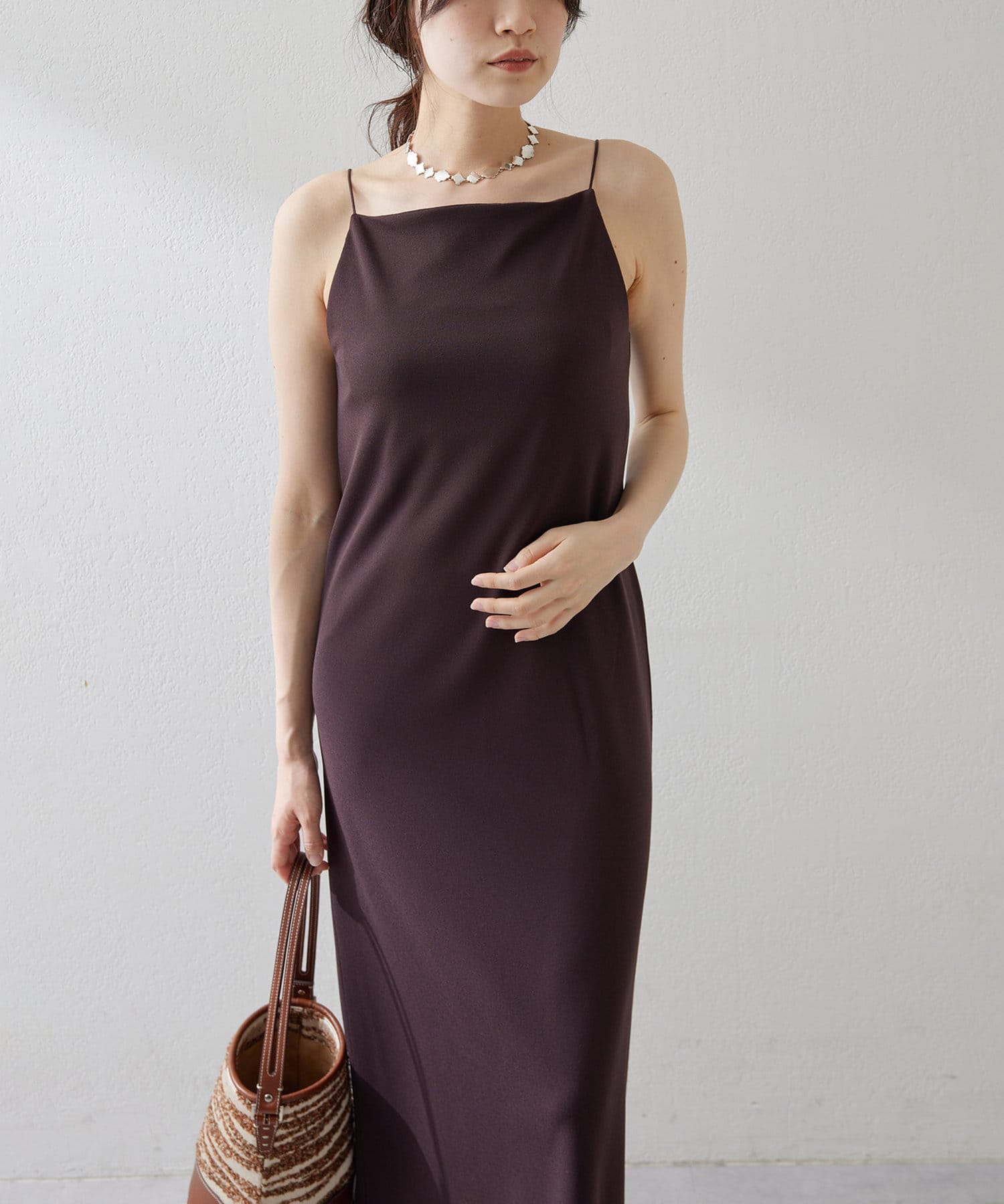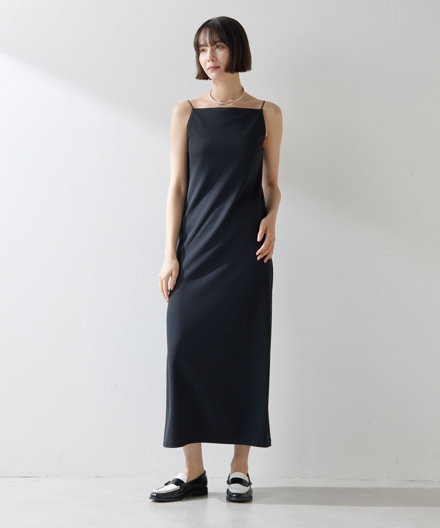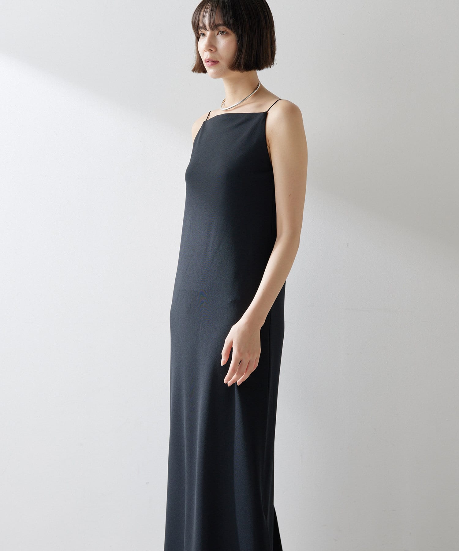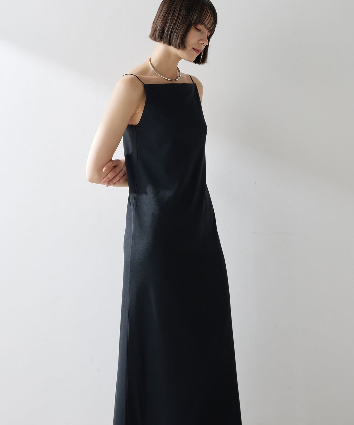 ■今季らしいスクエアネックが特徴的なIラインキャミワンピース。