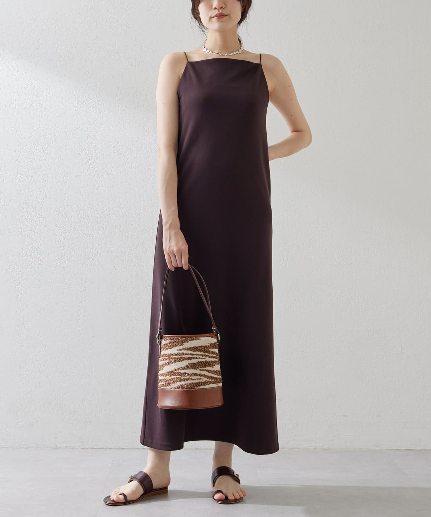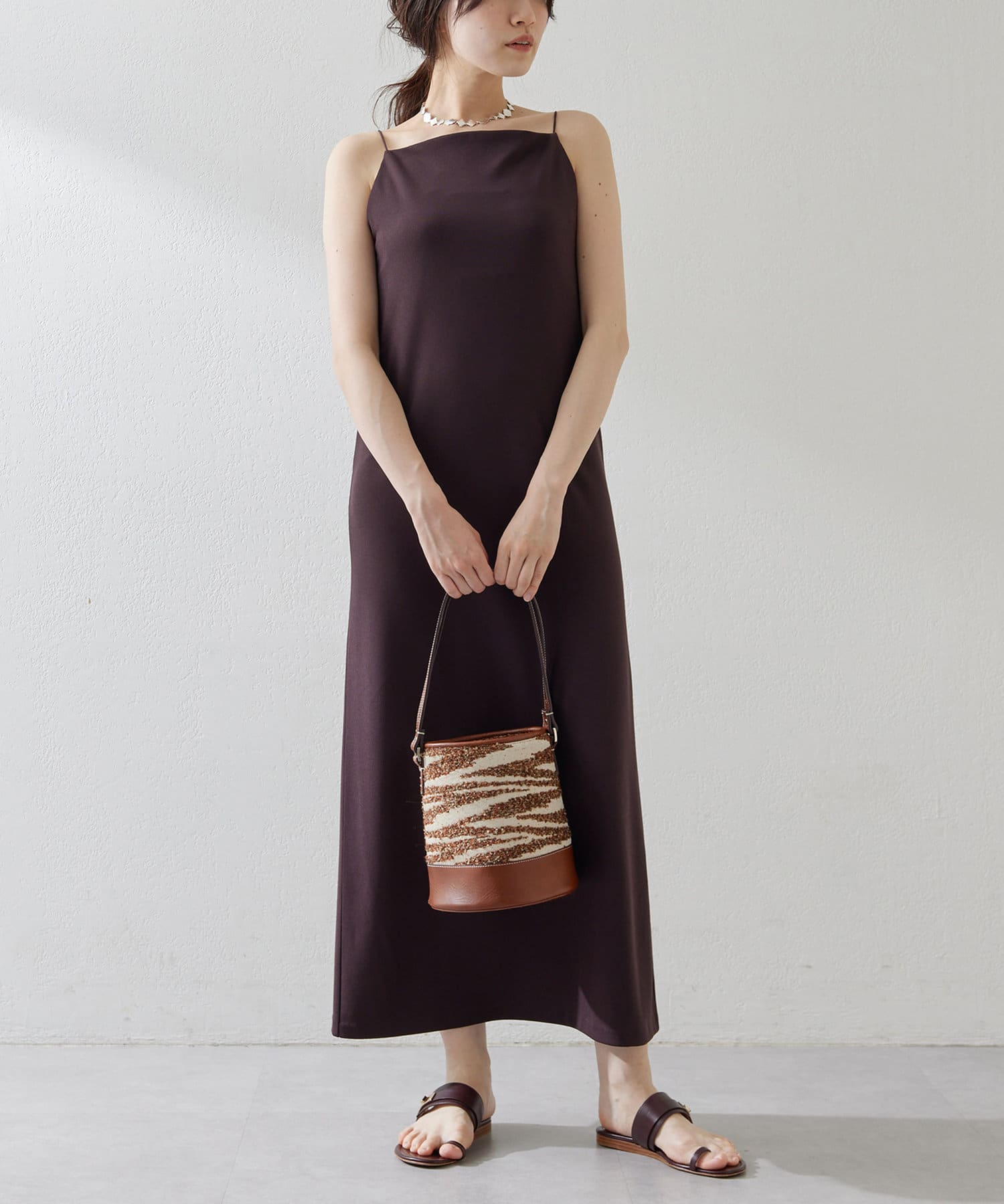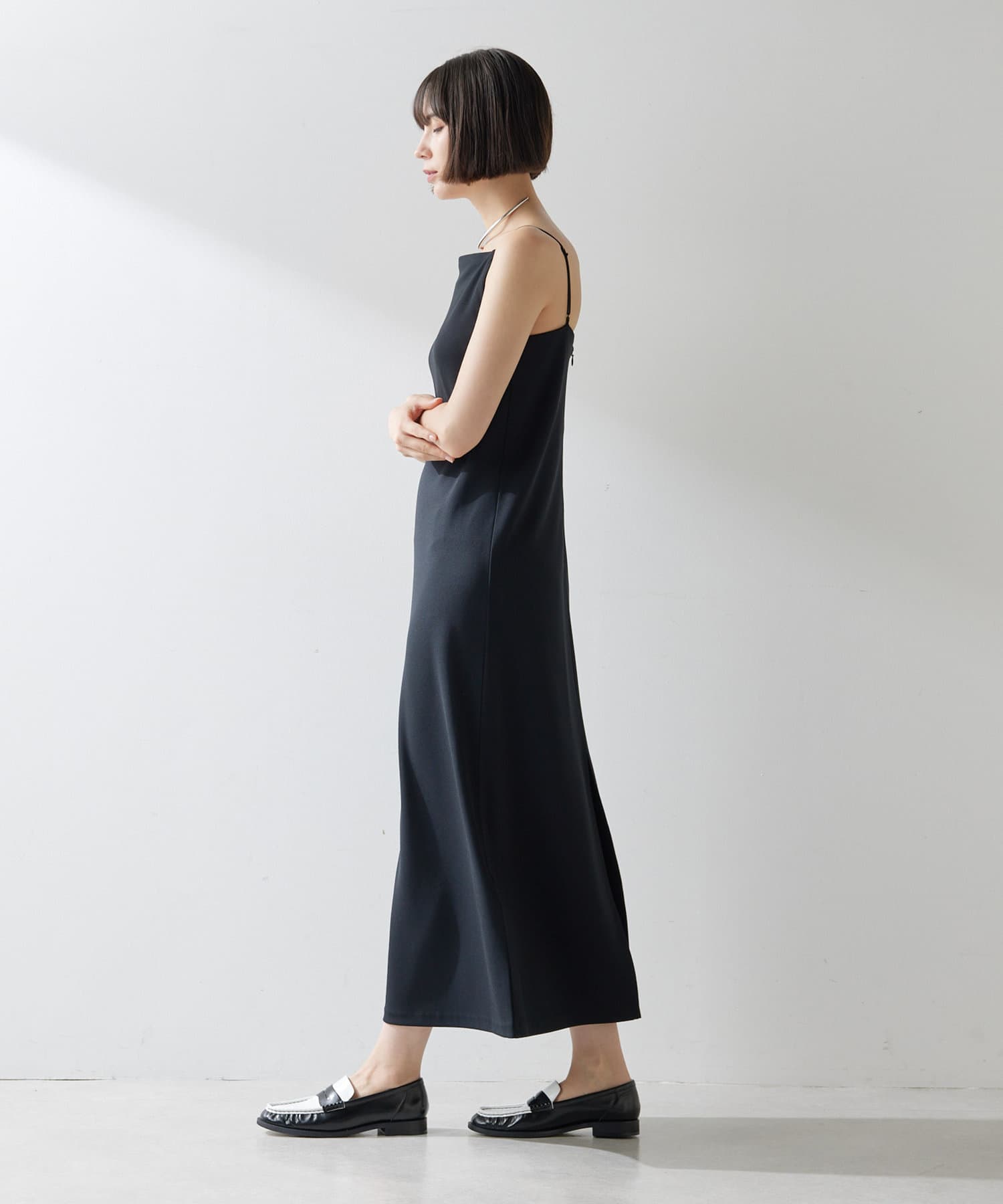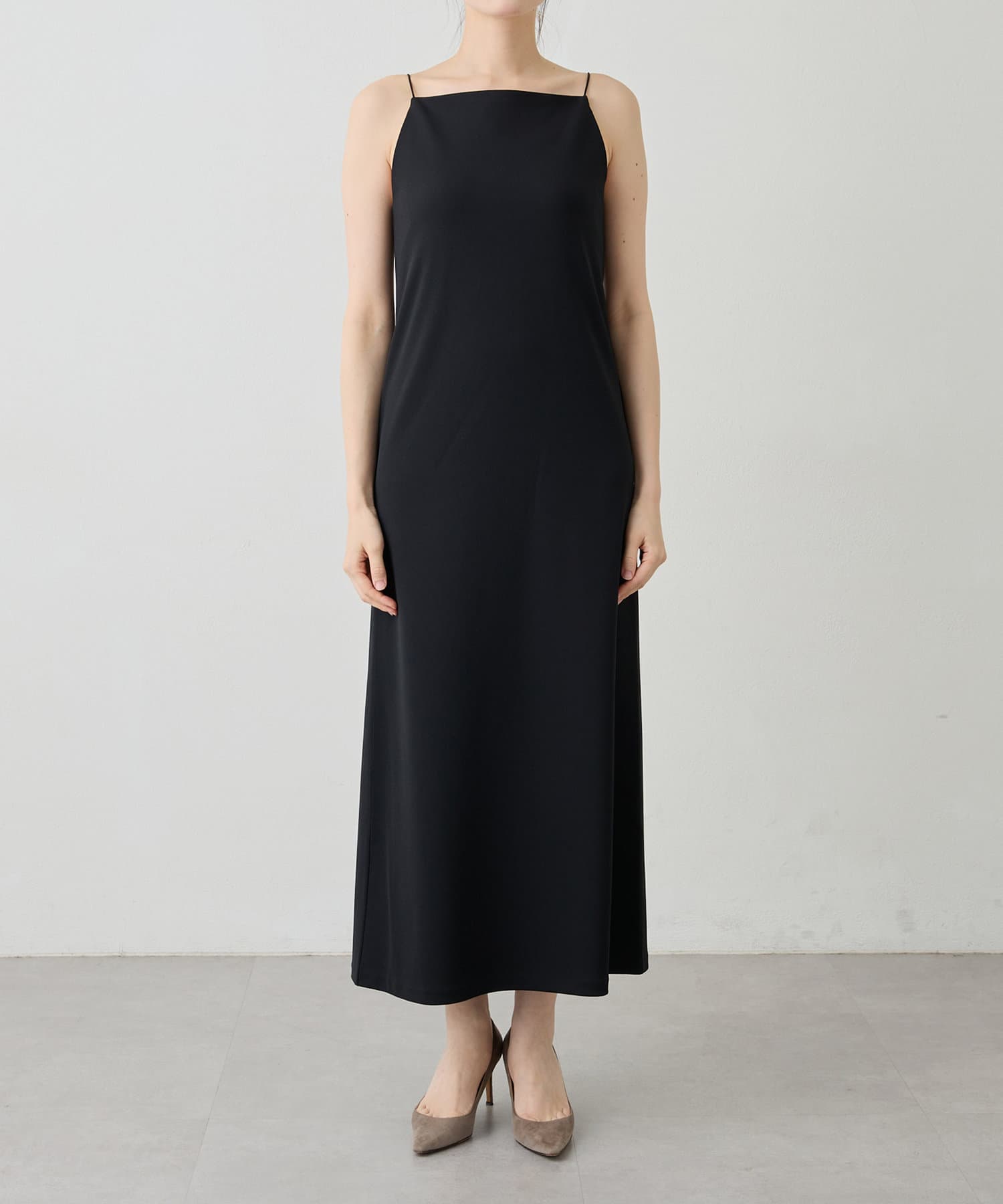 ■今季らしいスクエアネックが特徴的なIラインキャミワンピース。