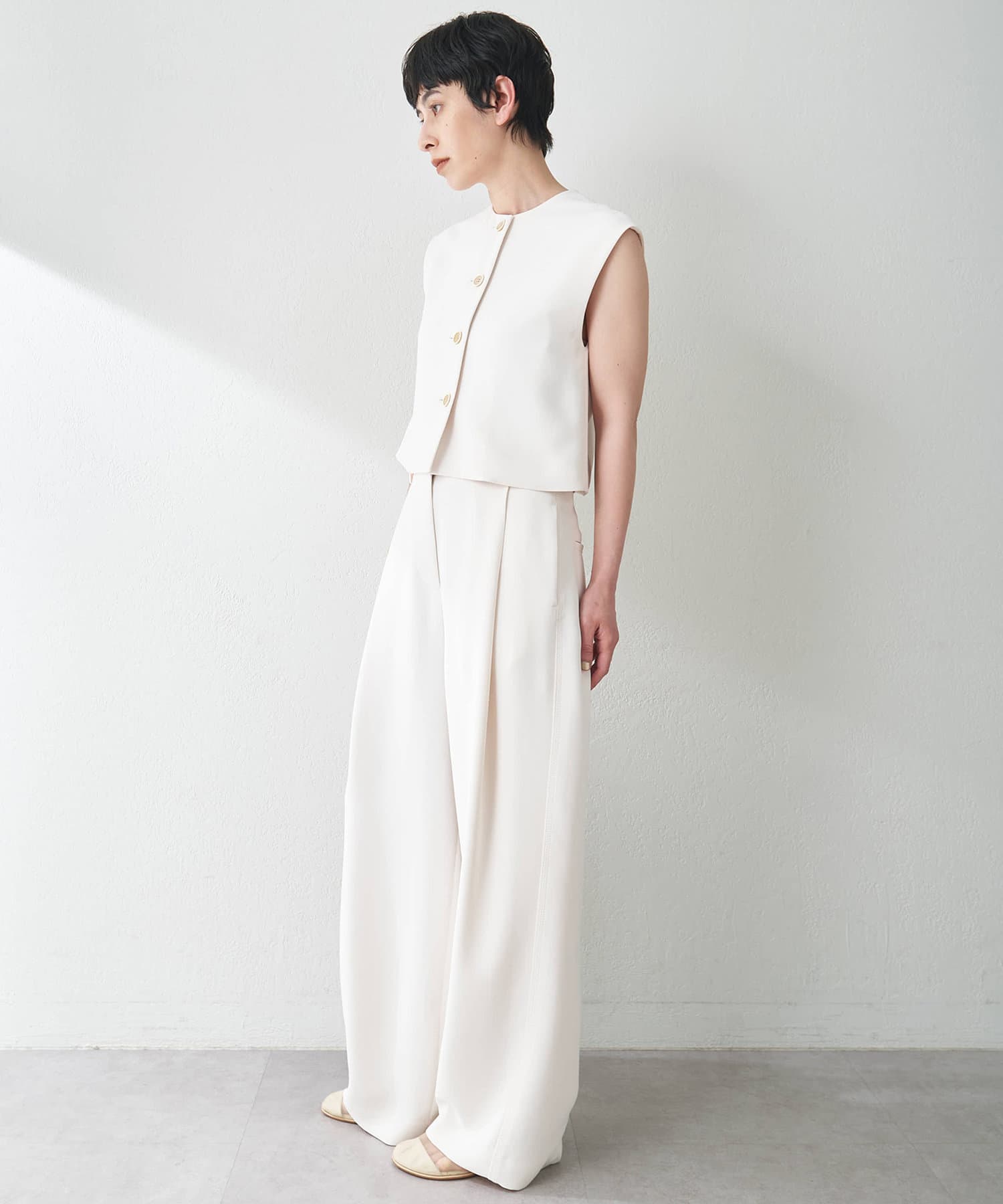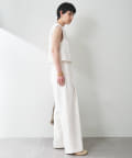 ■ストレッチ性のある素材で仕立てたタックパンツ。