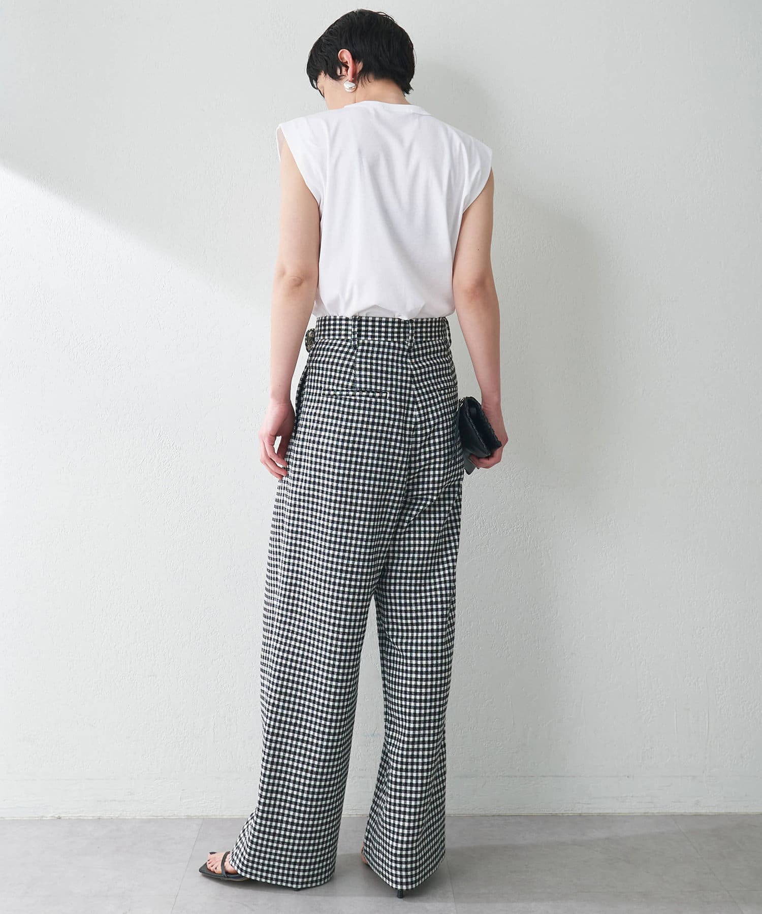シンプルに合わせてもスタイリングが決まるタックパンツ