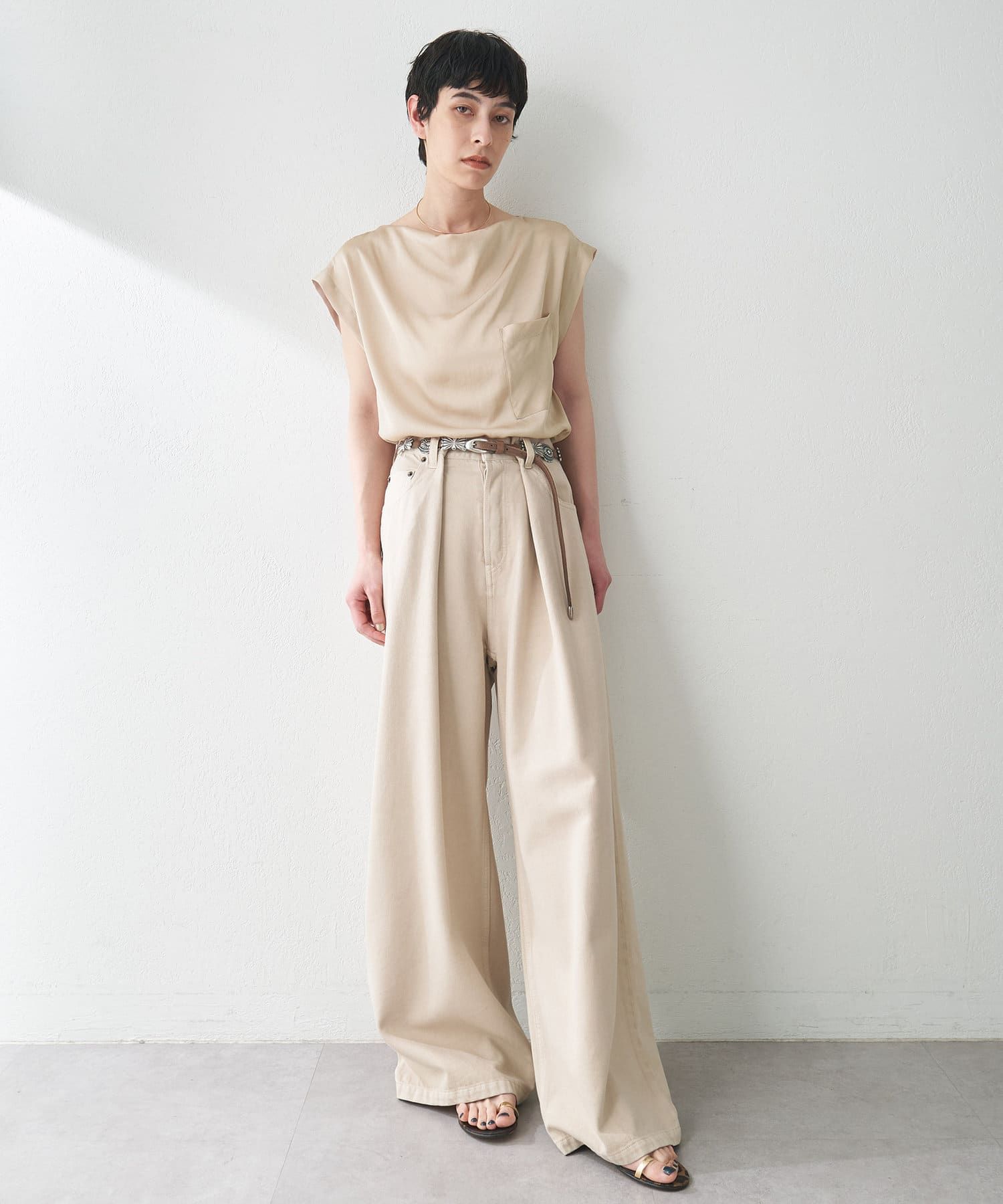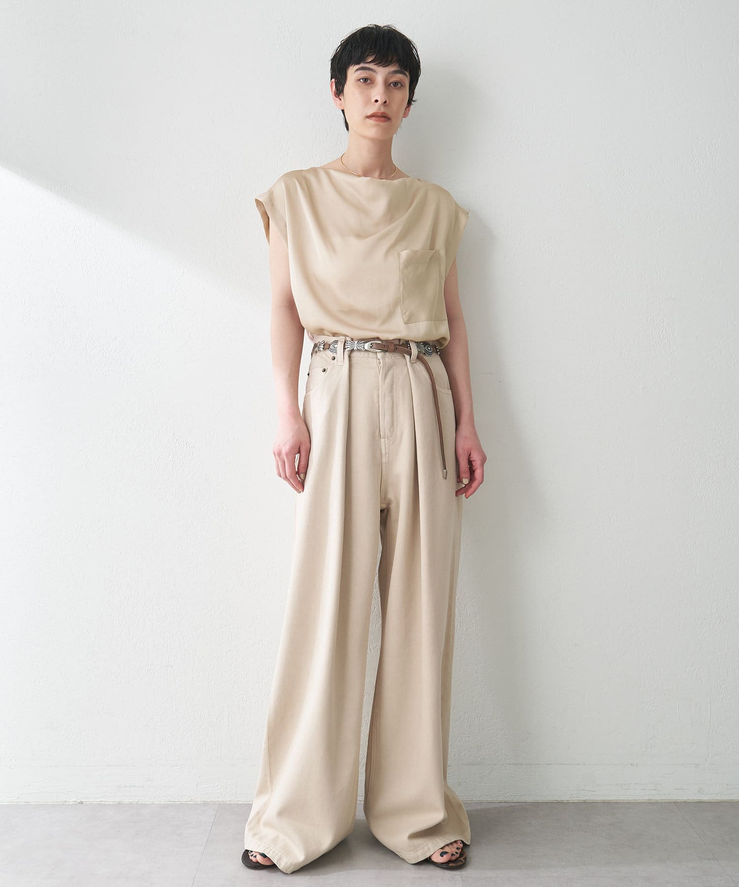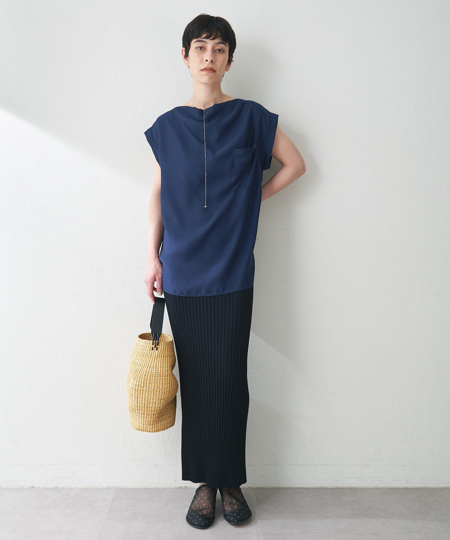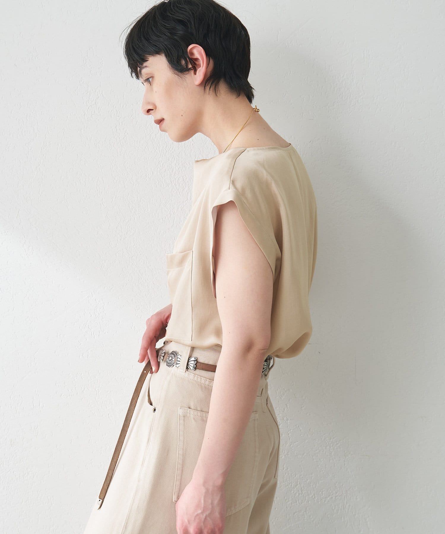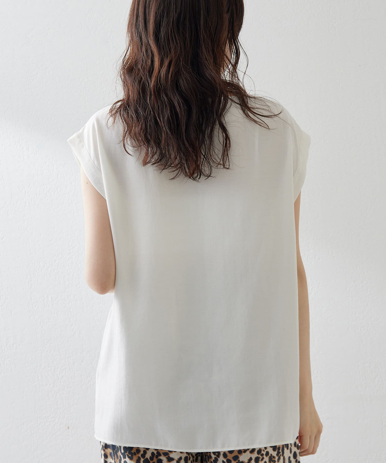 ■ゆったりとしたシルエットがリラクシーなノースリーブブラウス。