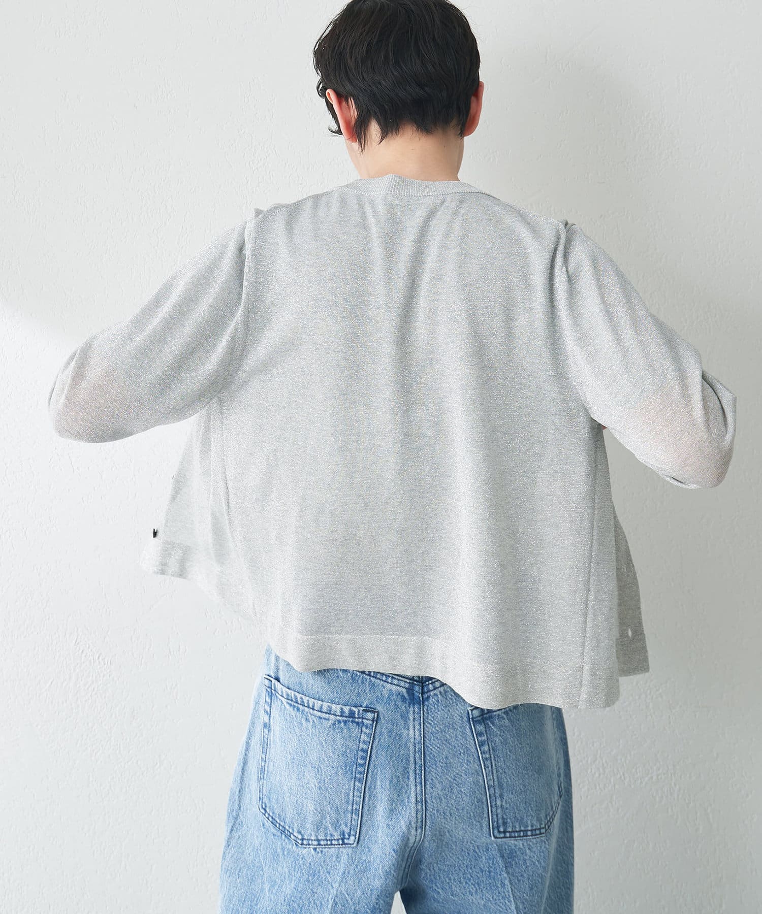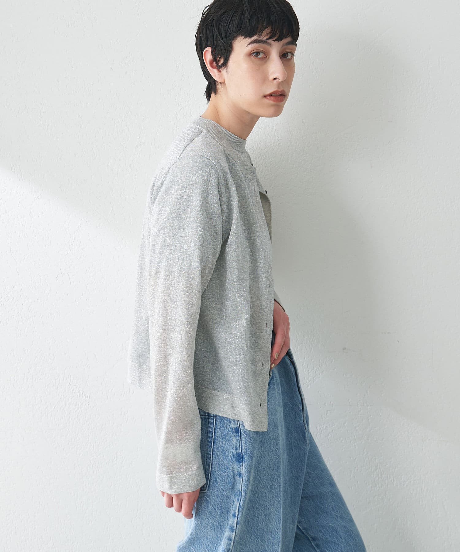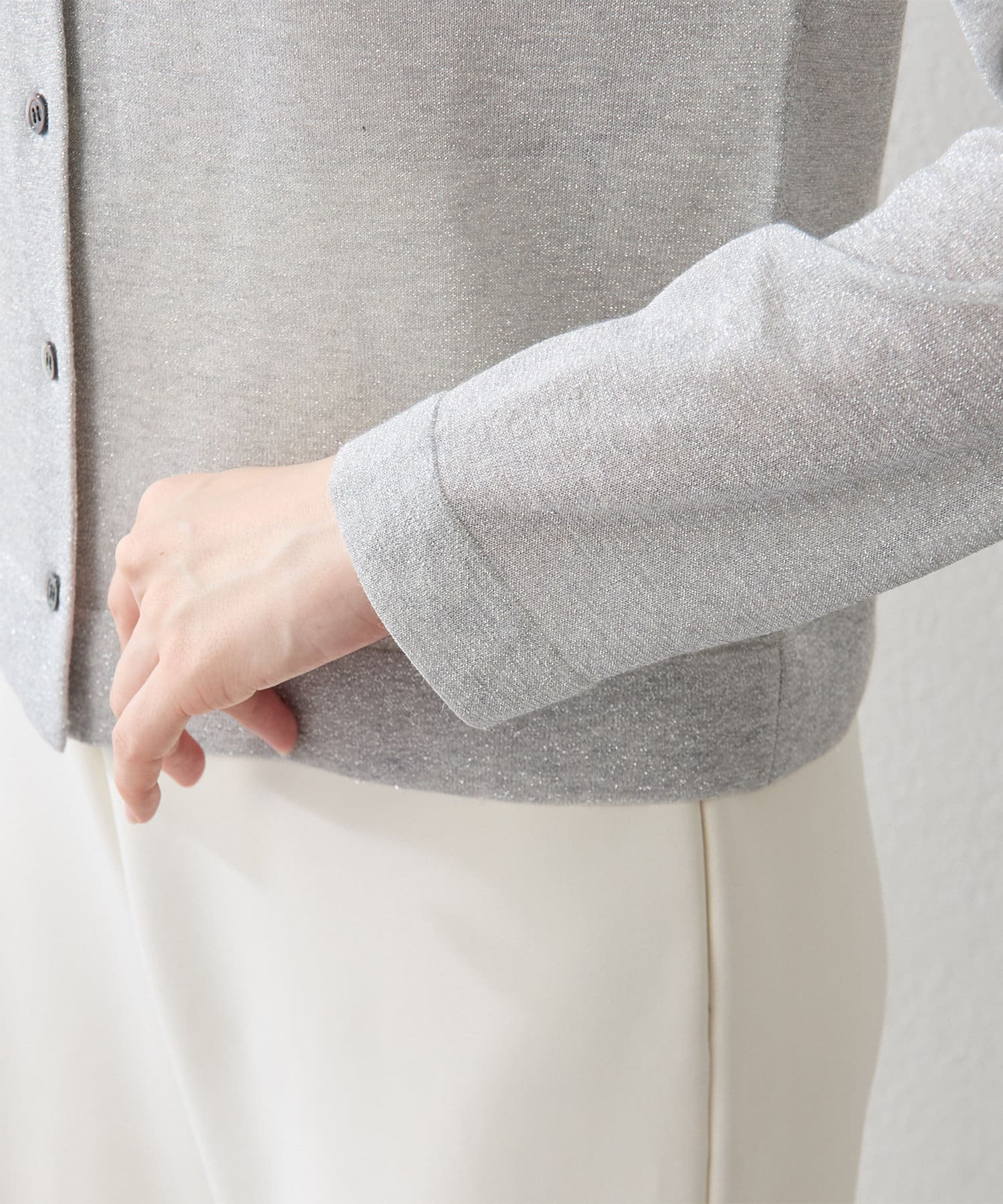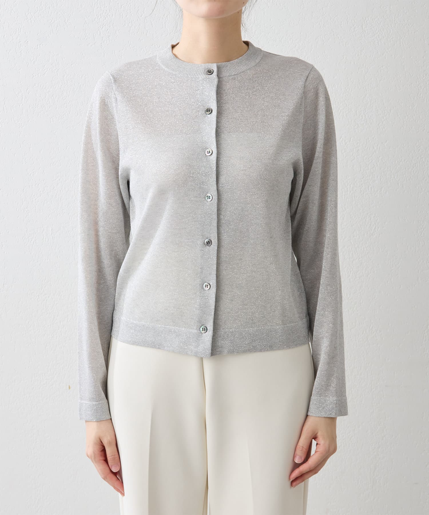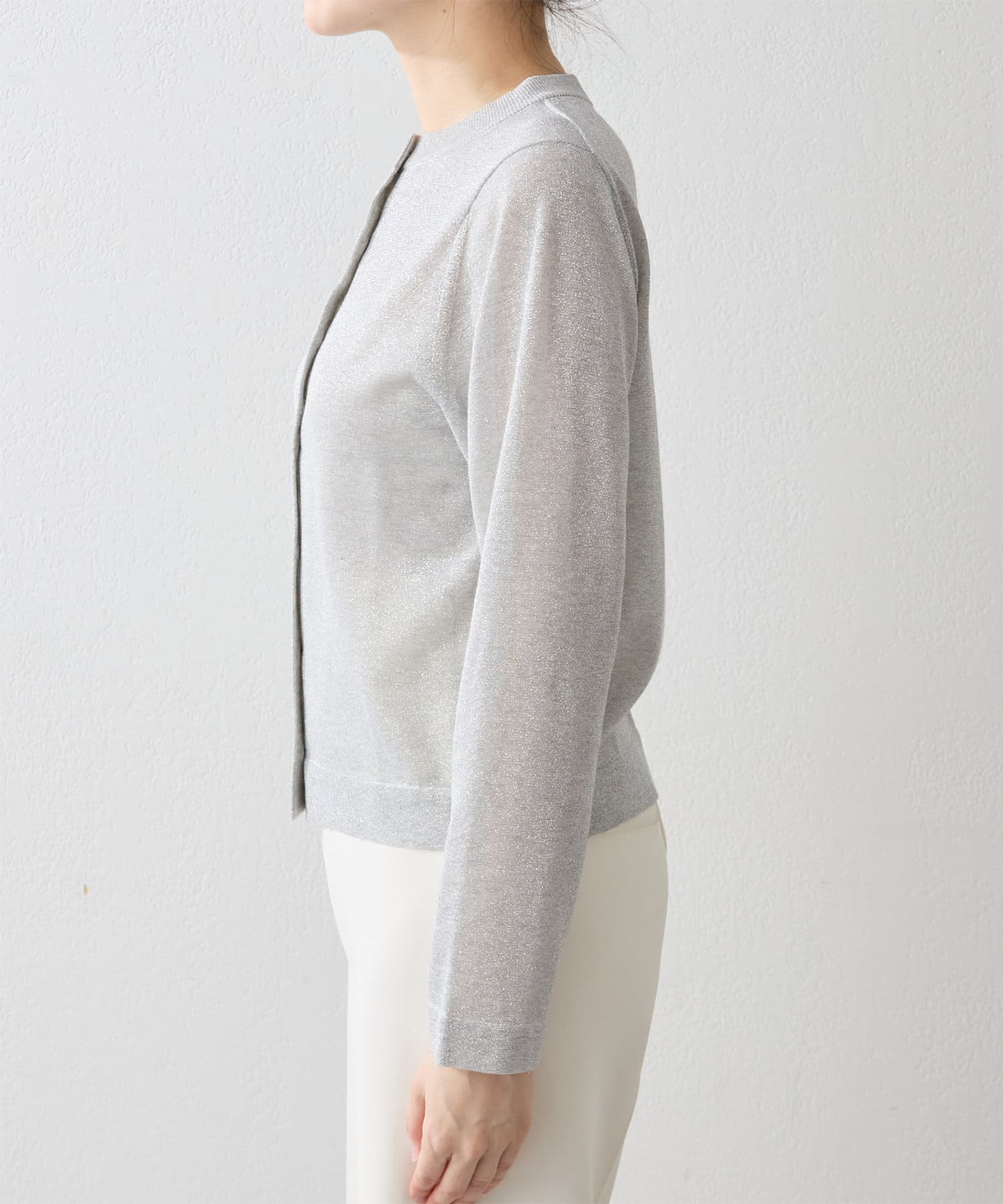 大人らしく上品に楽しめる、繊細なラメニットカーディガン