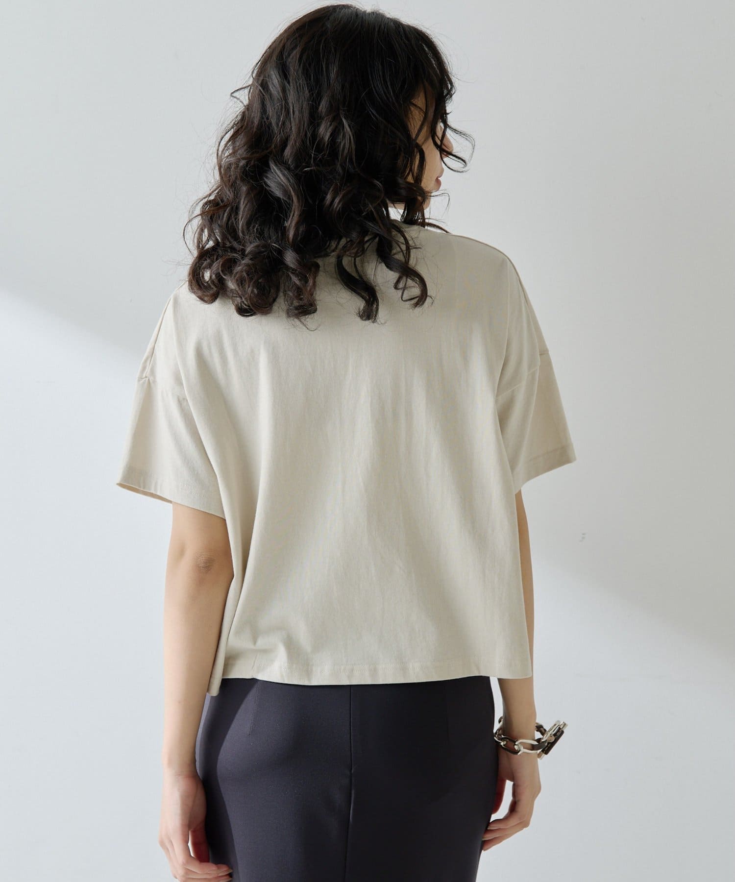 ■身幅を広めにとり、短めの着丈ですっきりと仕上げたシルエット。