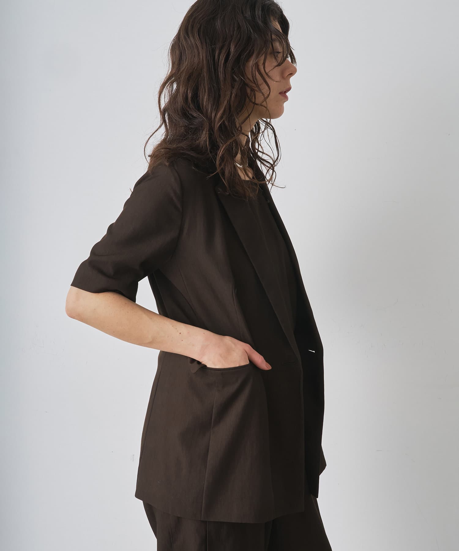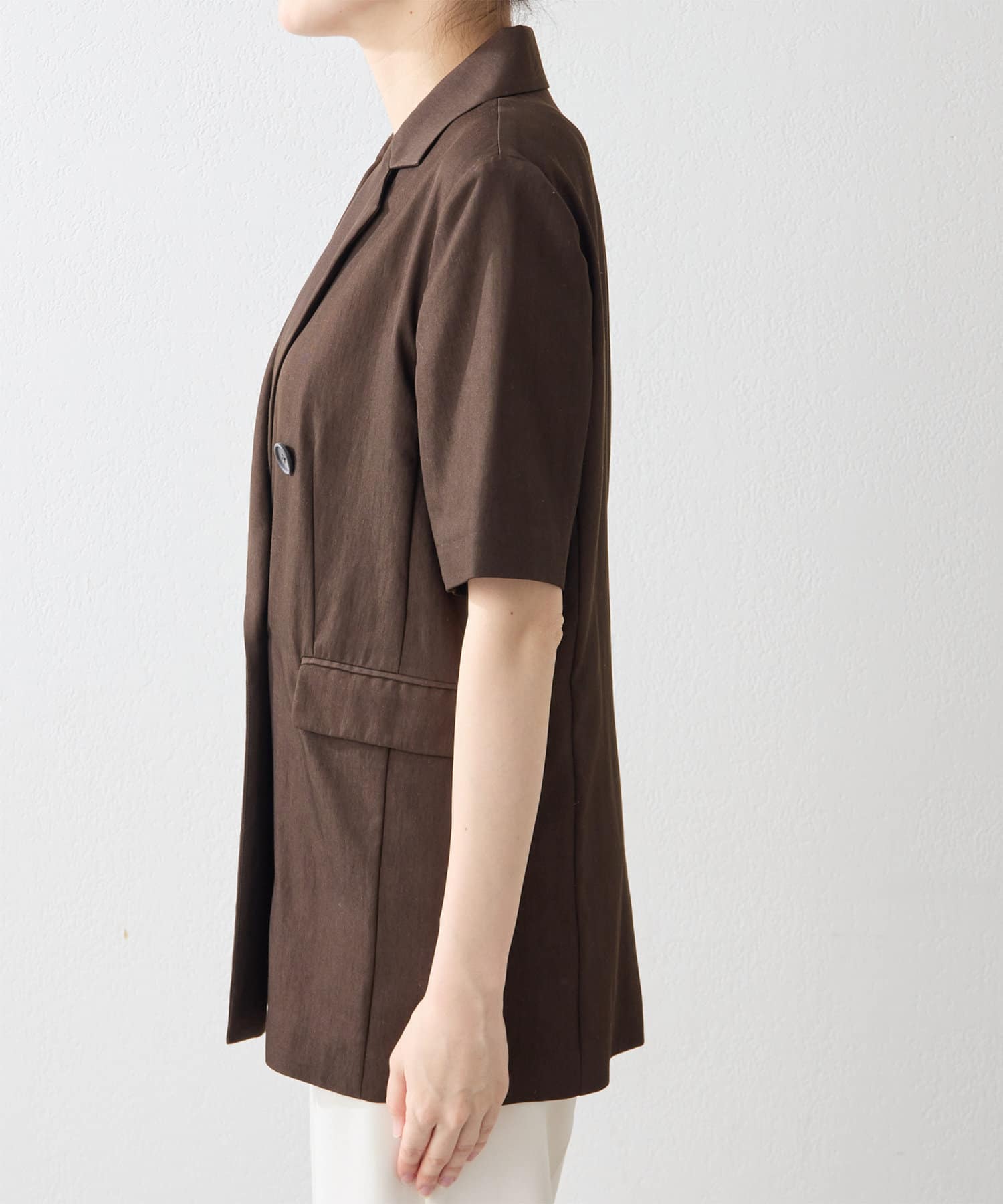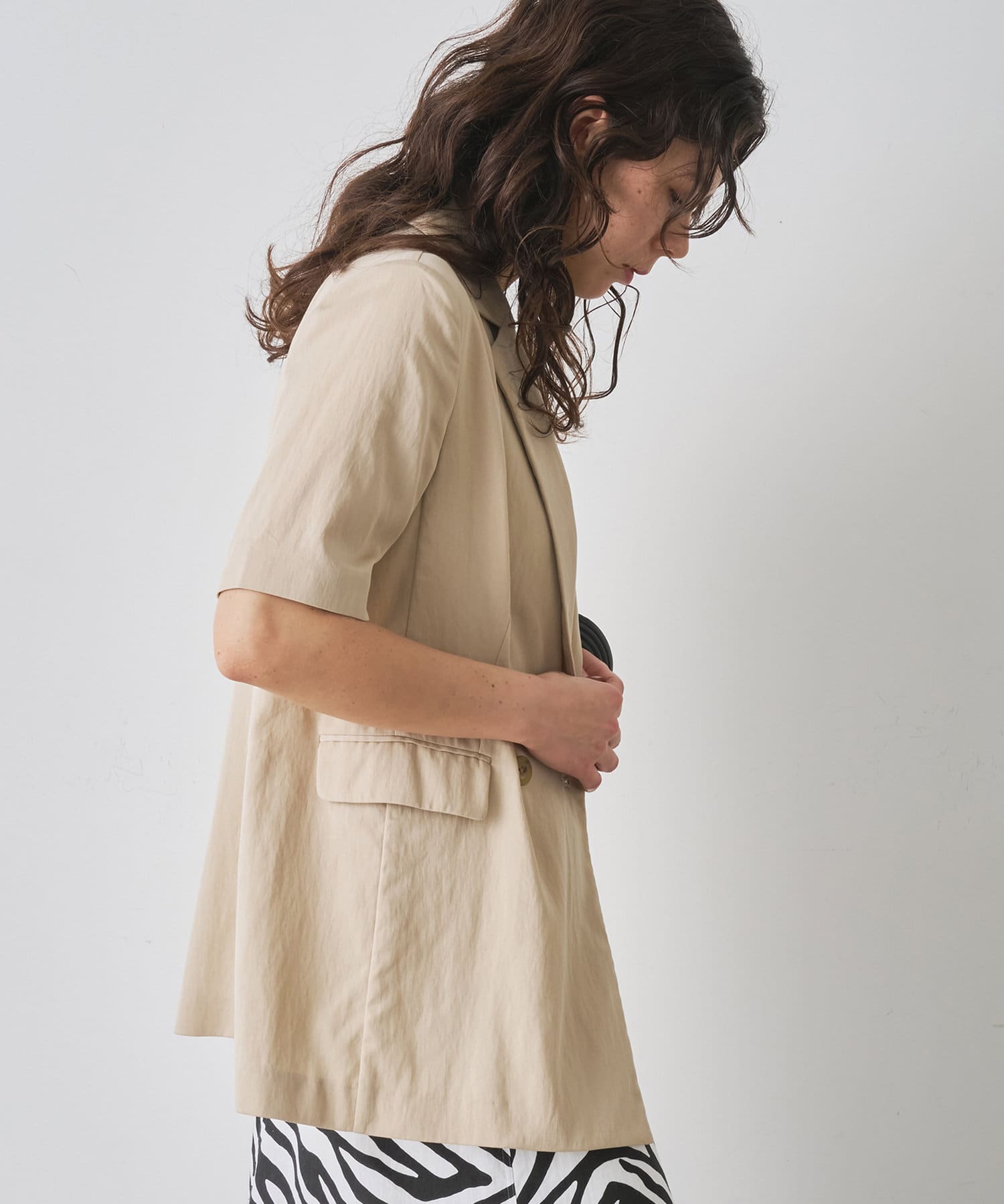 ■夏でも涼しくサッと羽織れるハーフスリーブジャケット。