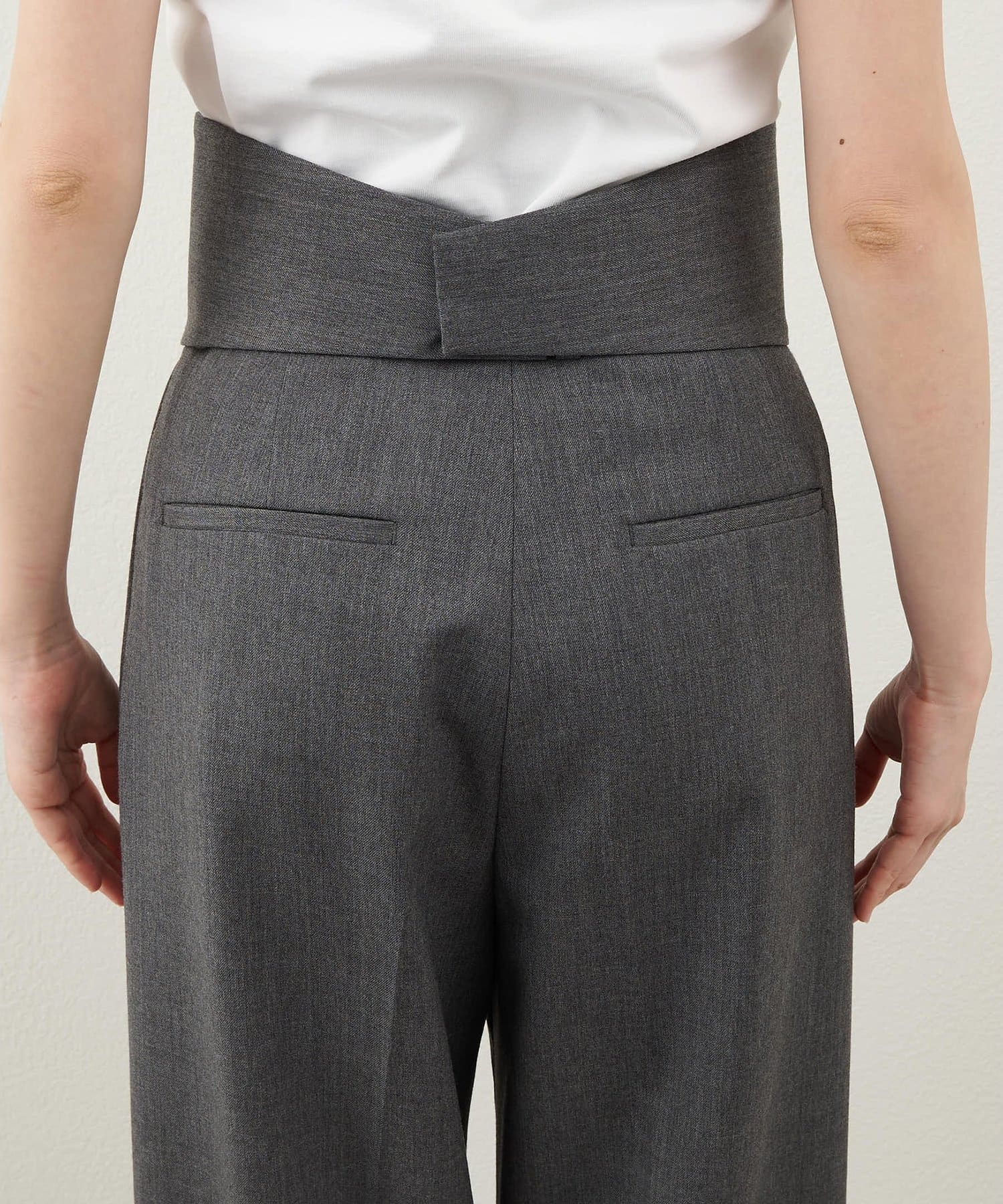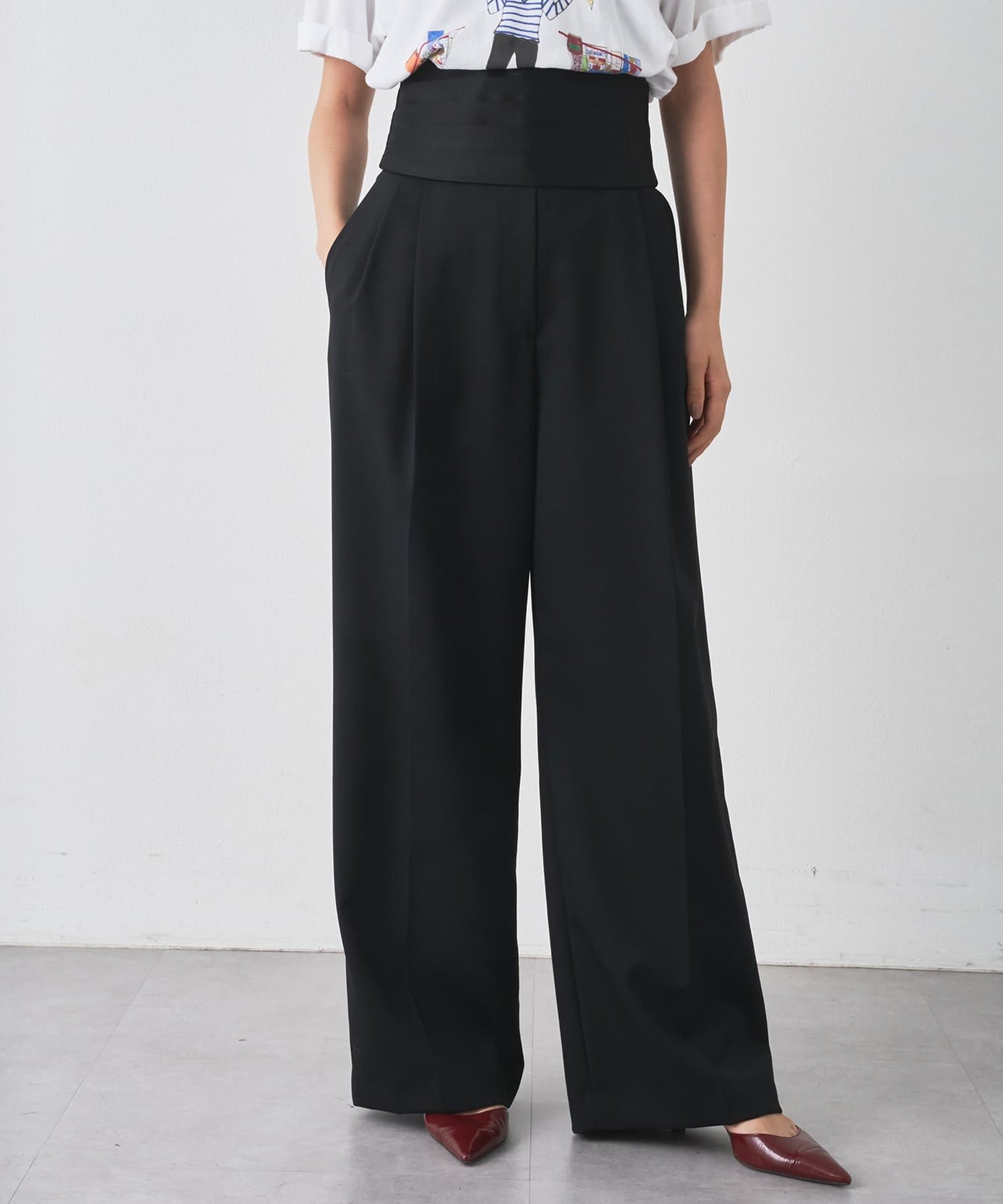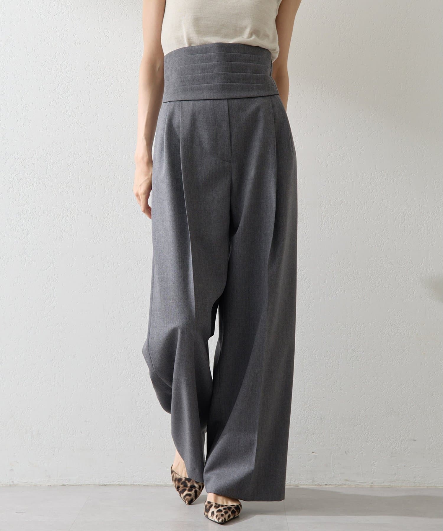 ■クラシックなドレスパンツから着想を得た、カマーベルト付きのタックパンツ。