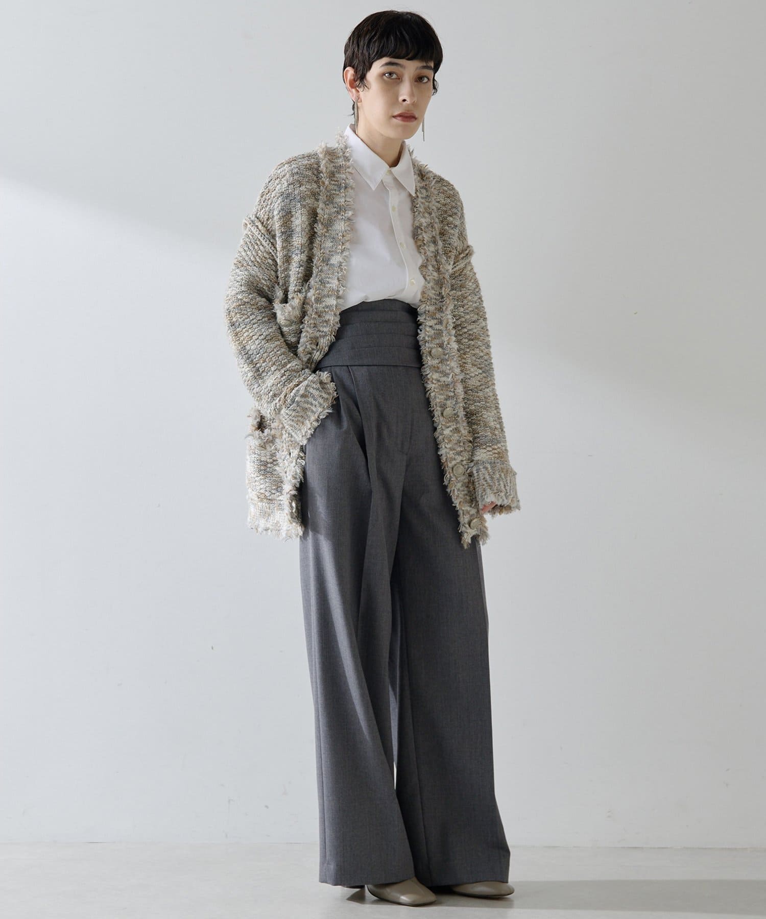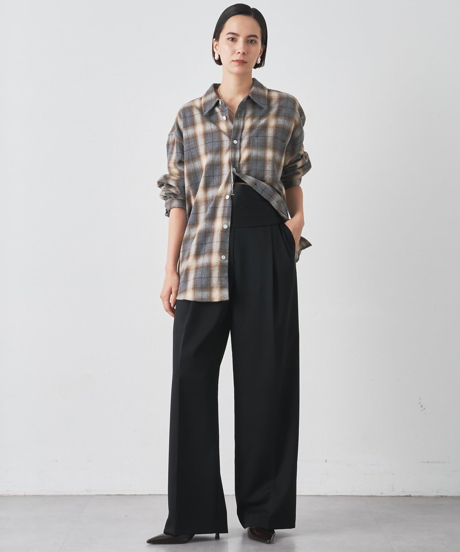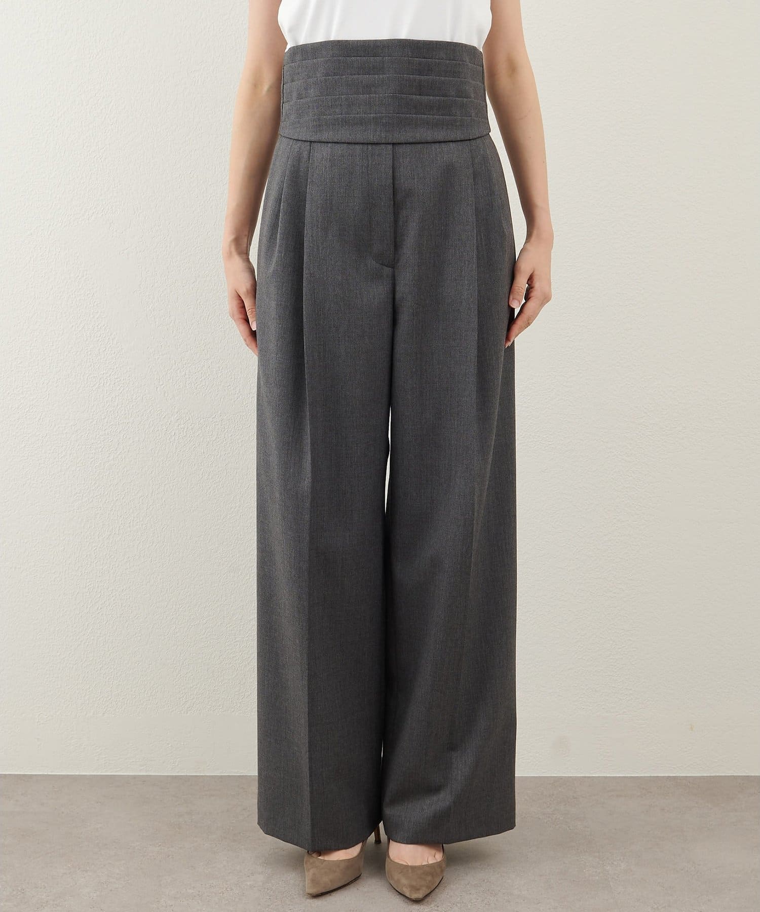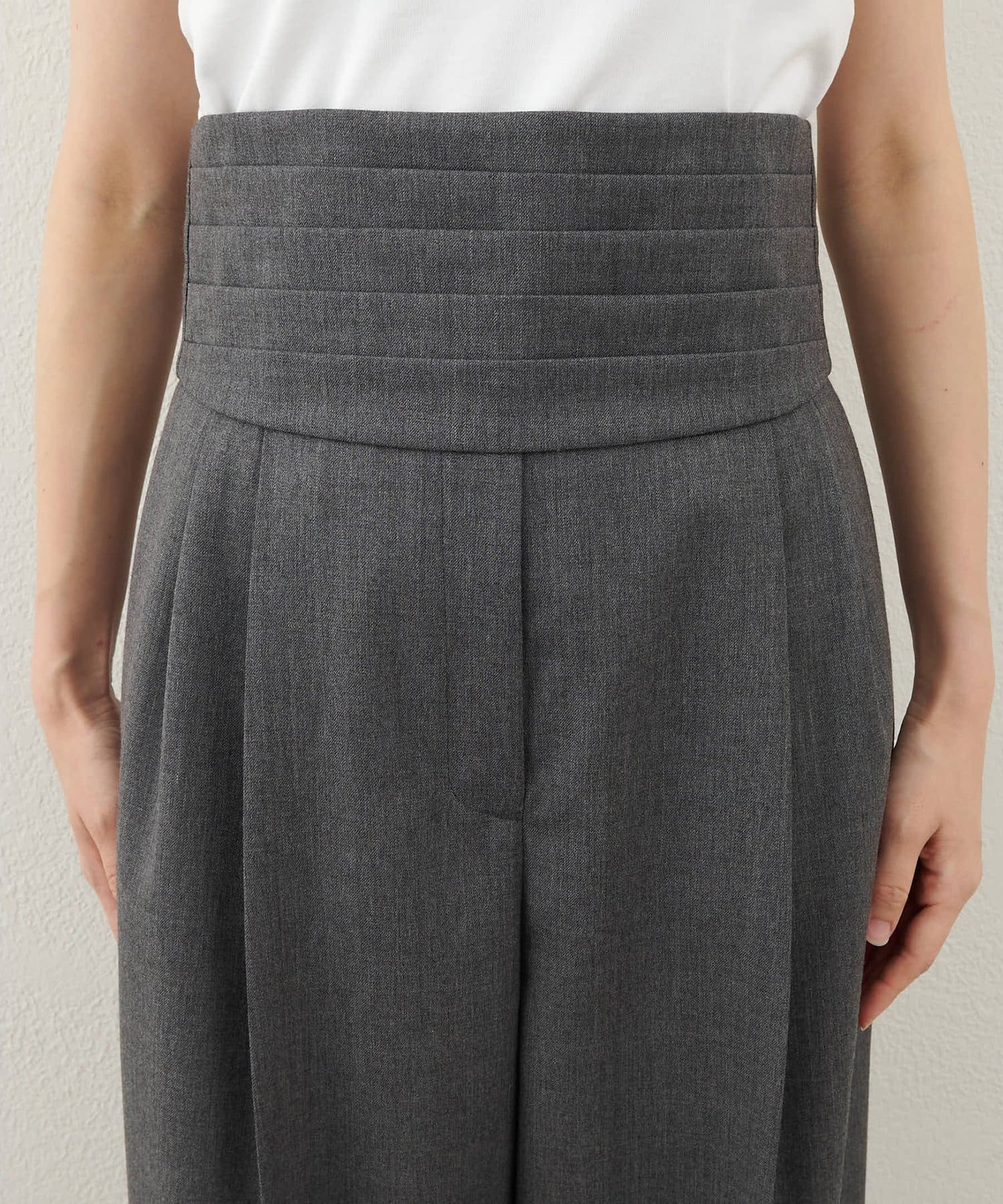 ■クラシックなドレスパンツから着想を得た、カマーベルト付きのタックパンツ。