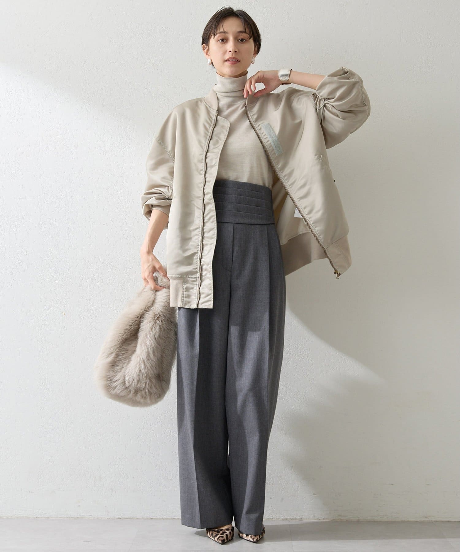 ■ドレープ性と程よいハリ感を兼ね備えた上質なウールギャバジンが美しいシルエットを演出。