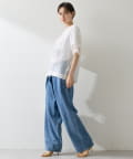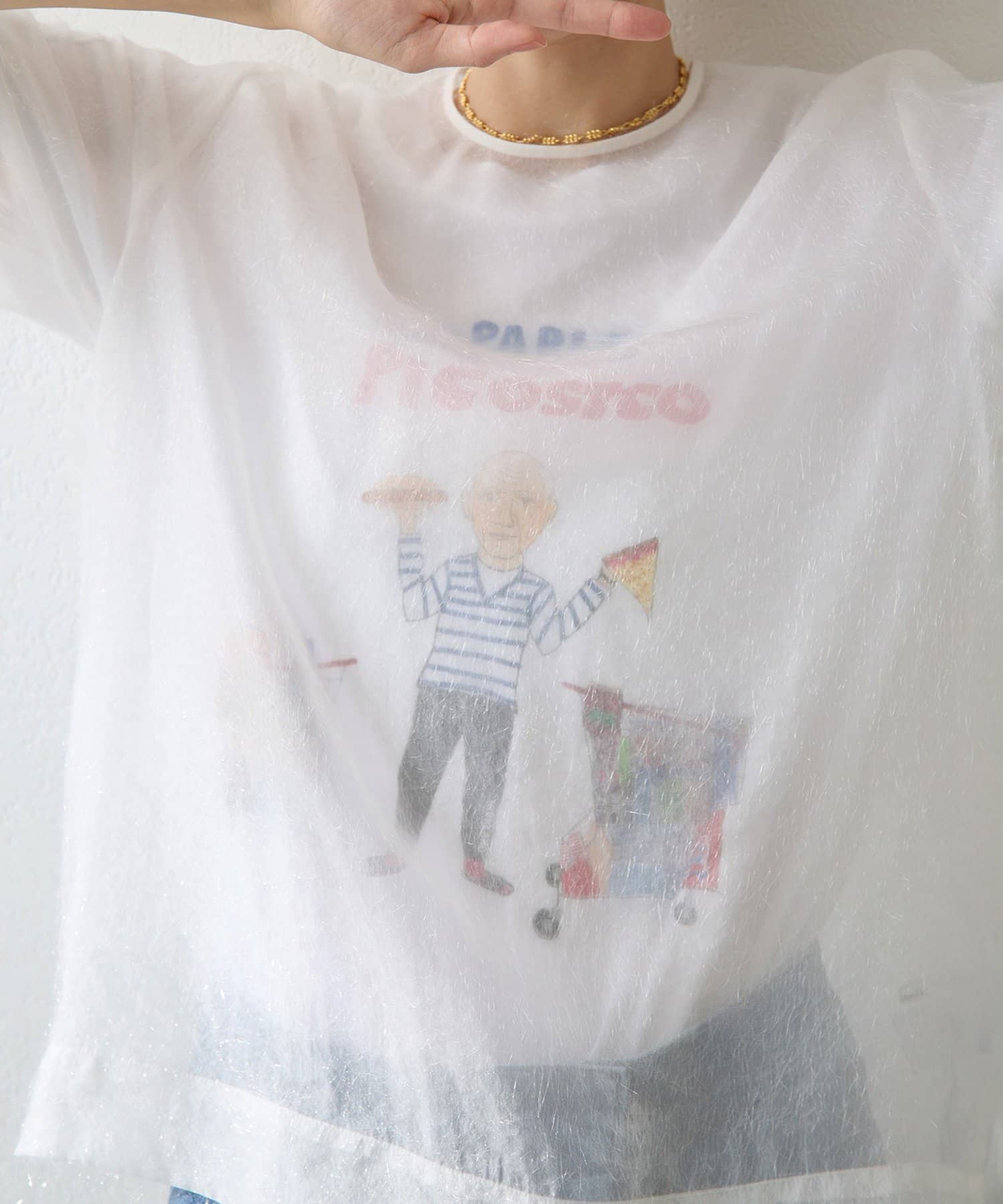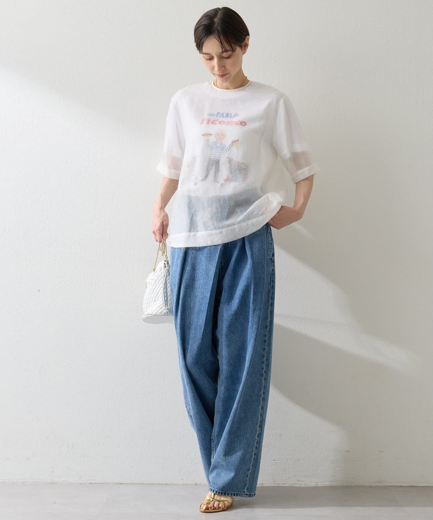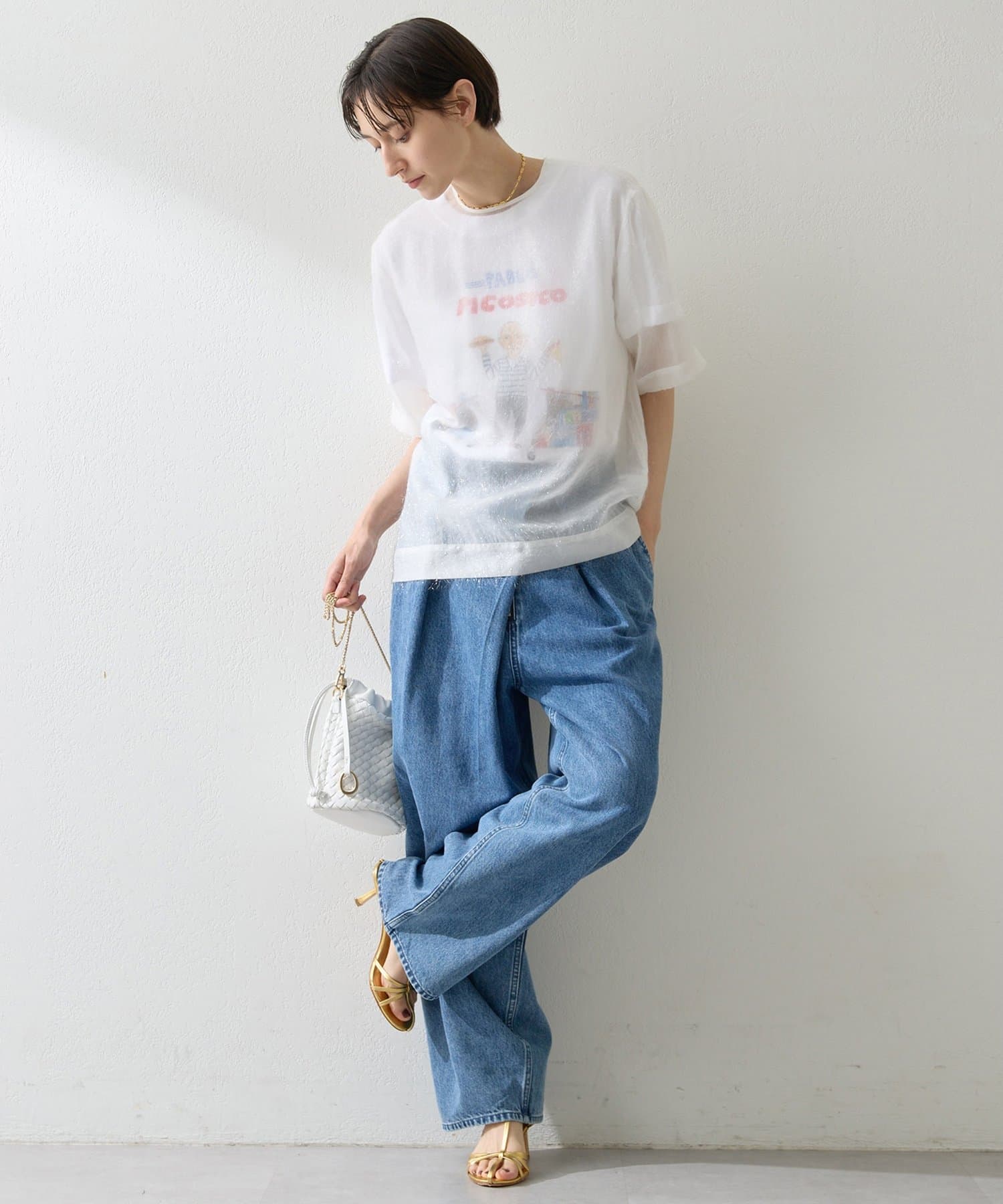 ■シアーな表情を活かして、ベアトップやタンクトップ、ブラトップやロゴTシャツなどインナーアレンジを楽しむのも◎。