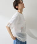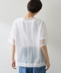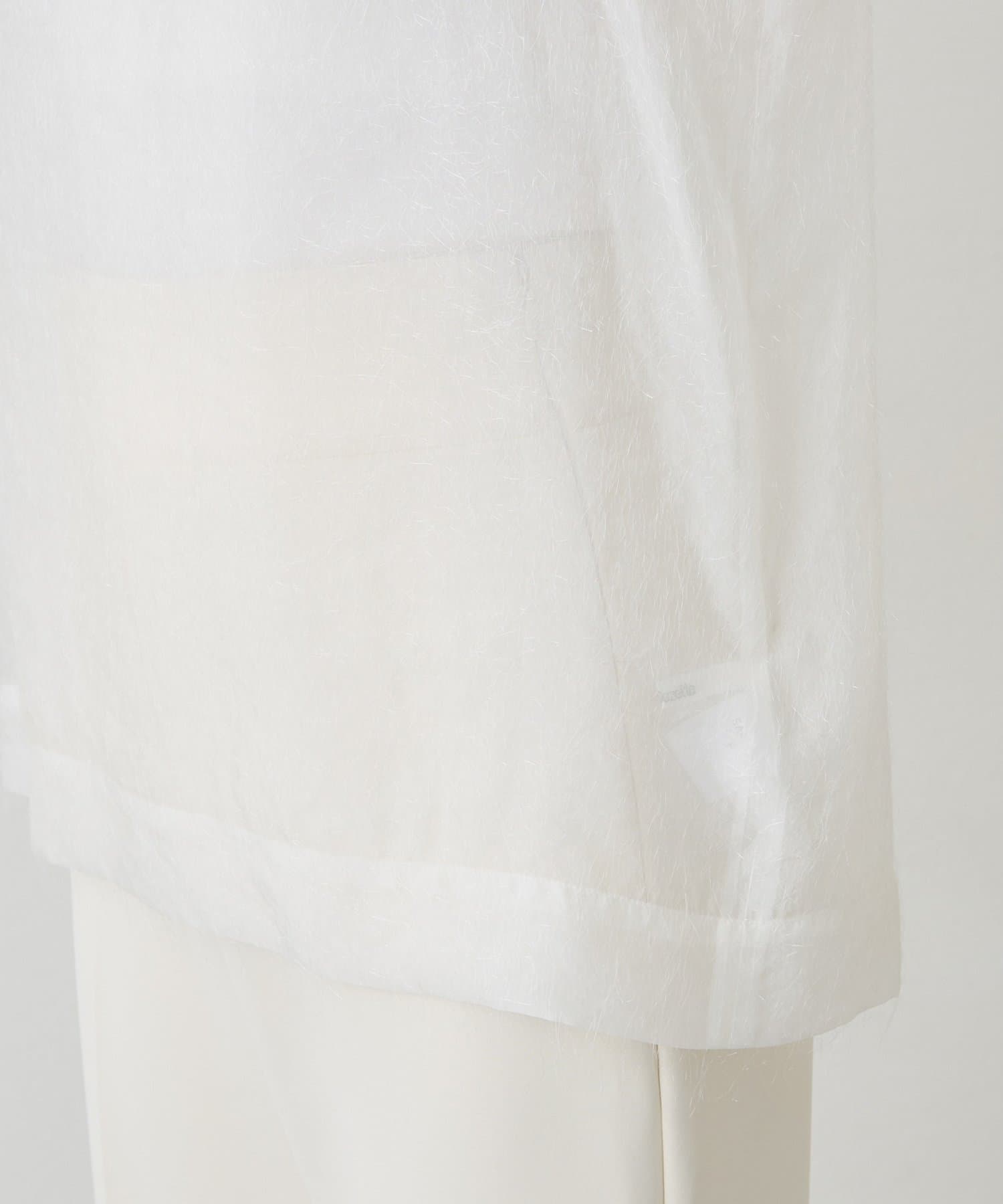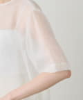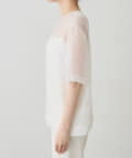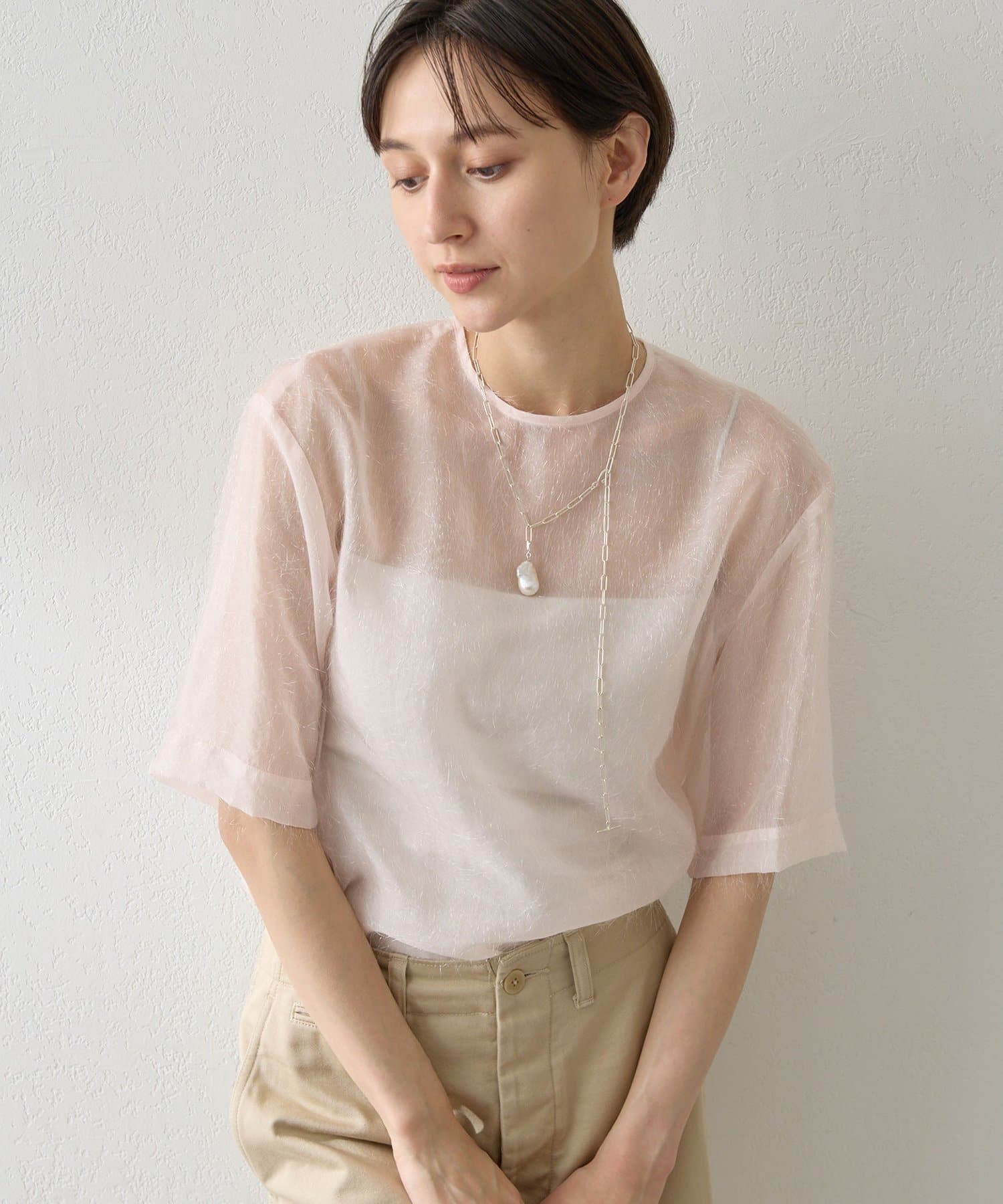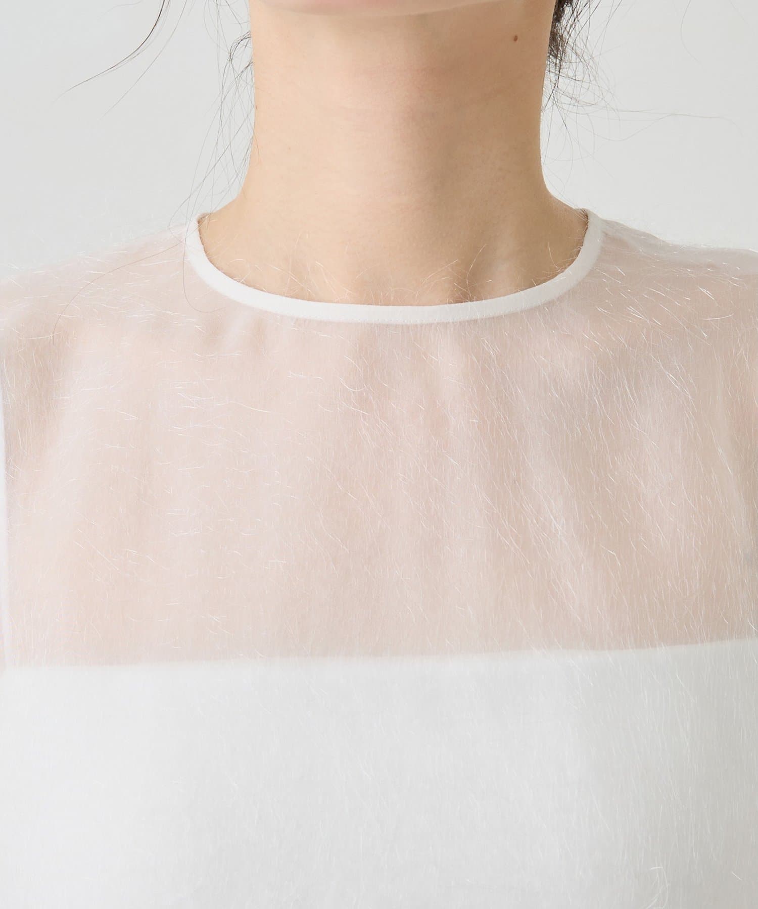 ■シアー感と光沢のあるフェザーのような生地が目を惹くハーフスリーブプルオーバー。