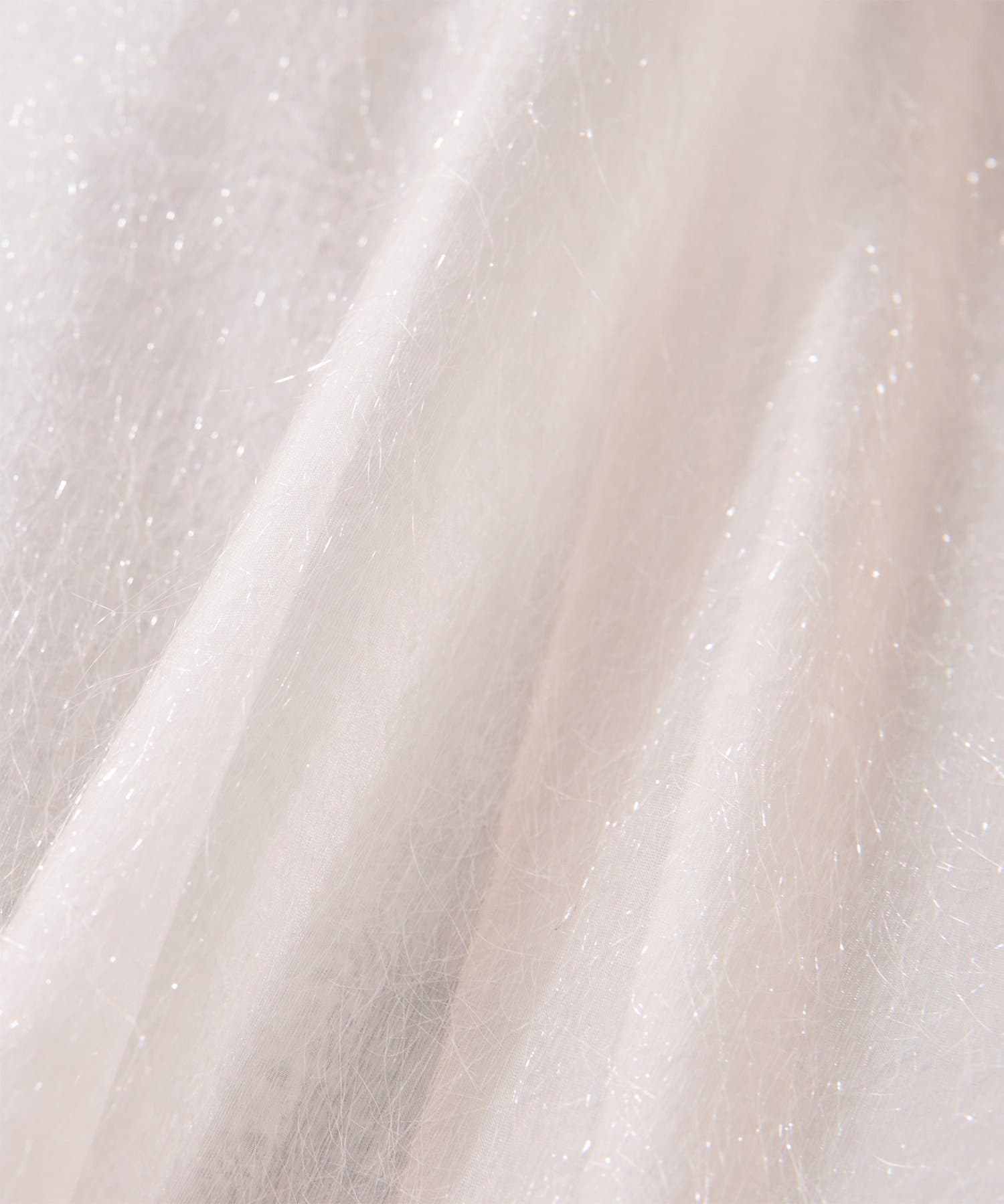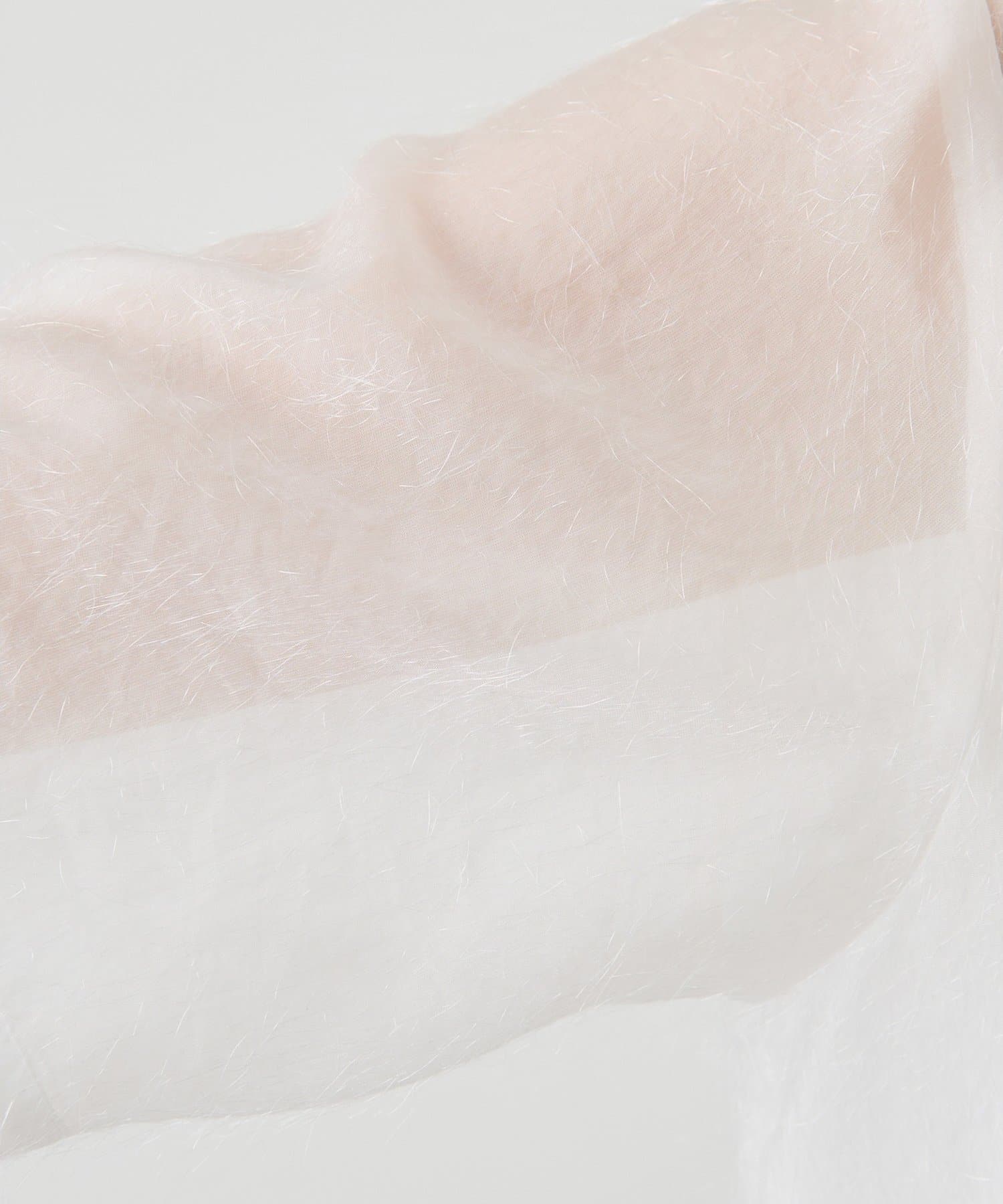 毛足までも透け感がある細番手の繊細さと、経糸をカットしているからこそ表現できるボリューム感を兼ね備えたジャガード素材。