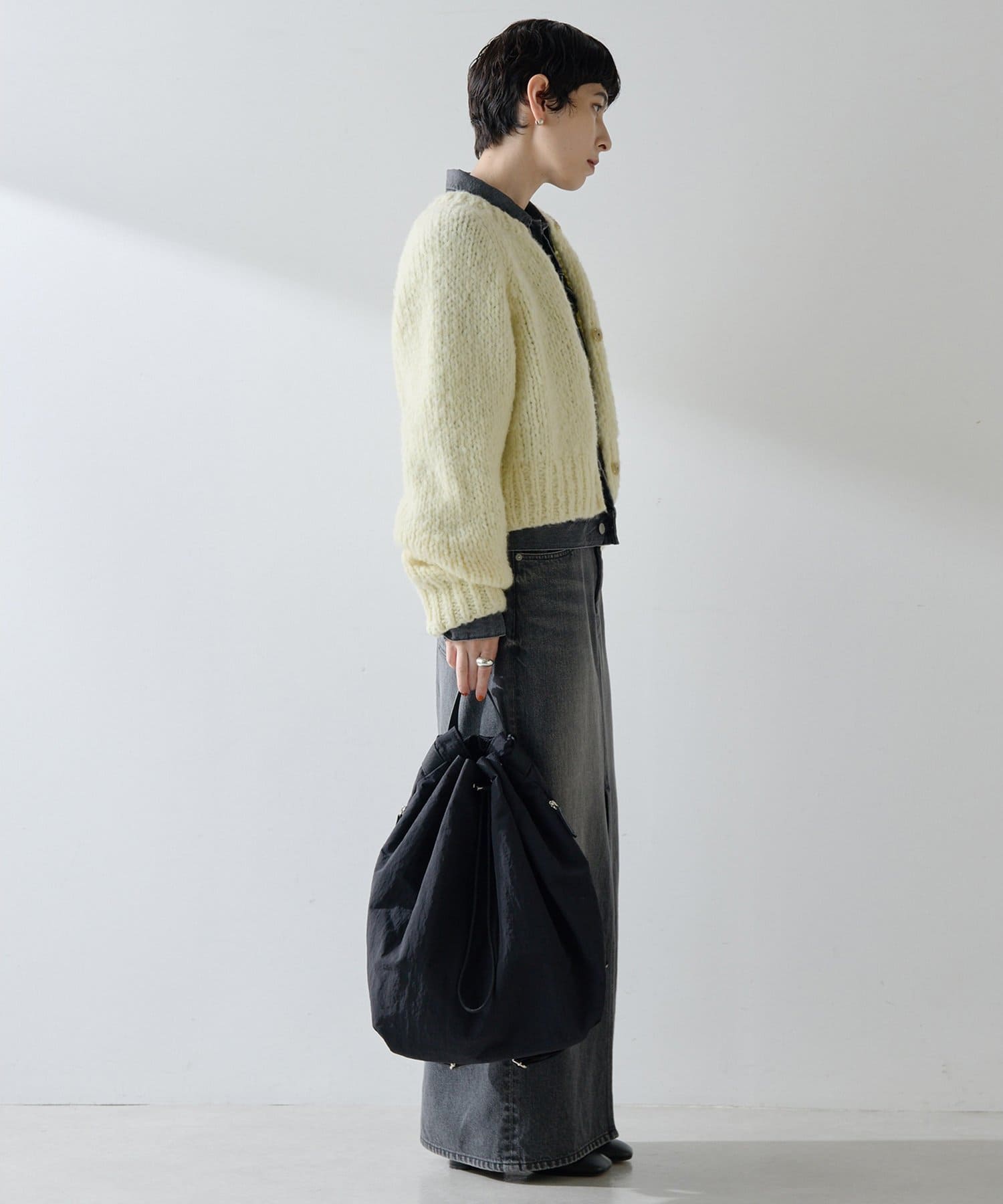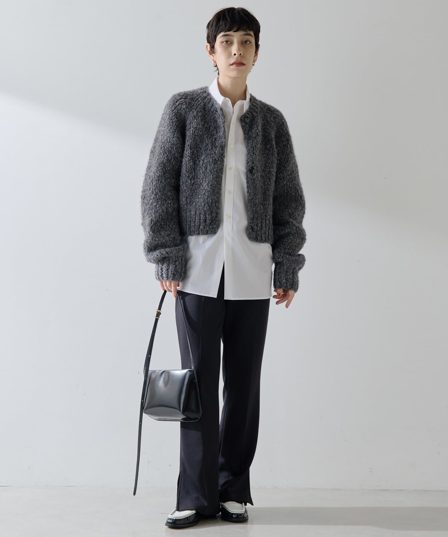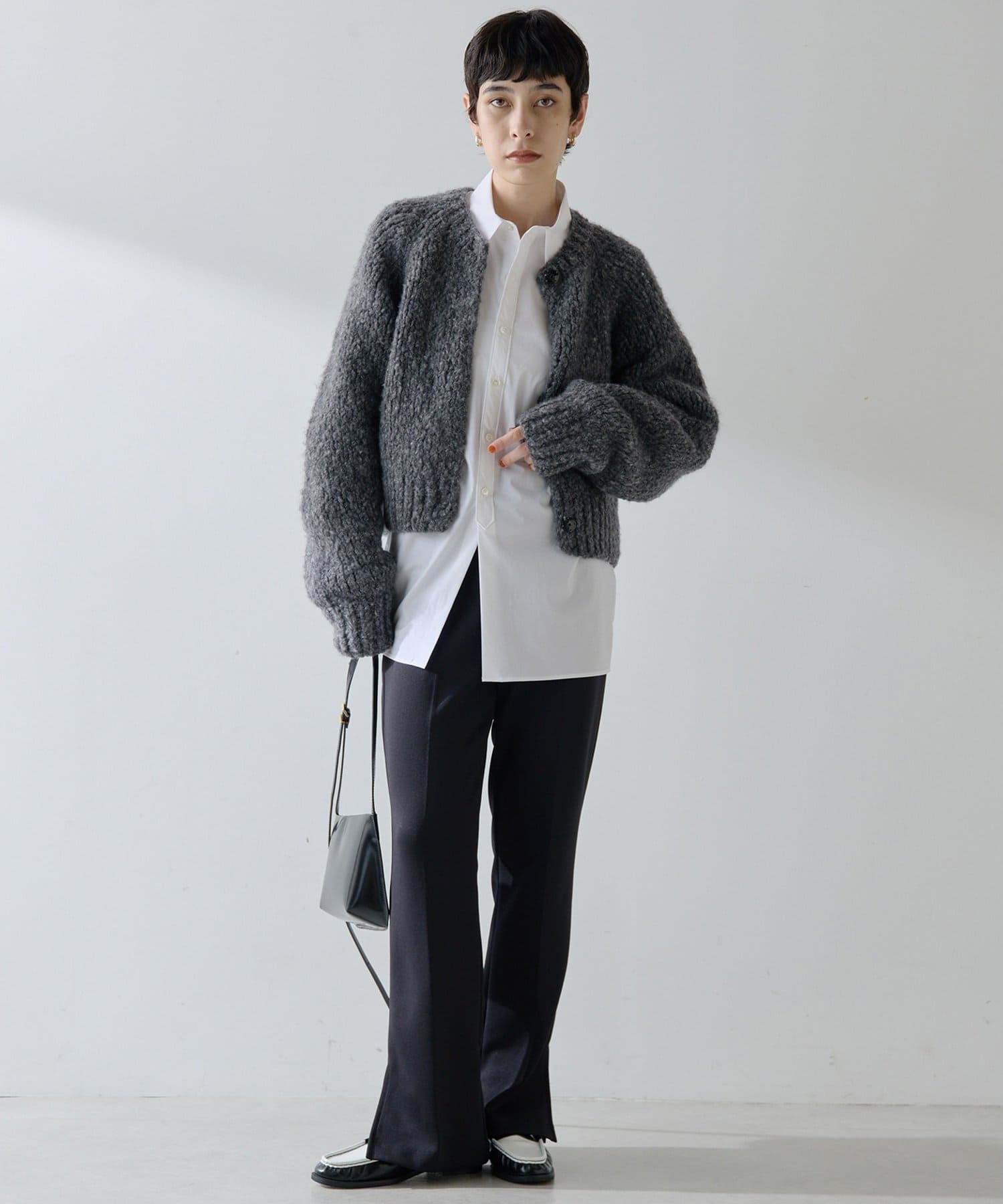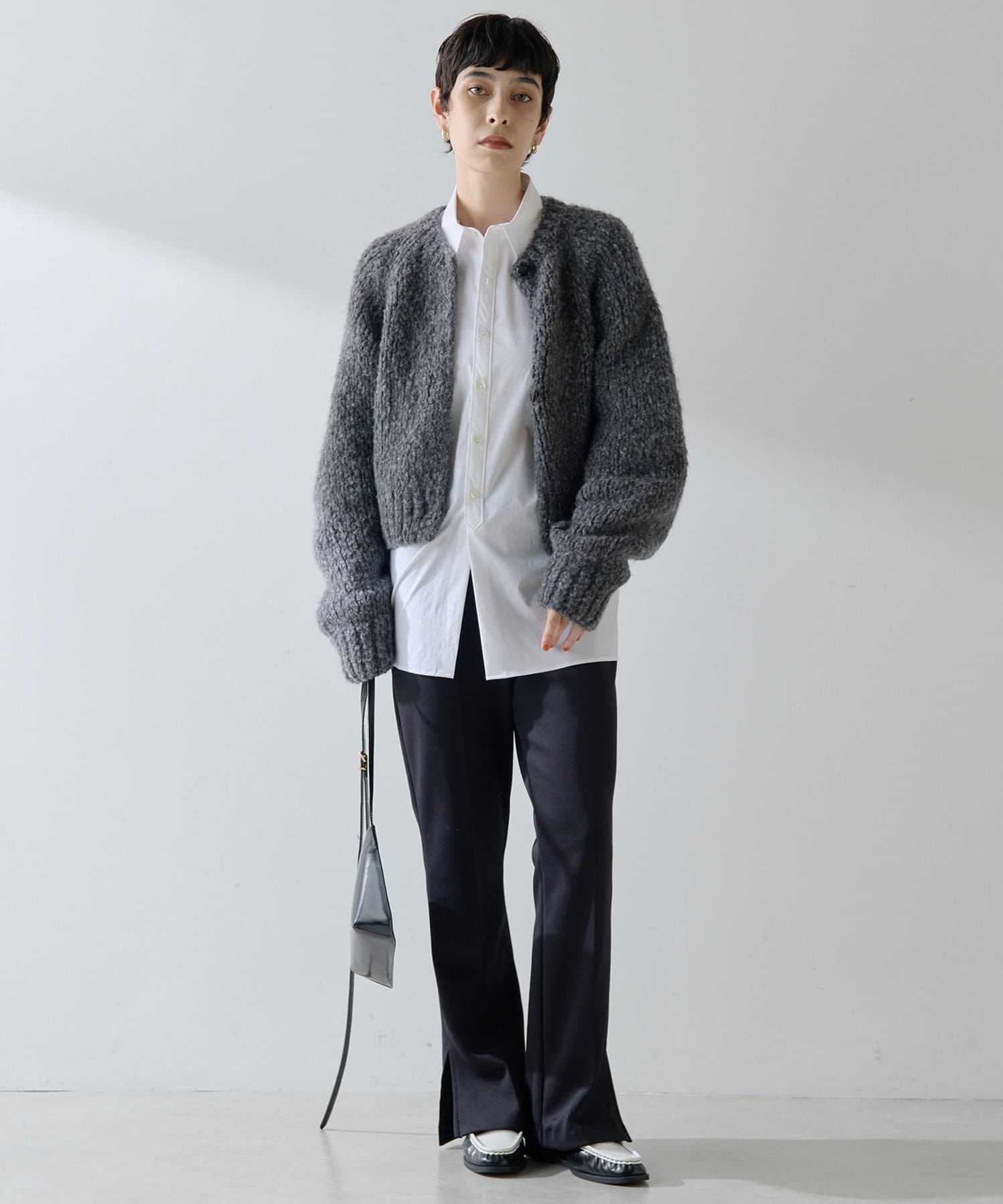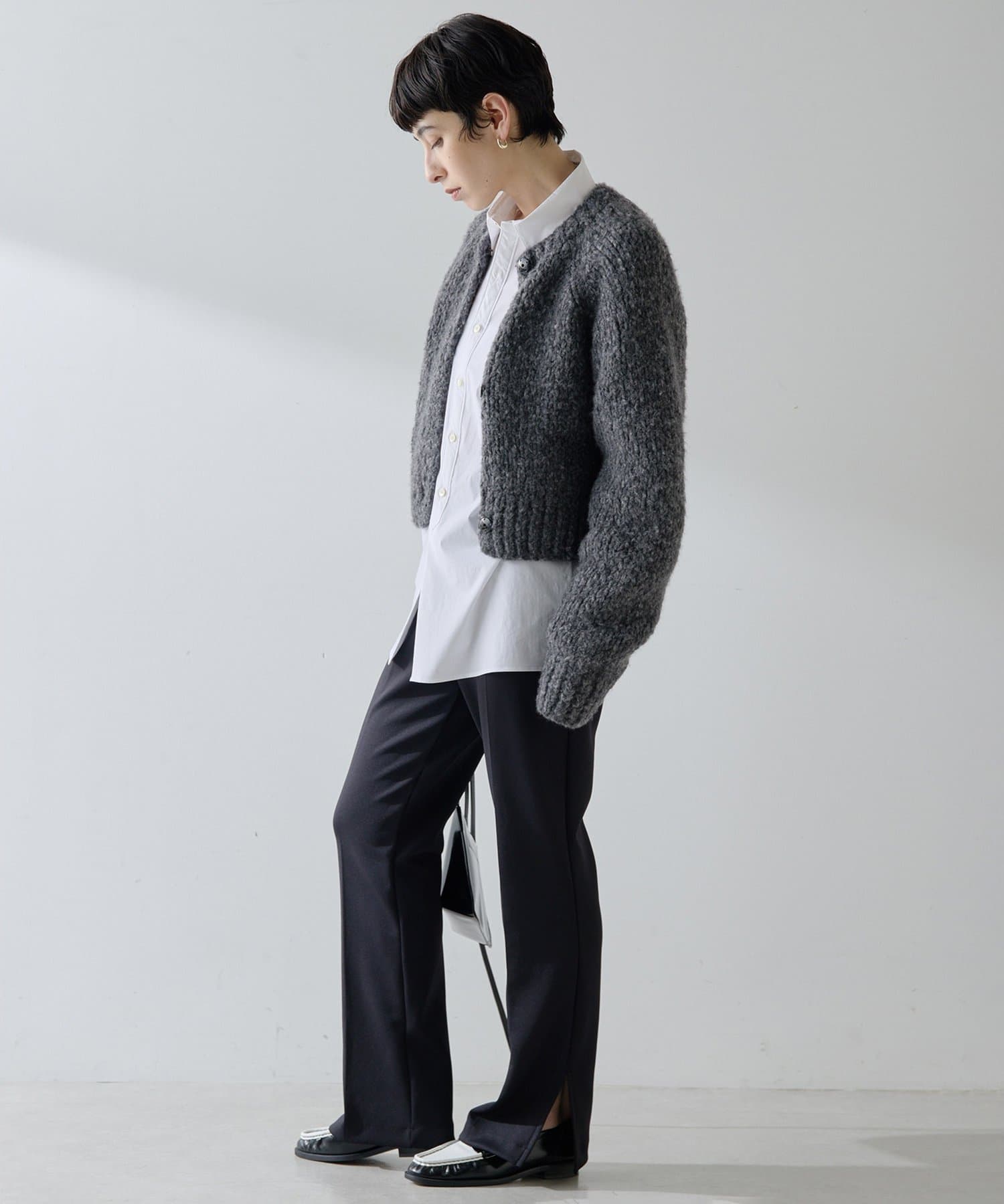 ■短めの着丈で合わせやすく、パンツやスカート、ワンピースなど様々なアイテムとのコーディネートを楽しめるアイテム。