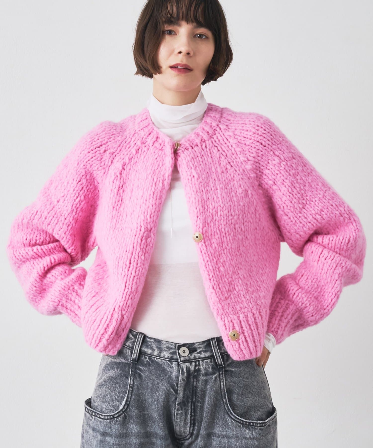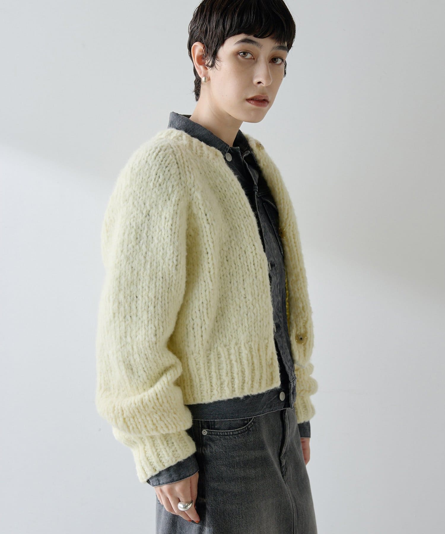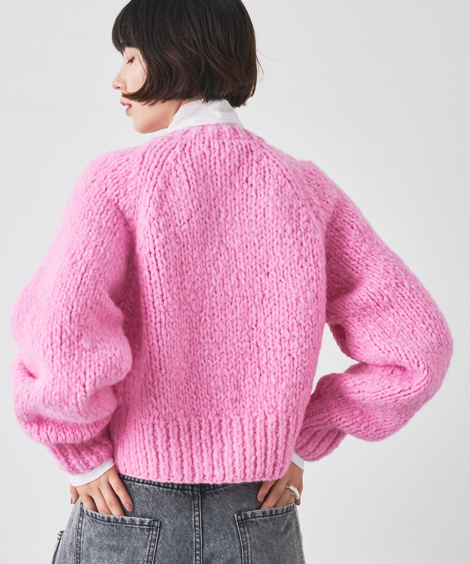 ■ハンドニットならではのざっくりとした表情もポイント。
