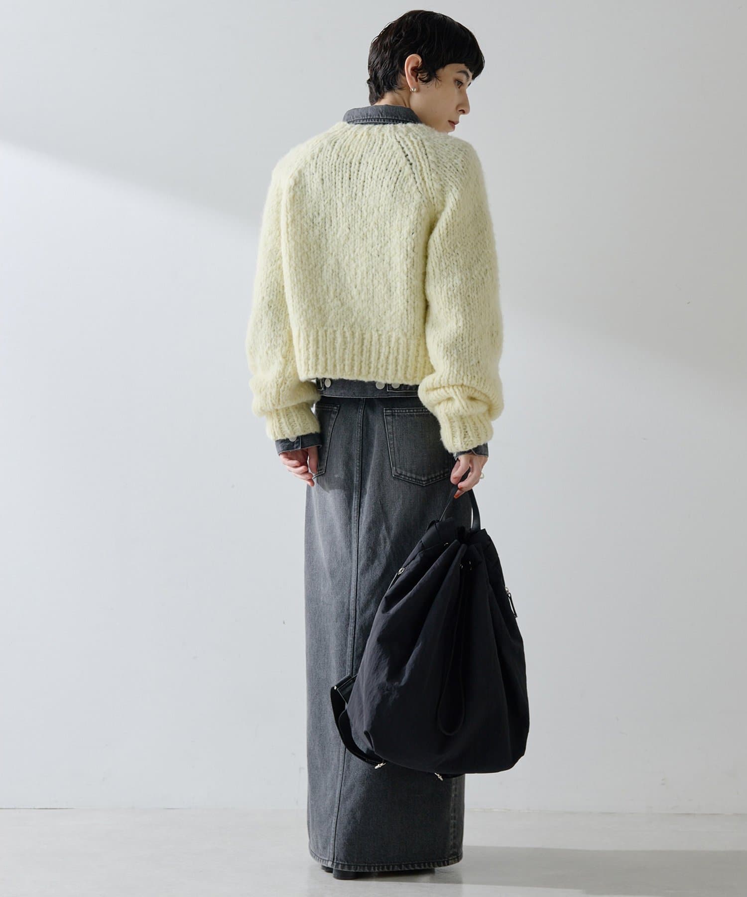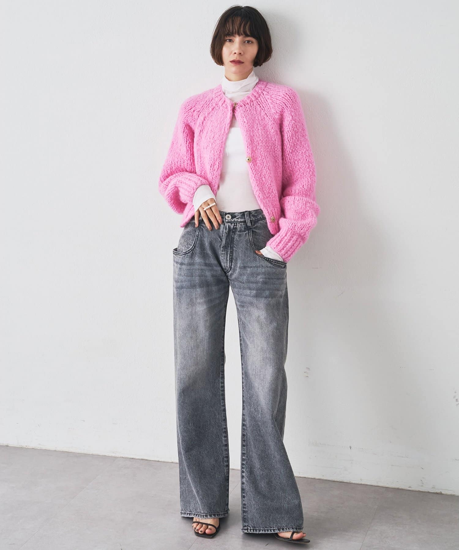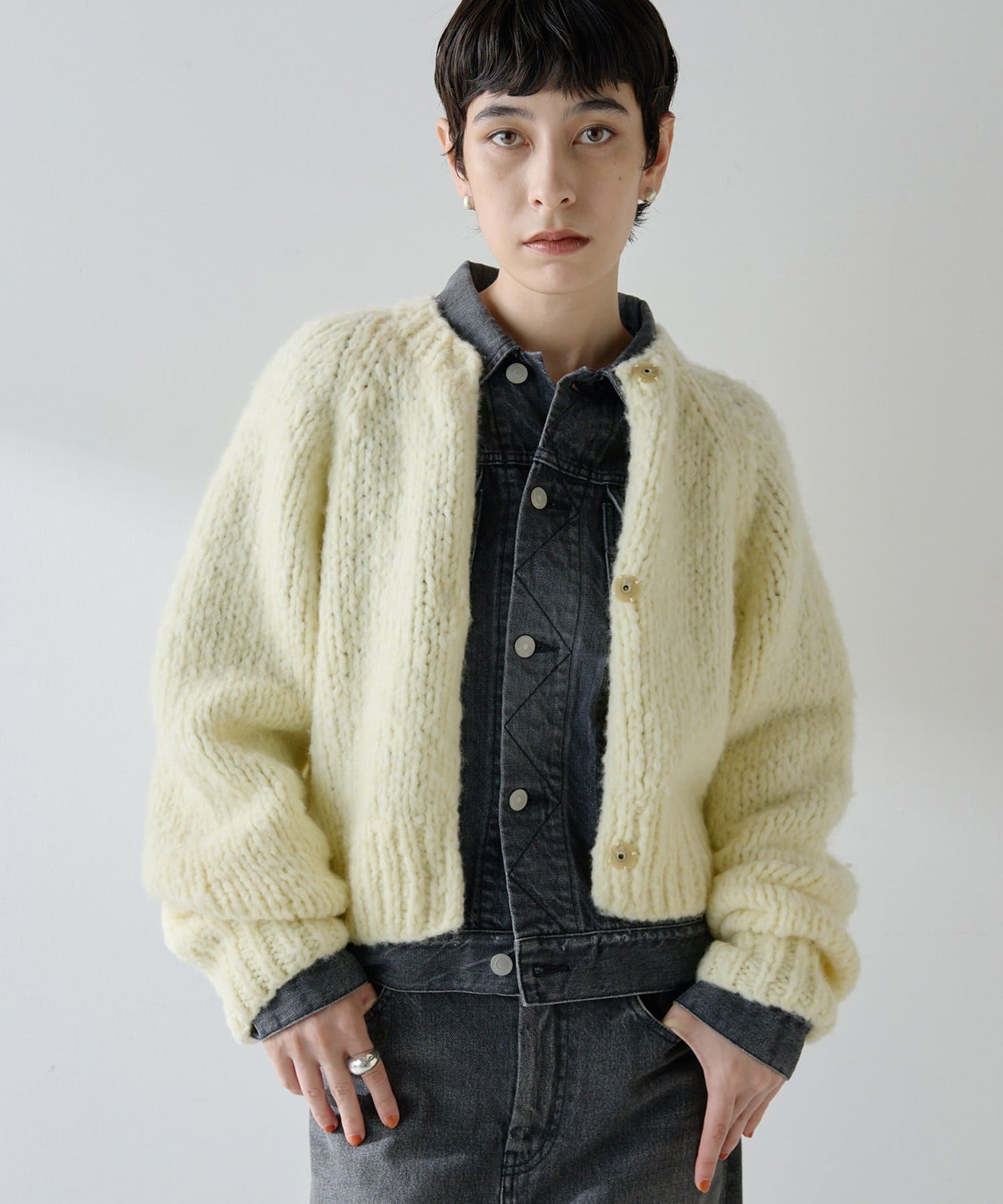 ■ハンドニットならではのざっくりとした表情もポイント。