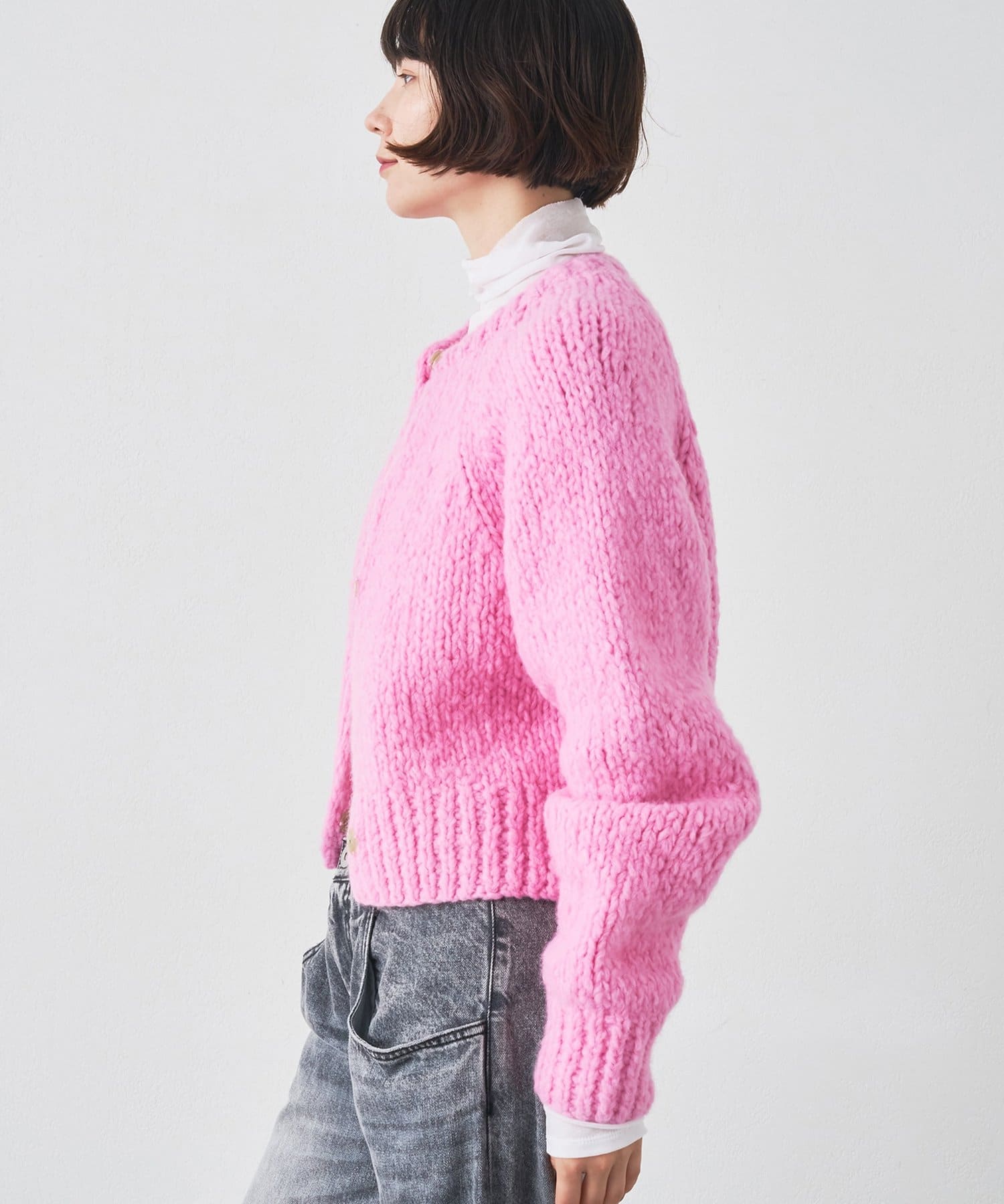 ■イタリア糸を使用したローゲージのハンドニットカーディガン。