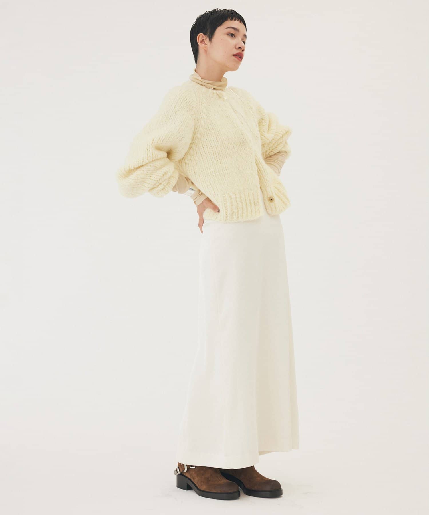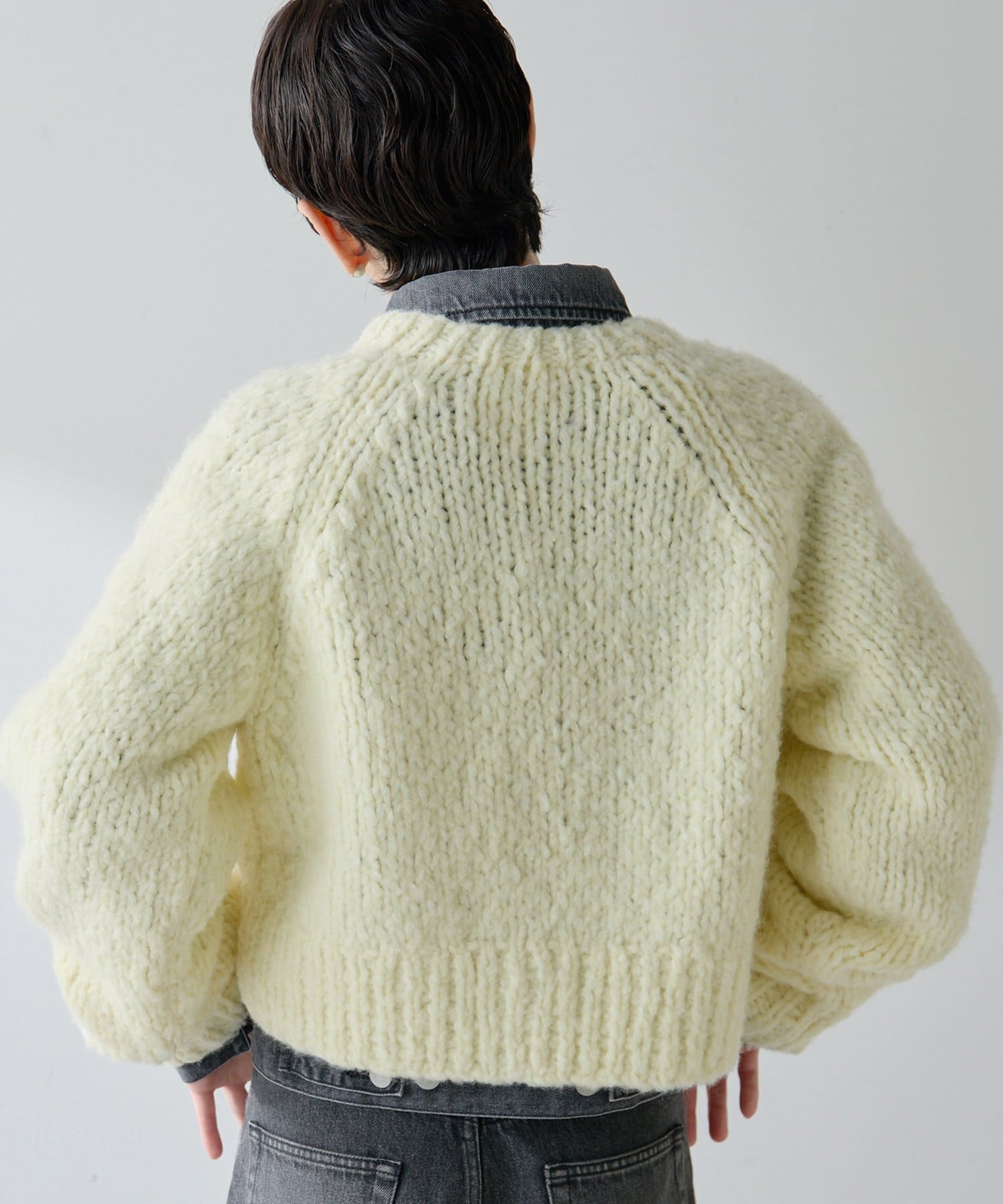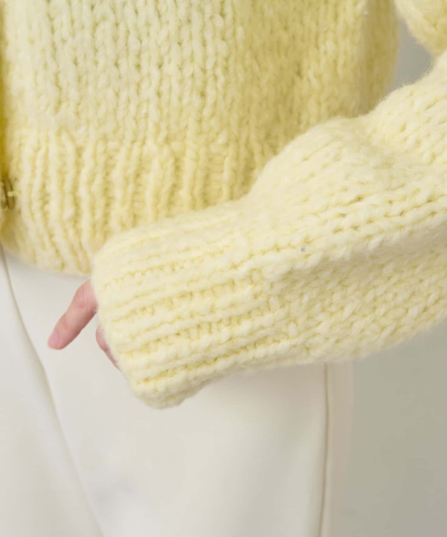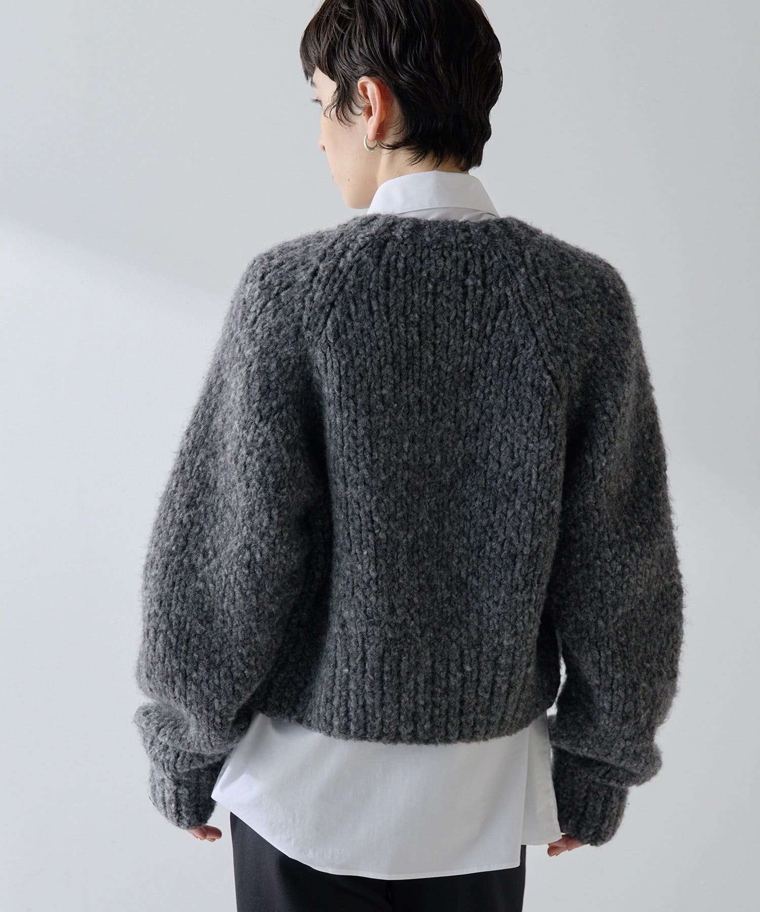 ■ハンドニットならではのざっくりとした表情もポイント。