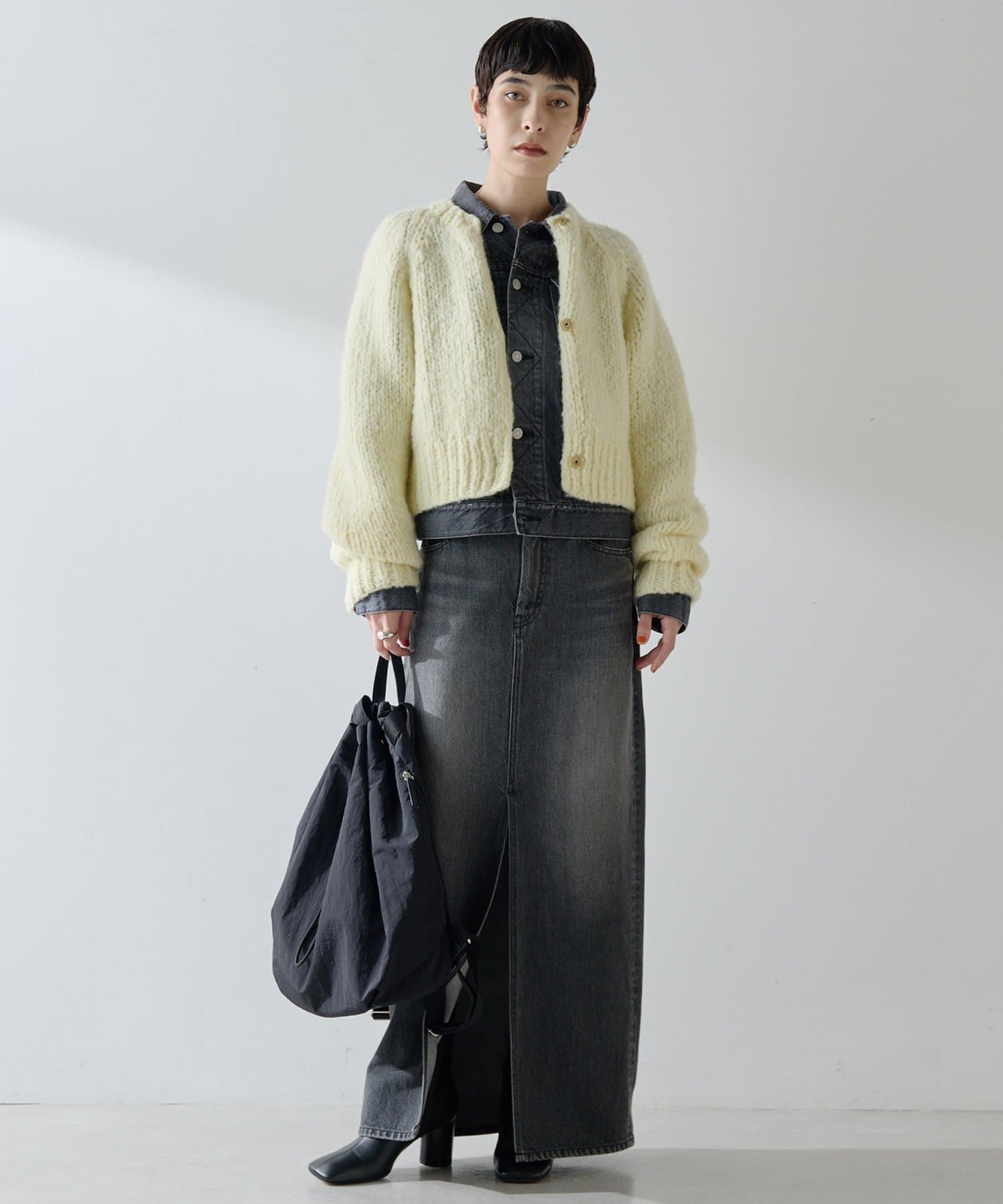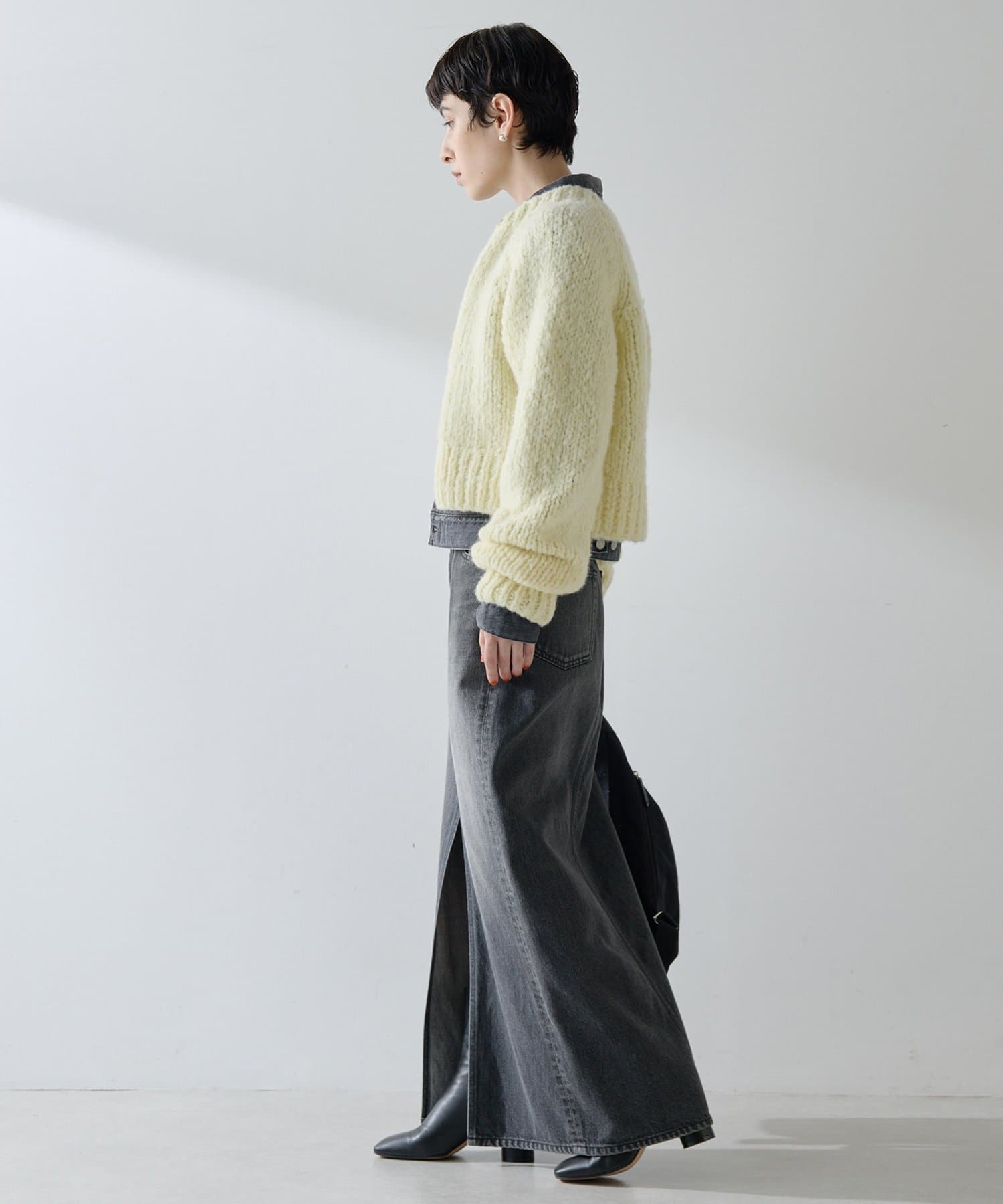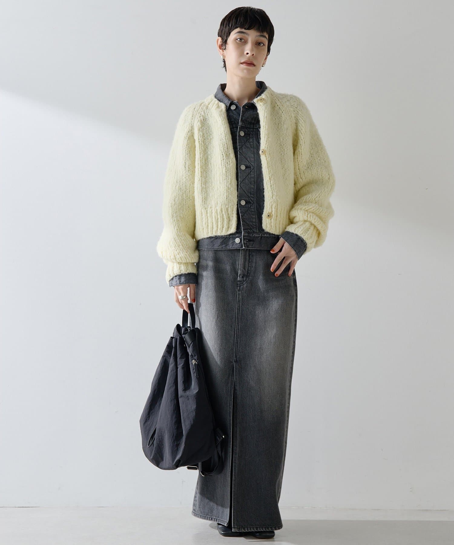 ■短めの着丈で合わせやすく、パンツやスカート、ワンピースなど様々なアイテムとのコーディネートを楽しめるアイテム。