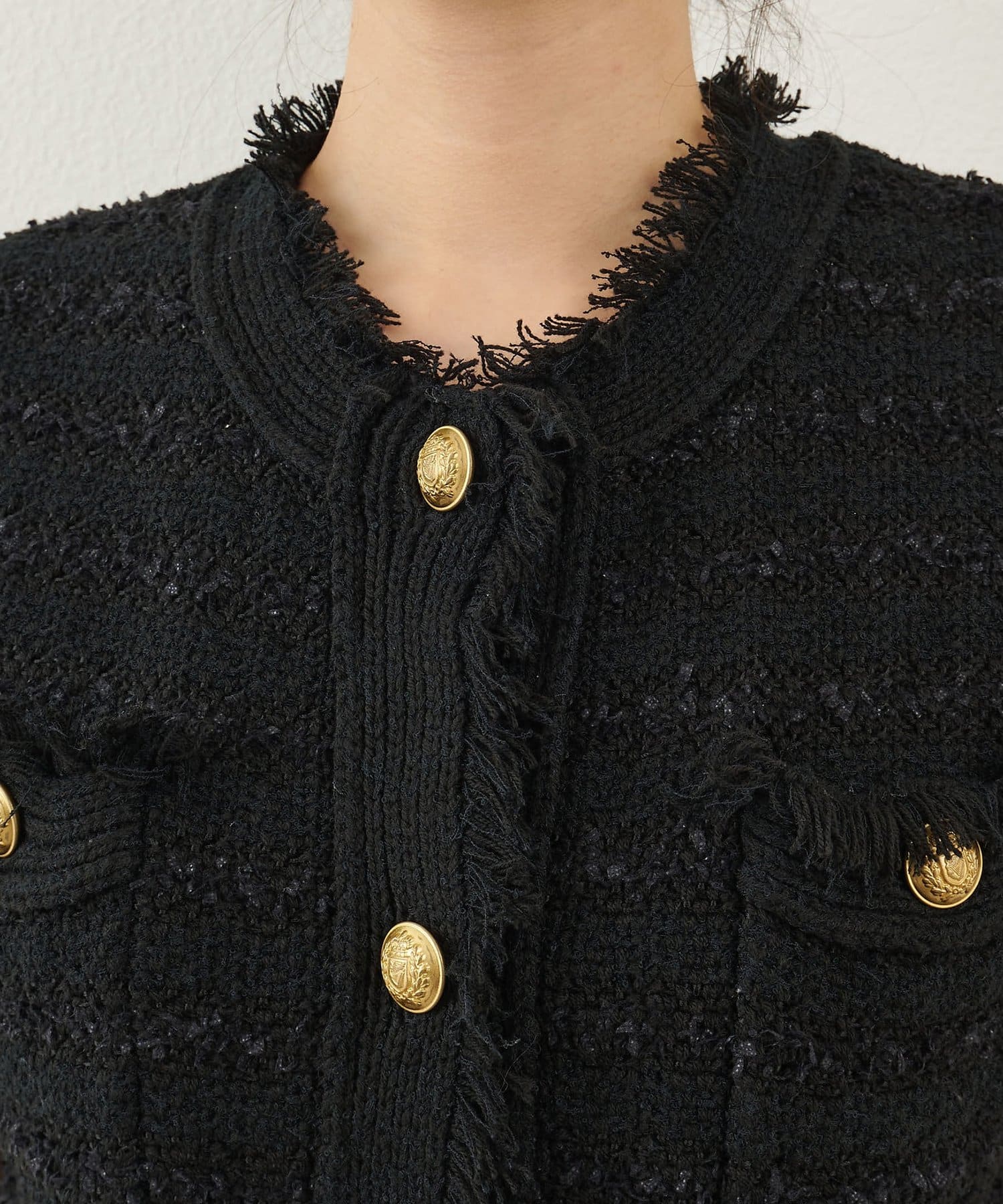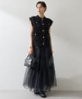 ■ゴールドのボタンがラグジュアリーなアクセントを添え、大人のエレガンスを演出。