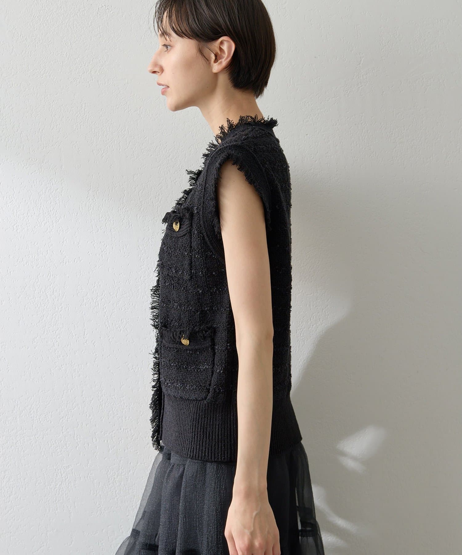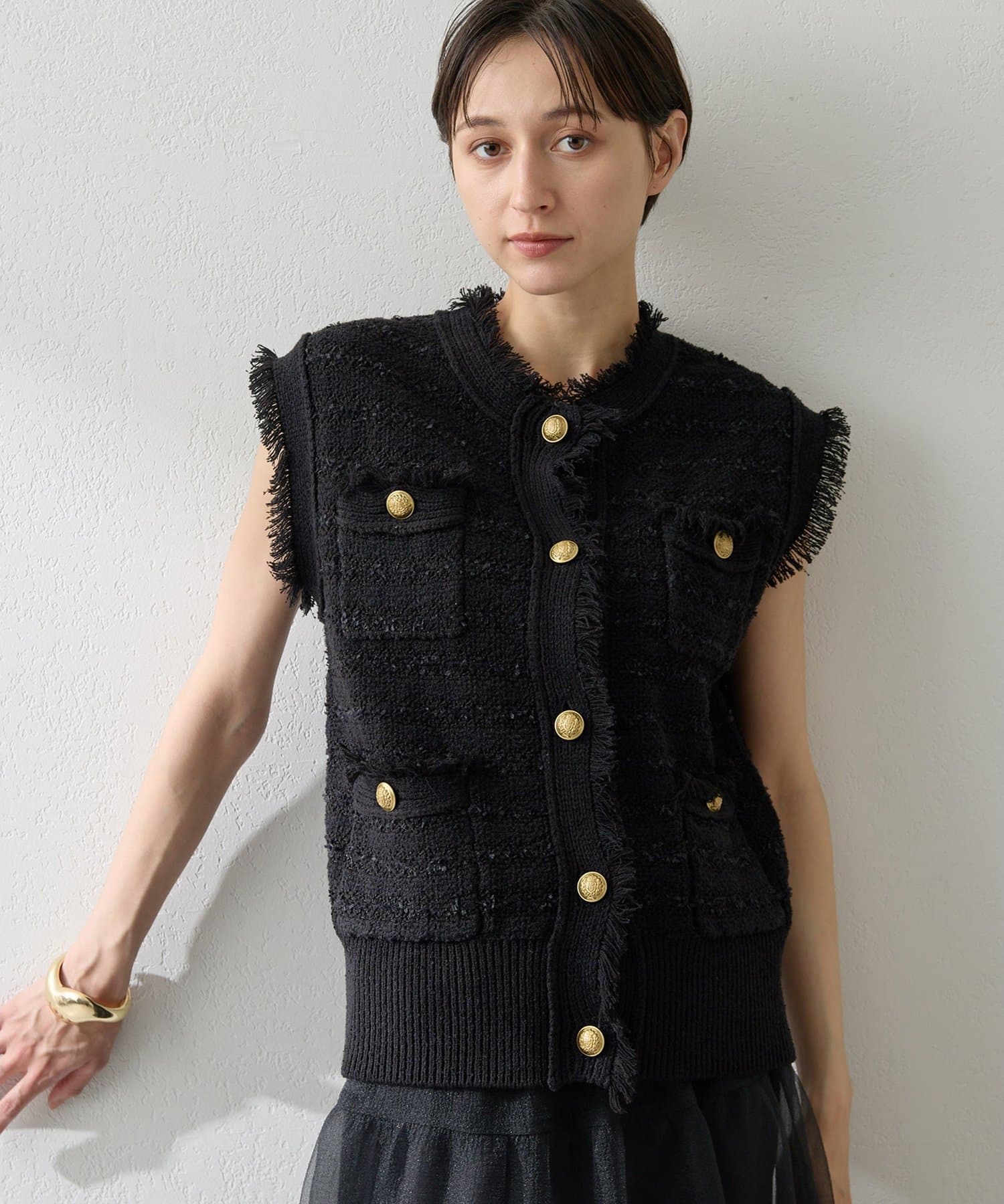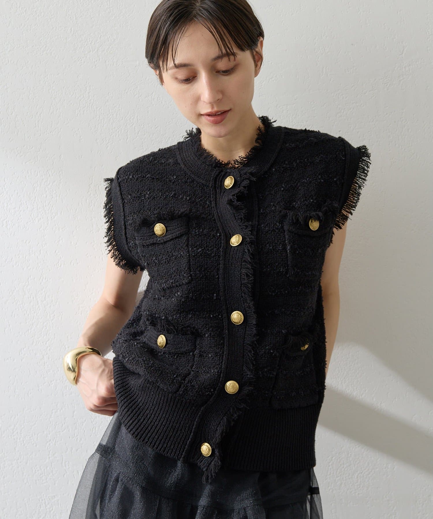 着こなしの幅を楽しめる、表情豊かなツイードニットジレ
