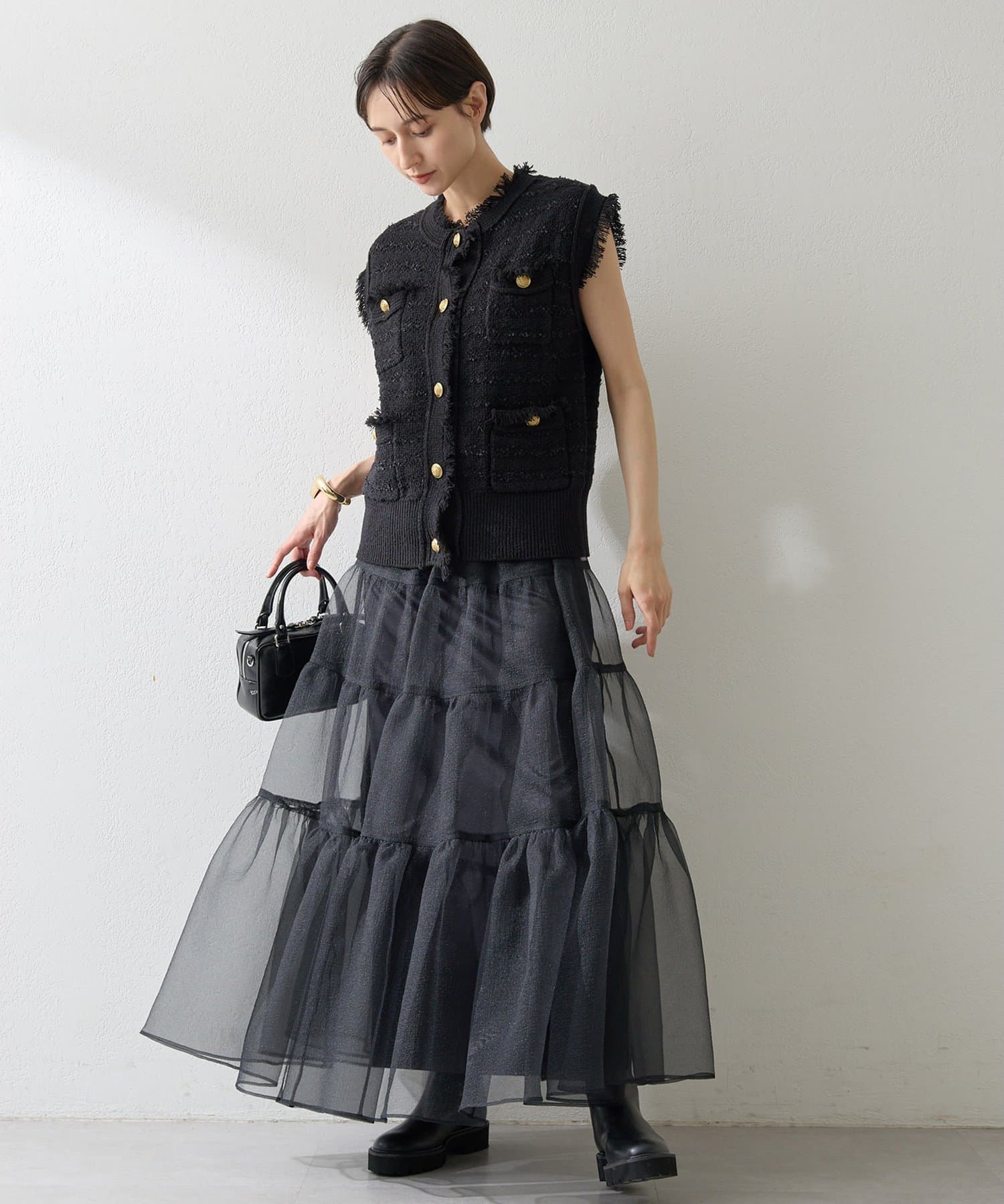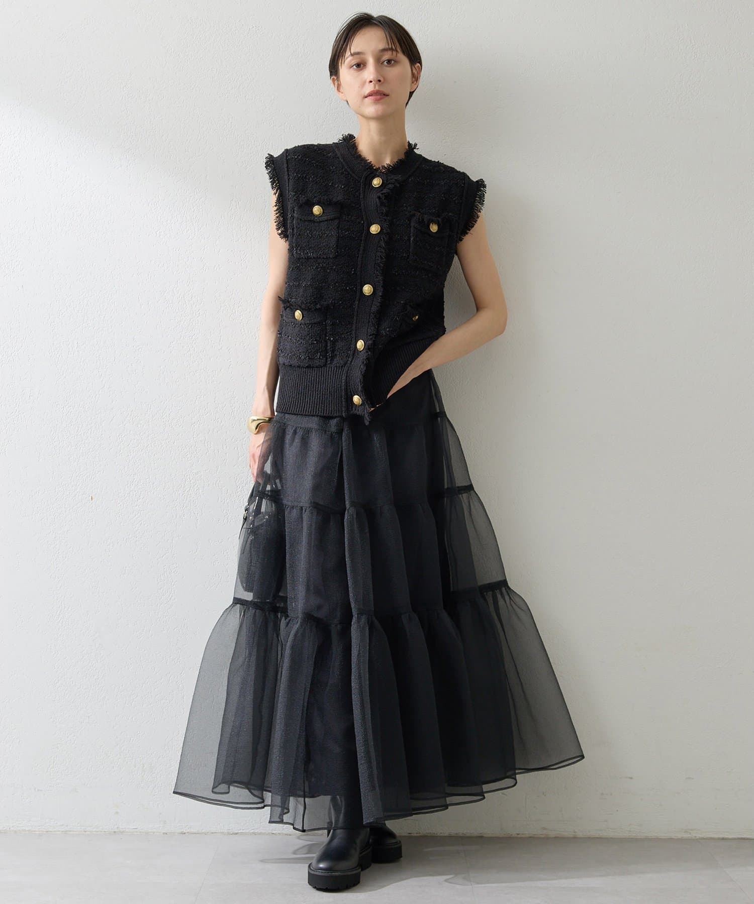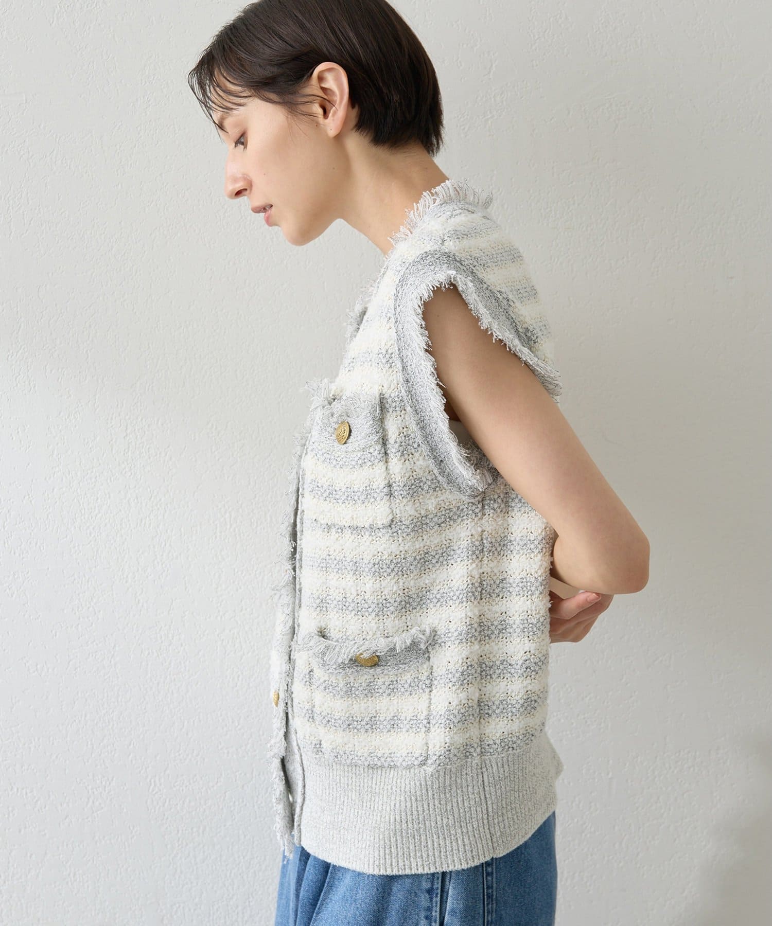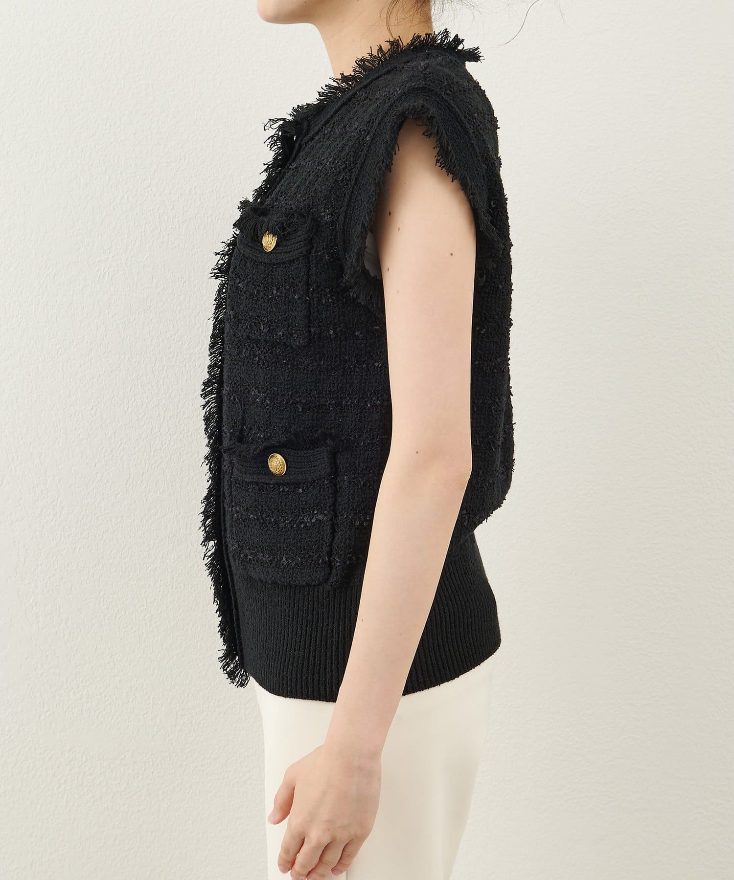 着こなしの幅を楽しめる、表情豊かなツイードニットジレ