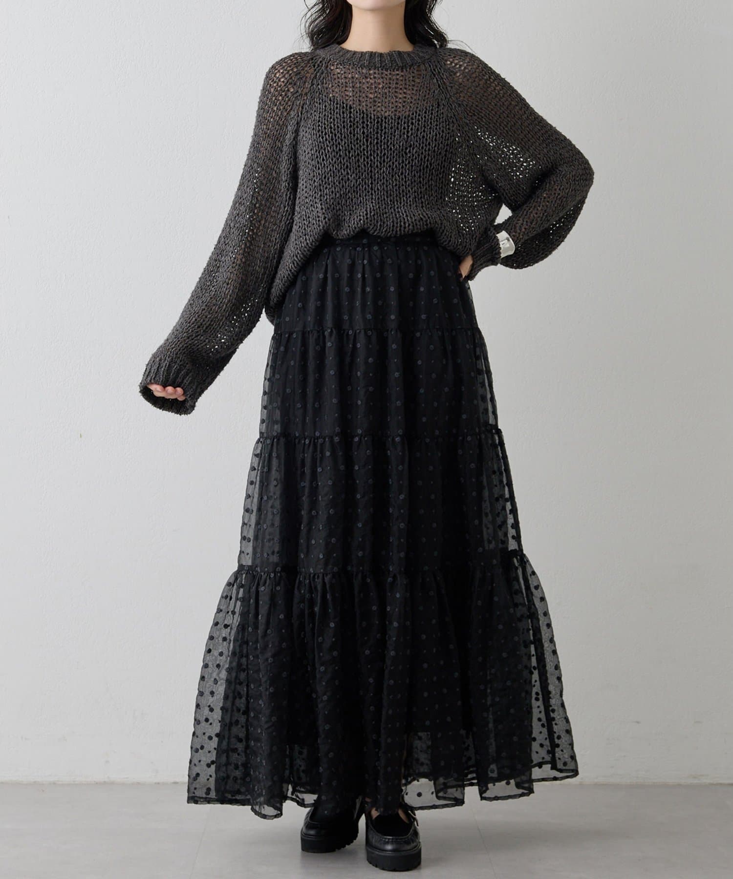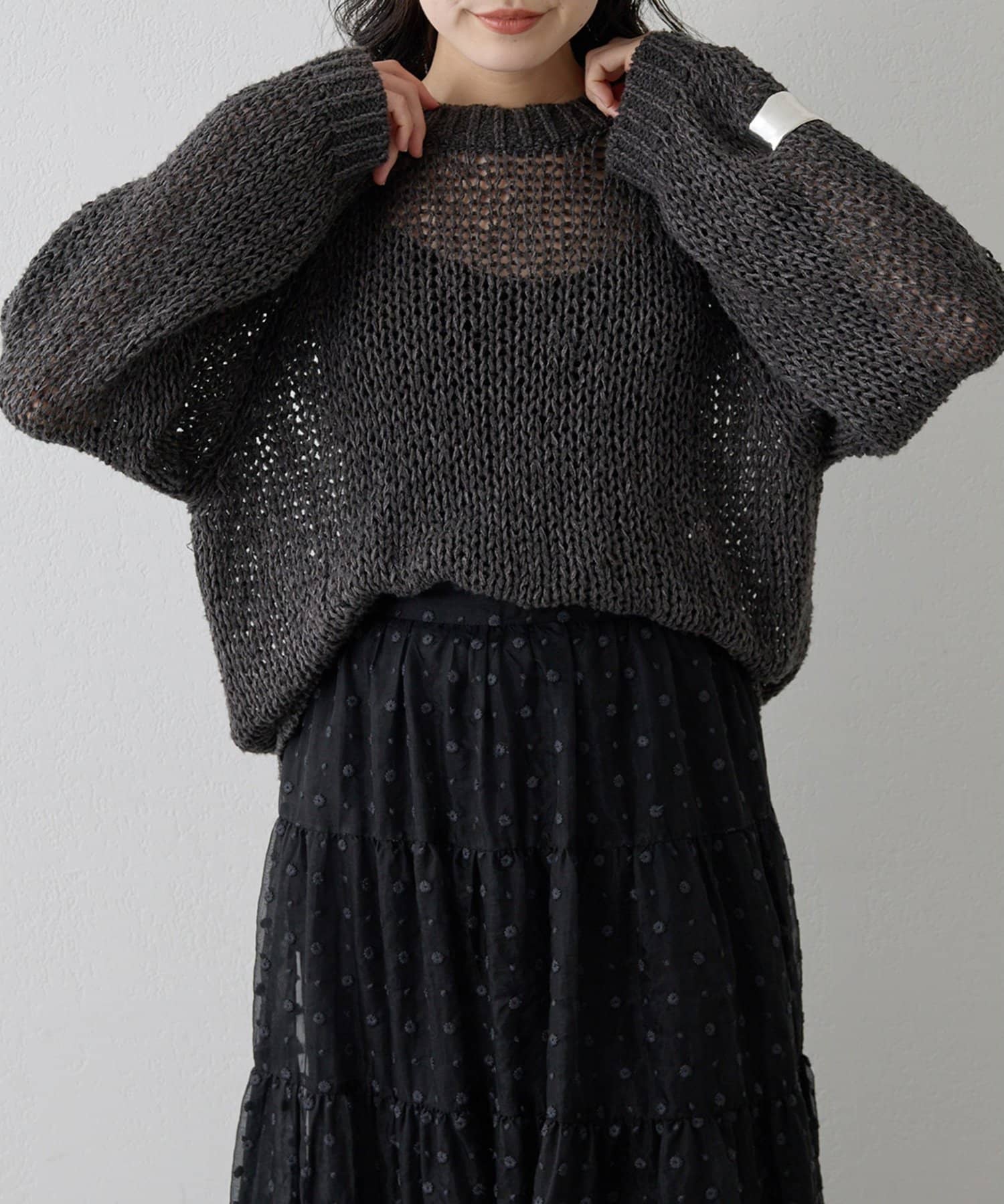 ■ざっくりとした編み地がこなれ感漂うローゲージニットプルオーバー。