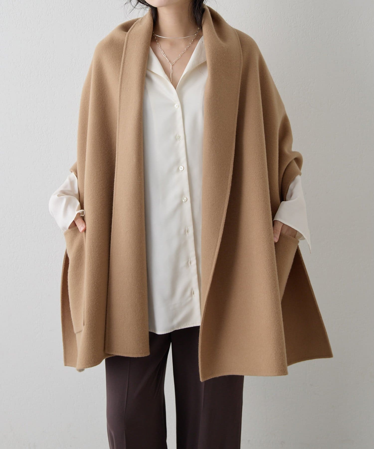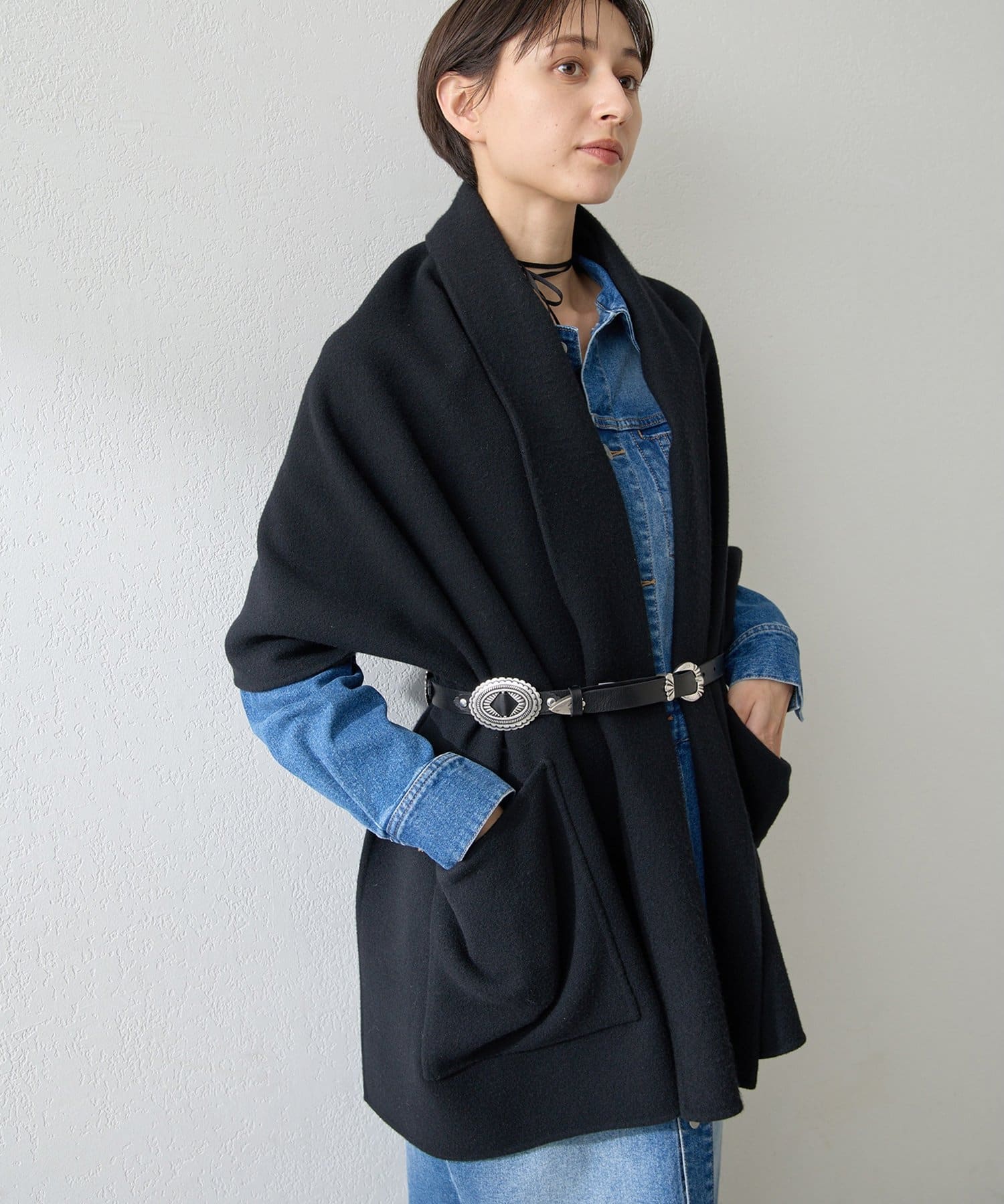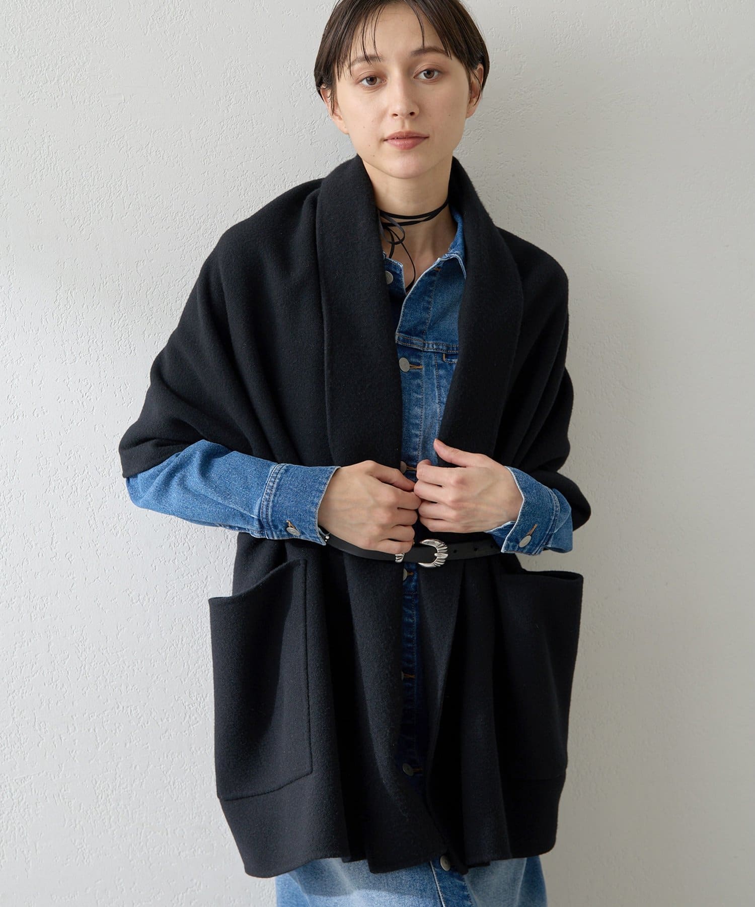 ■大判ストールにポケットディテールをプラスしたデザインは、機能的なだけでなく仕立ての良い品のある見え感がポイント。