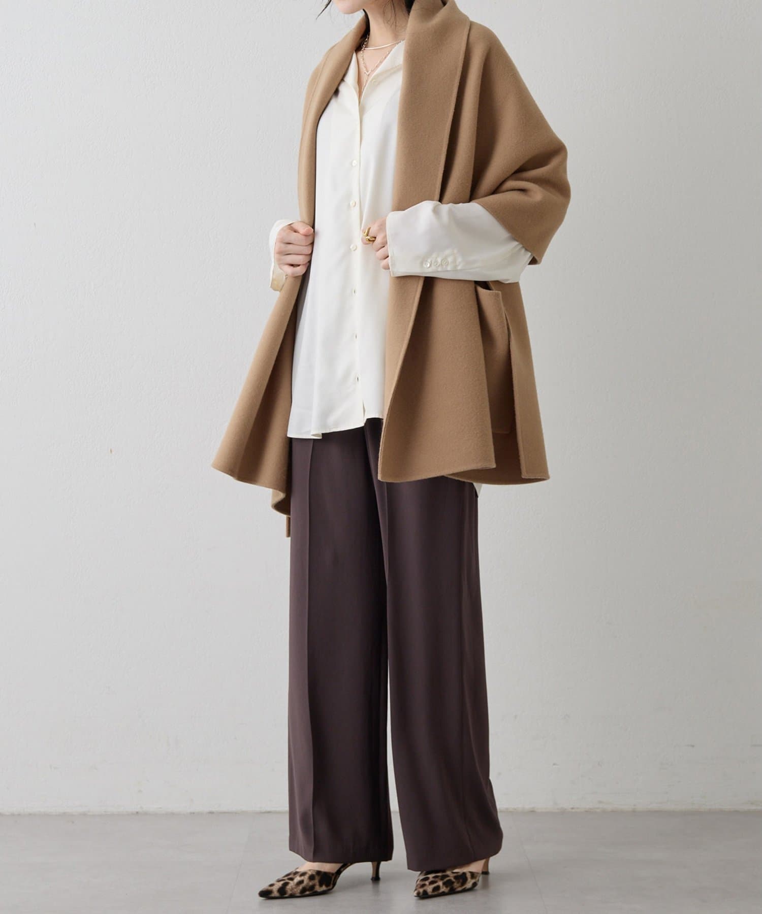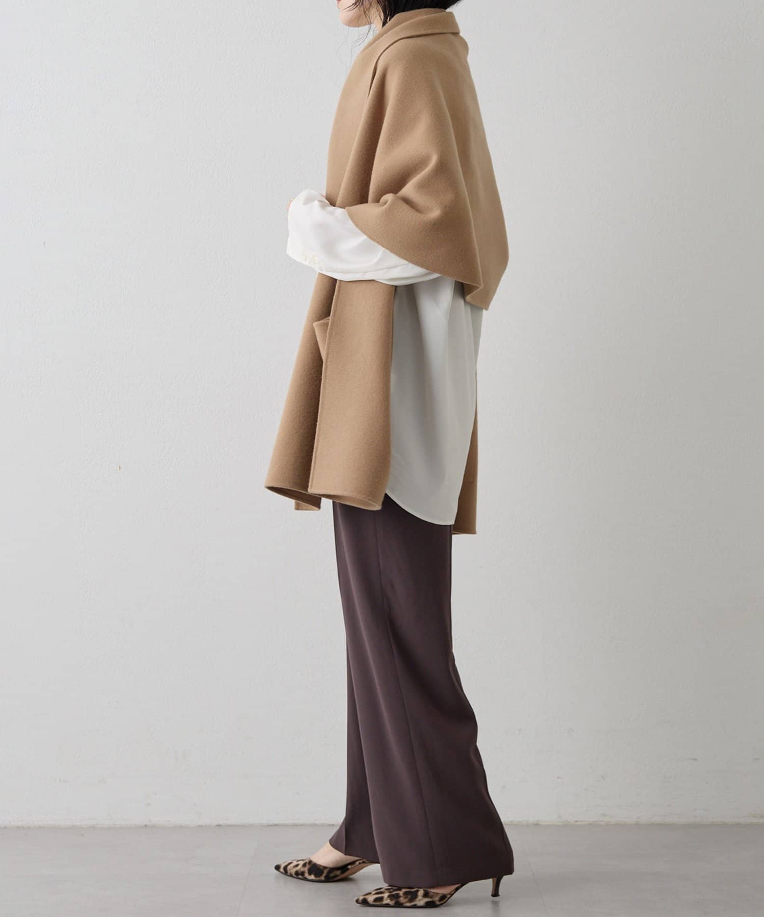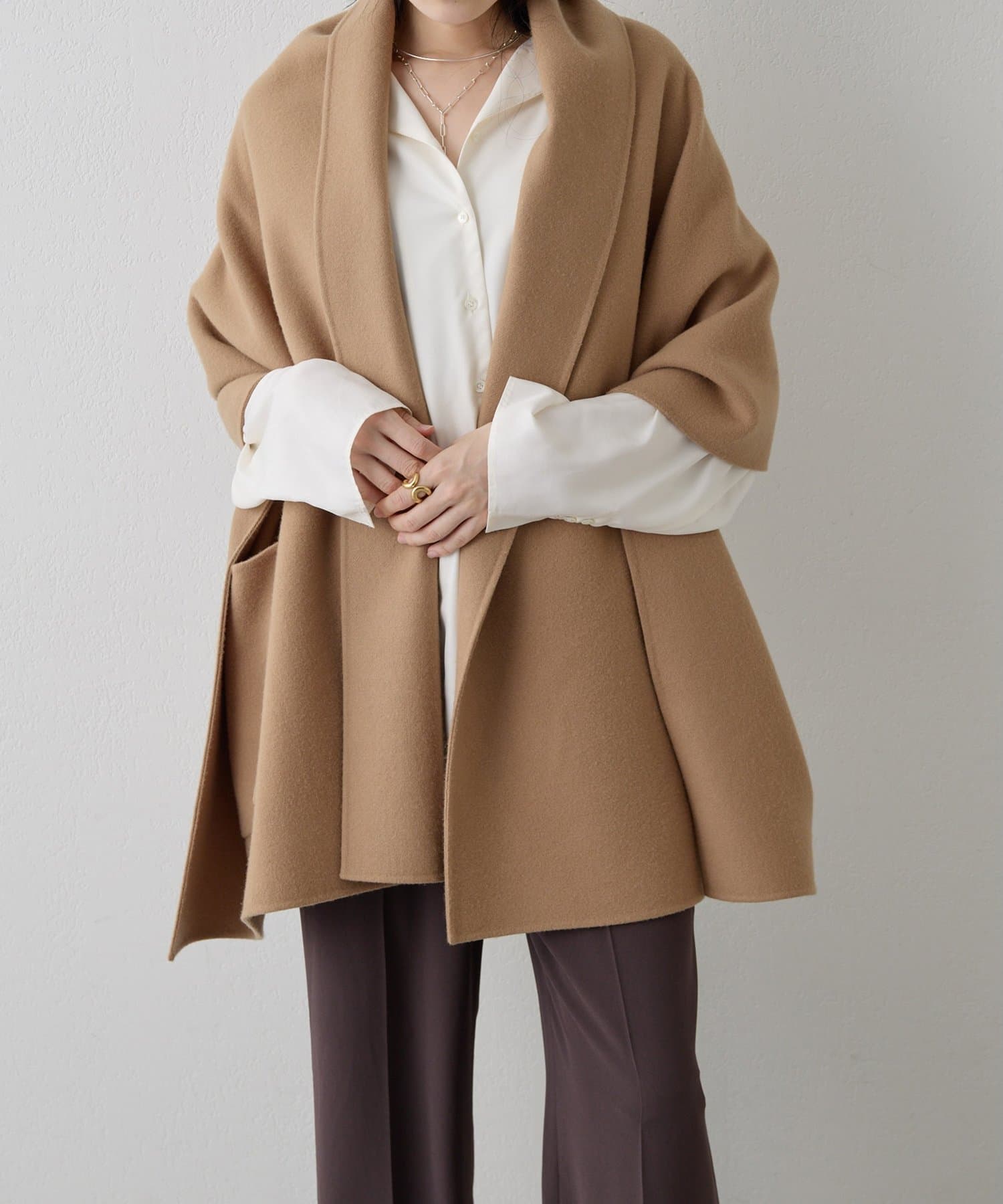 ■大判ストールにポケットディテールをプラスしたデザインは、機能的なだけでなく仕立ての良い品のある見え感がポイント。