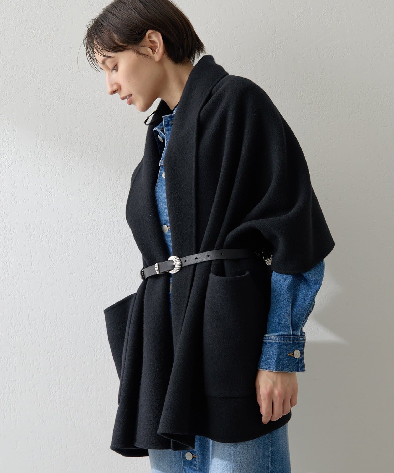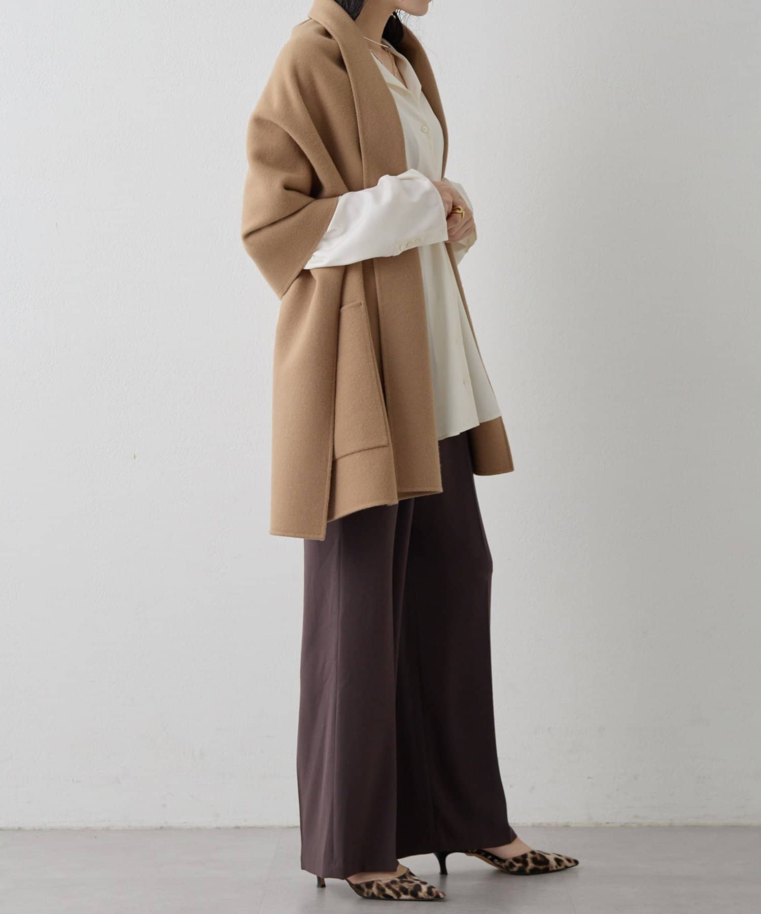 ■ポンチョのようなシルエットと、しっかりとしたウールの肉感がアウターライクな一着。