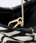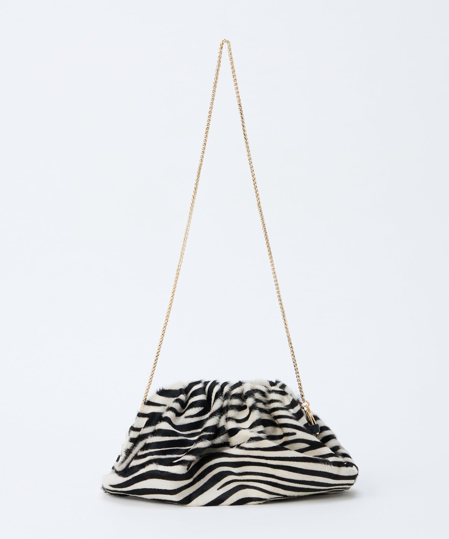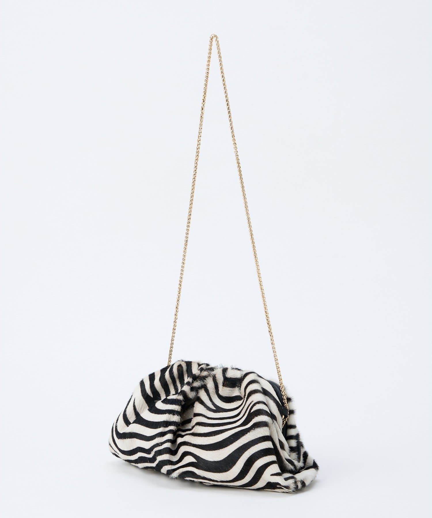 ■ゼブラ柄のヘアカーフが目を惹くクラッチバッグ。