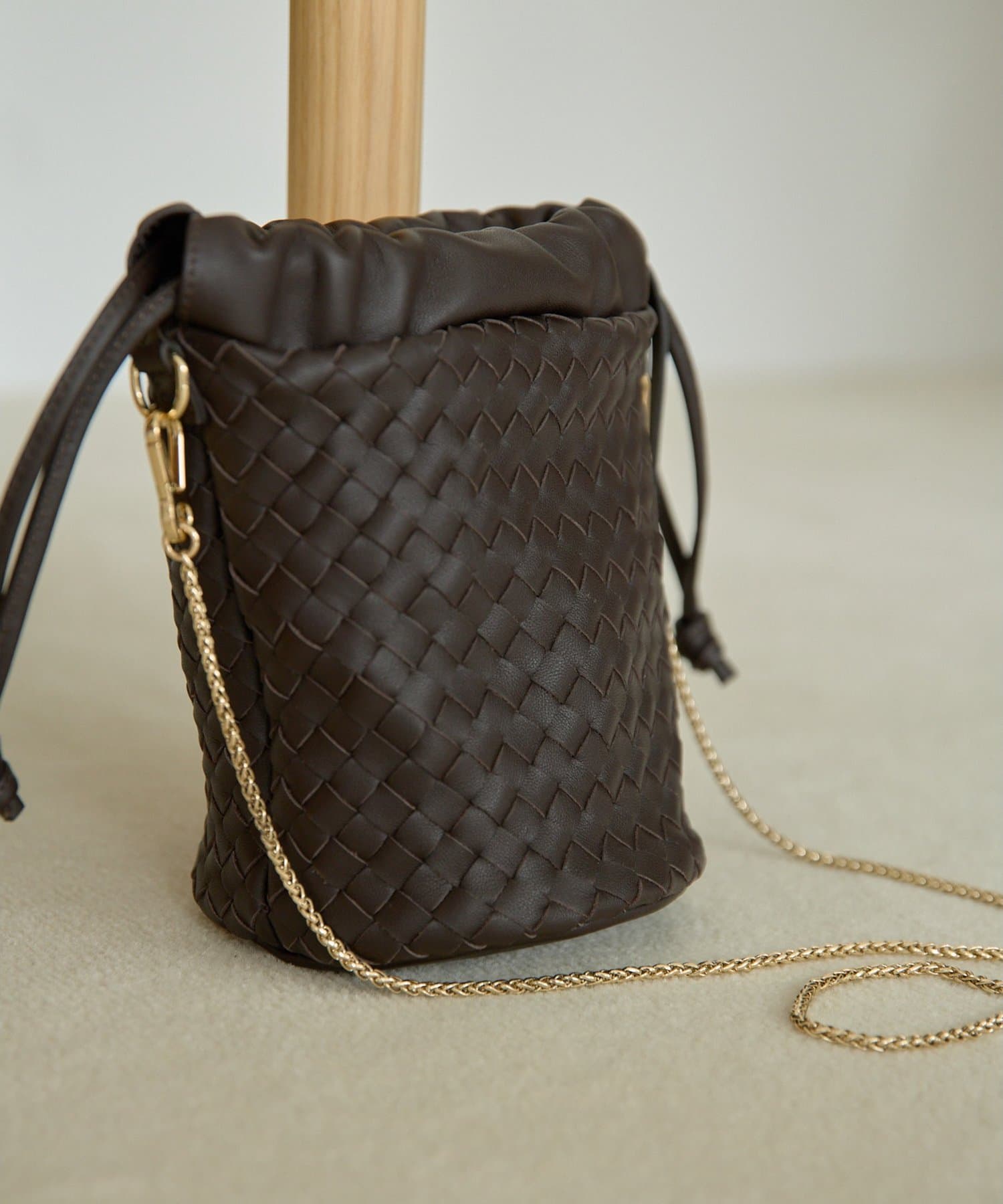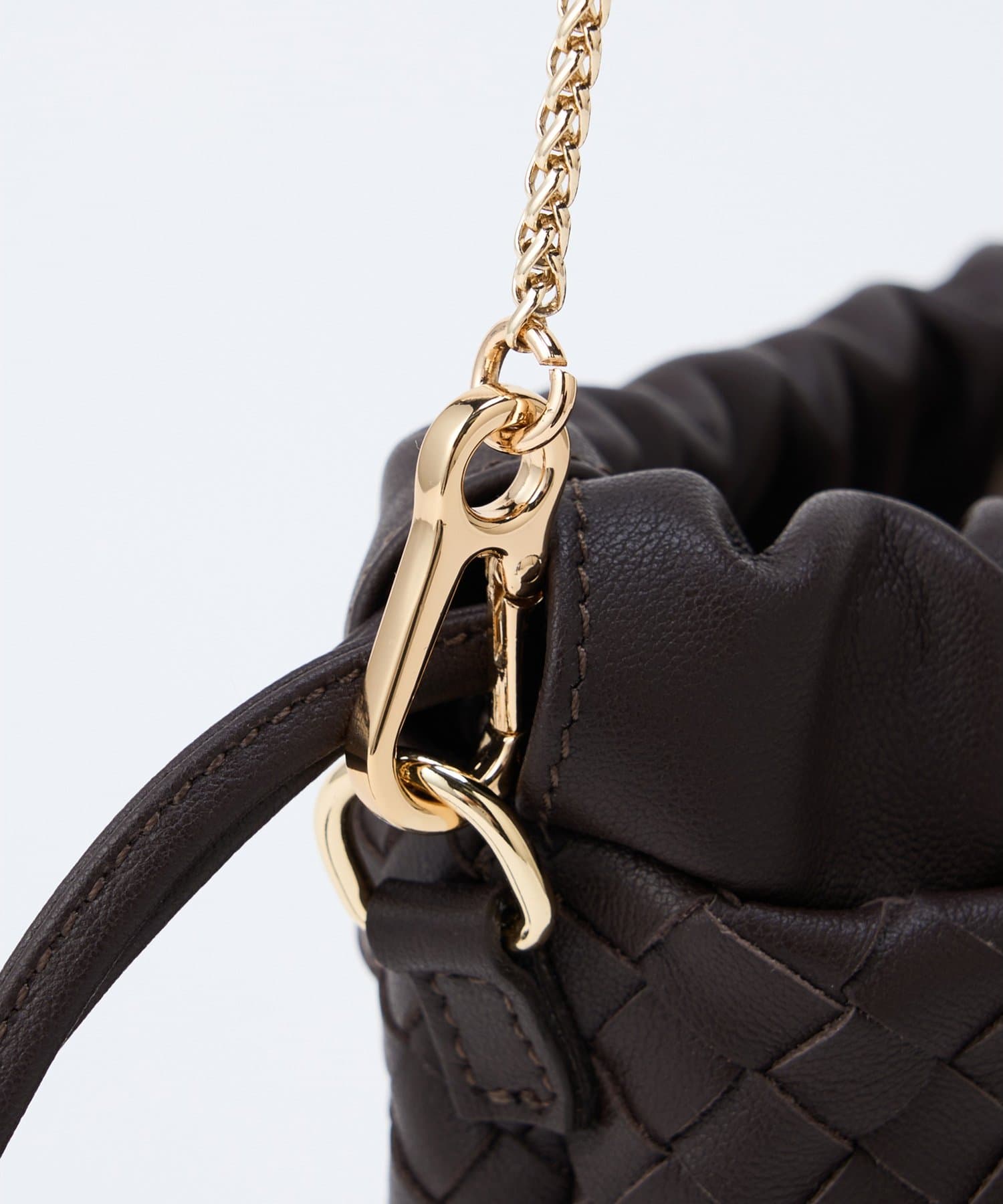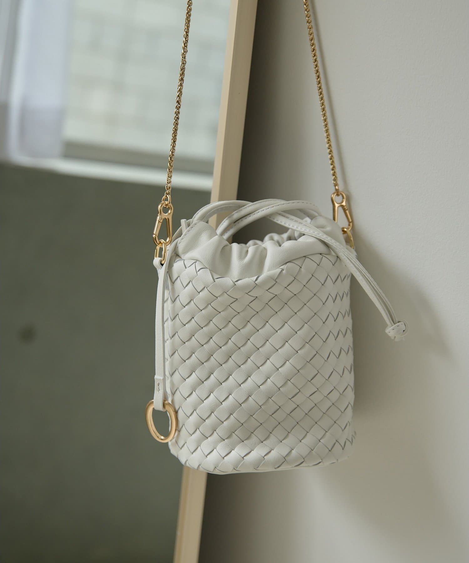■付属のチェーンストラップでショルダーにしても、手持ちの巾着バッグとしても使える2way仕様。