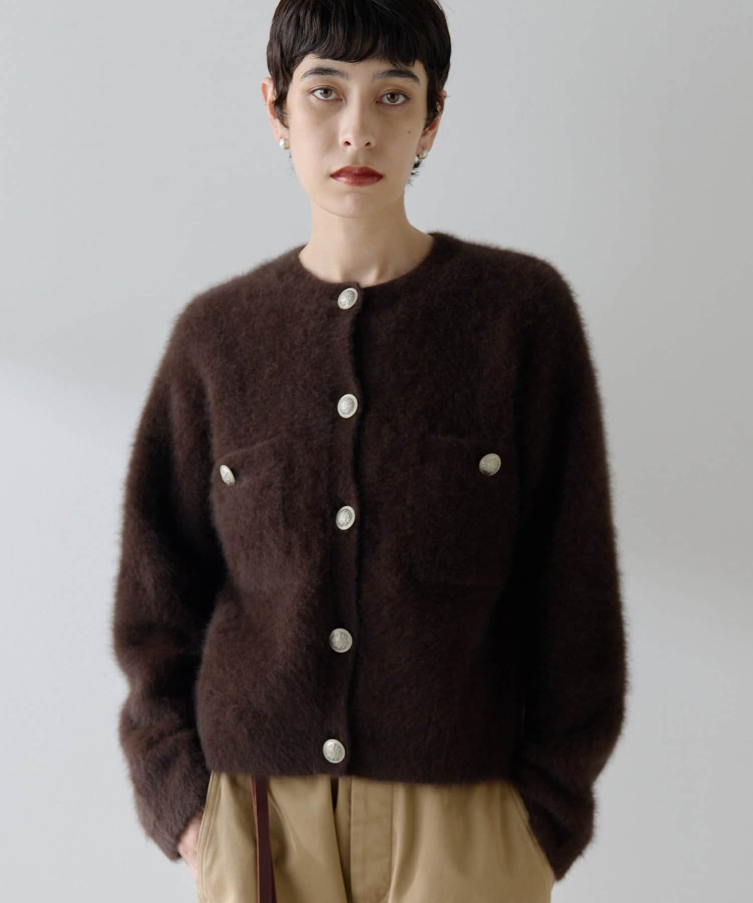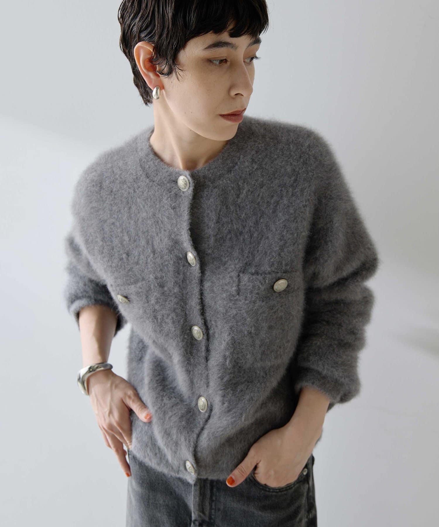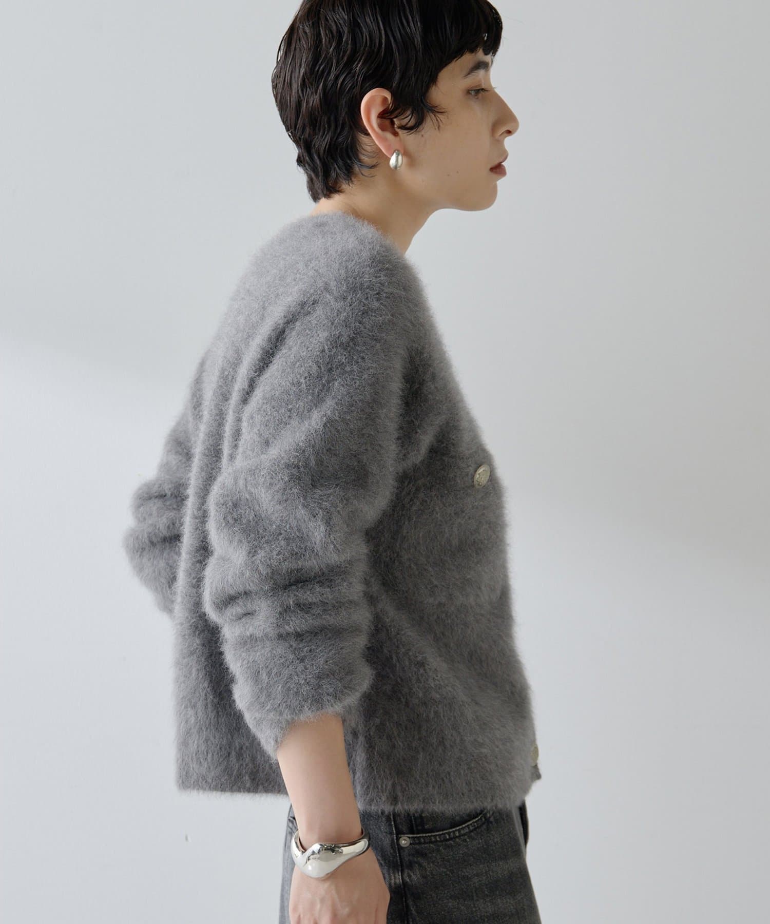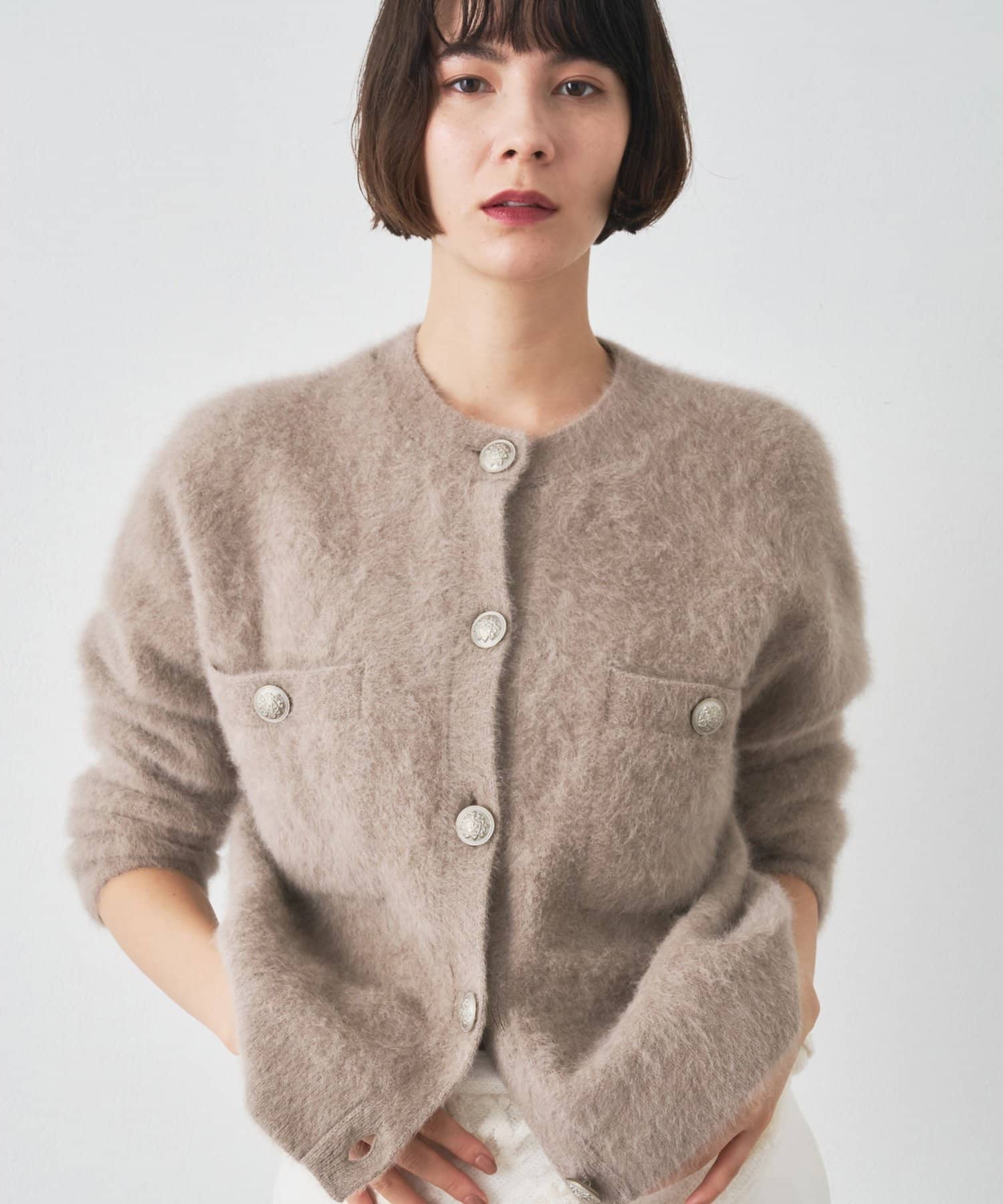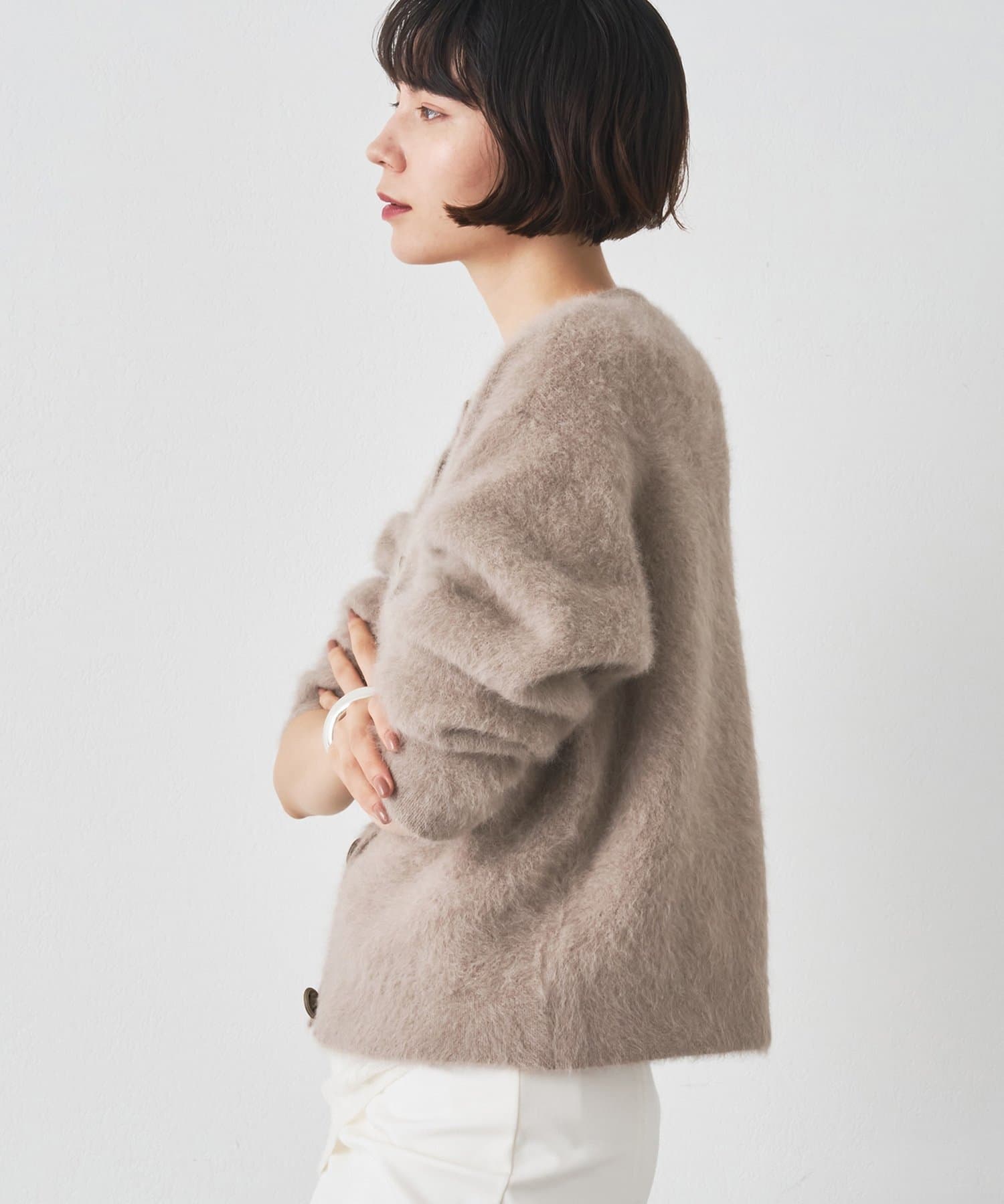 ■毛足感のあるふんわりとした風合いが魅力のニットカーディガン。