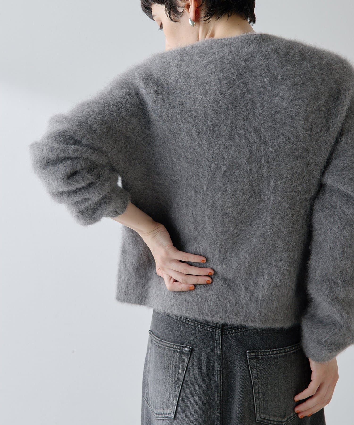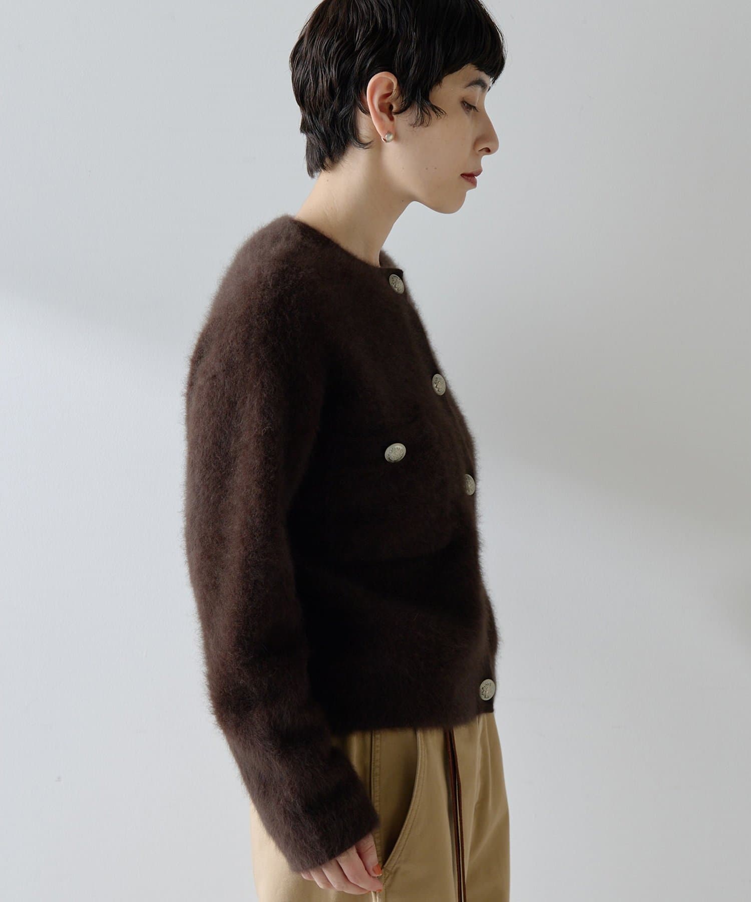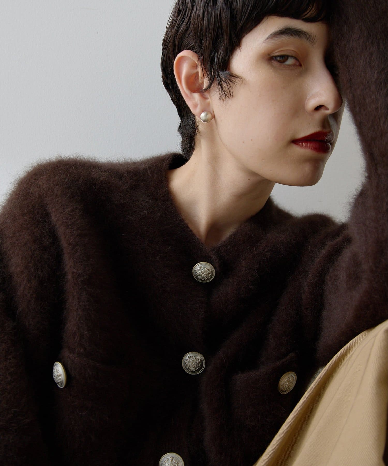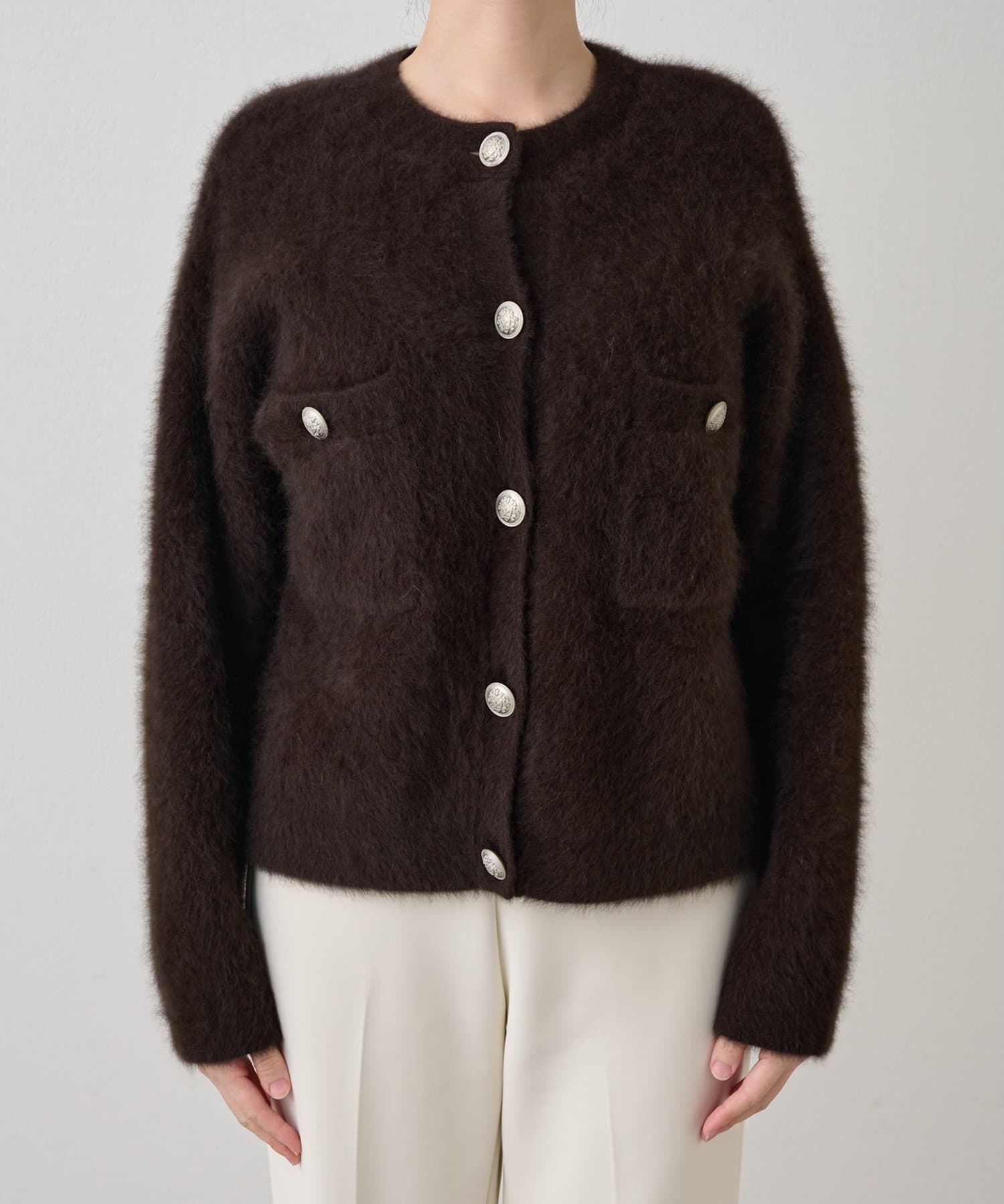 ■毛足感のあるふんわりとした風合いが魅力のニットカーディガン。