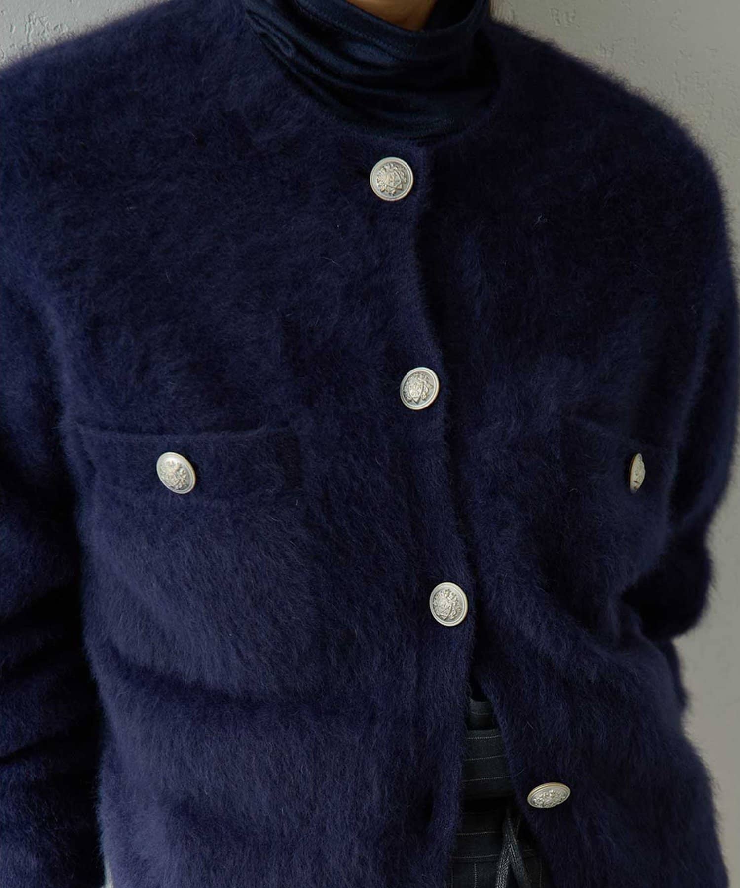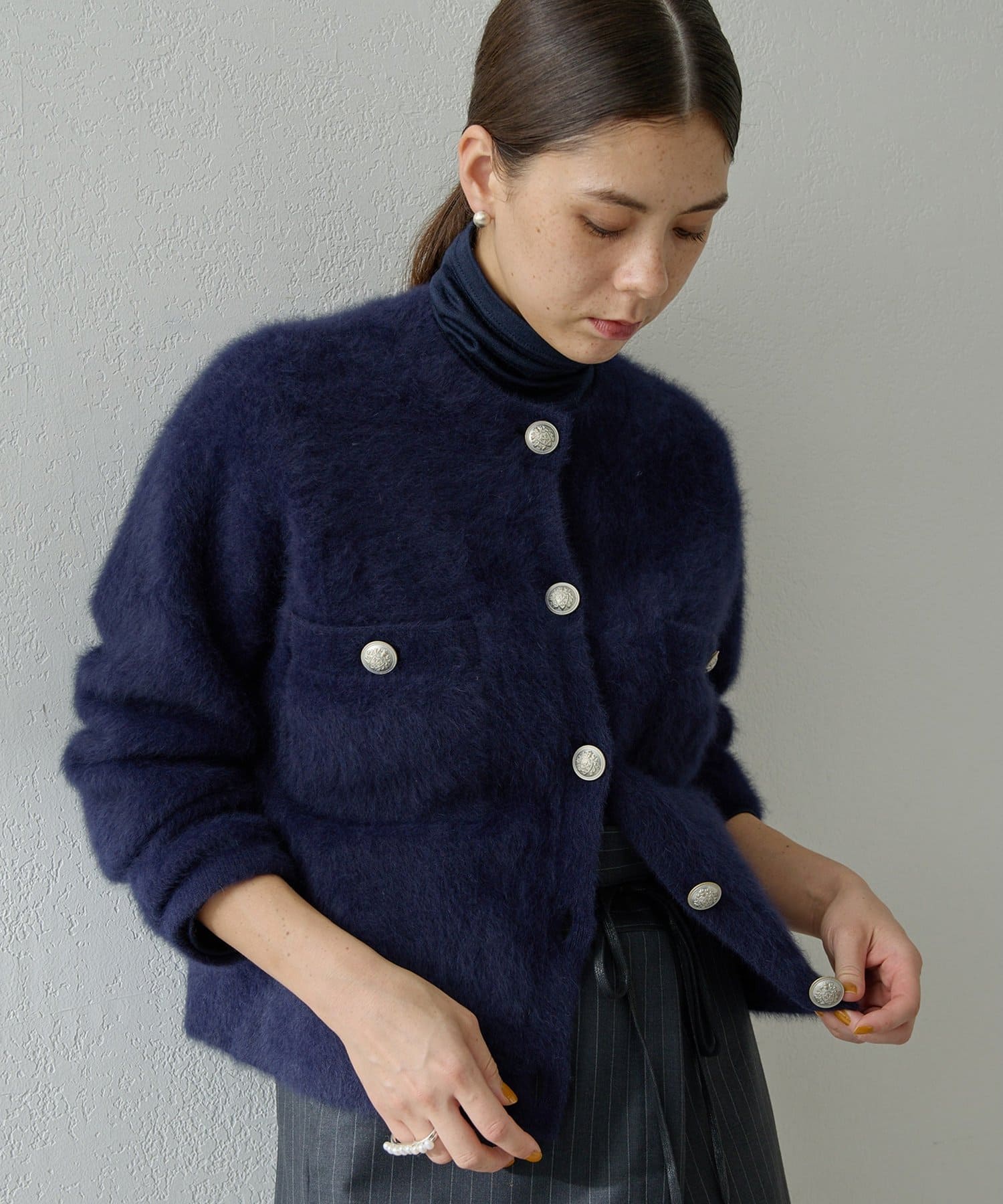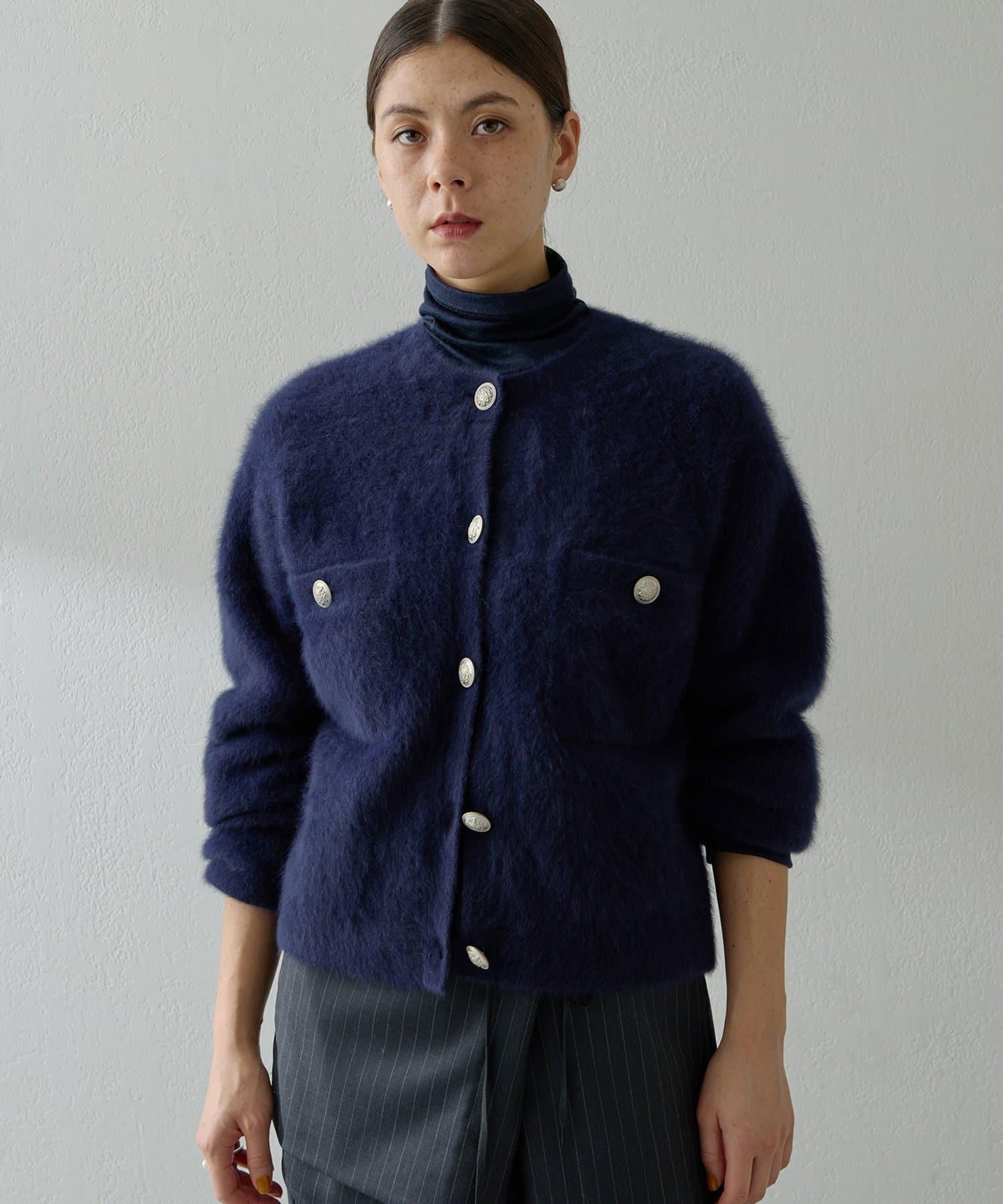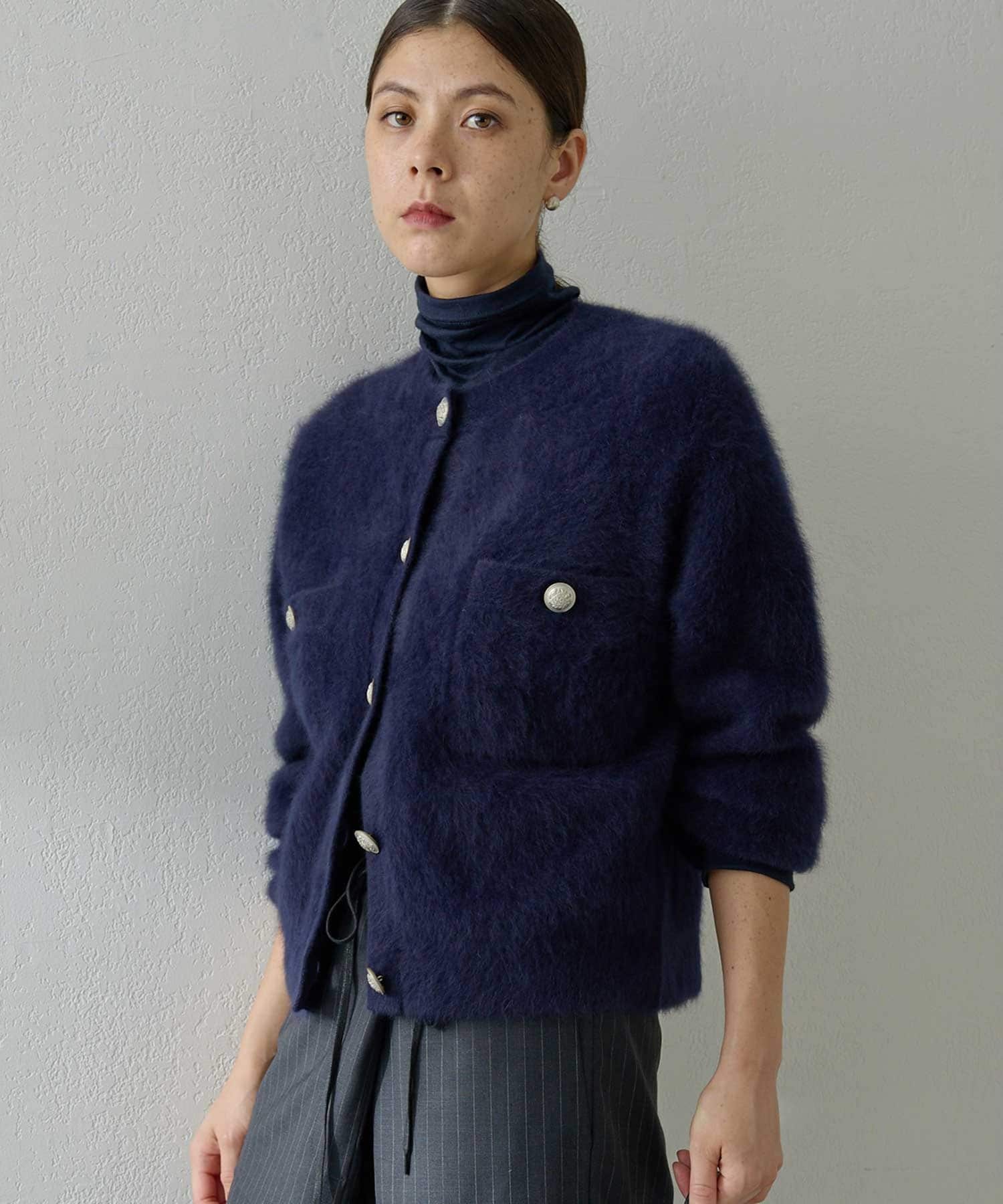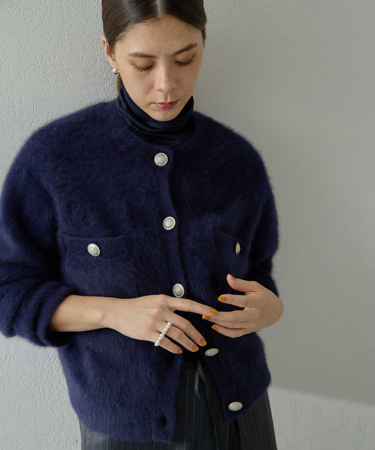 ■毛足感のあるふんわりとした風合いが魅力のニットカーディガン。