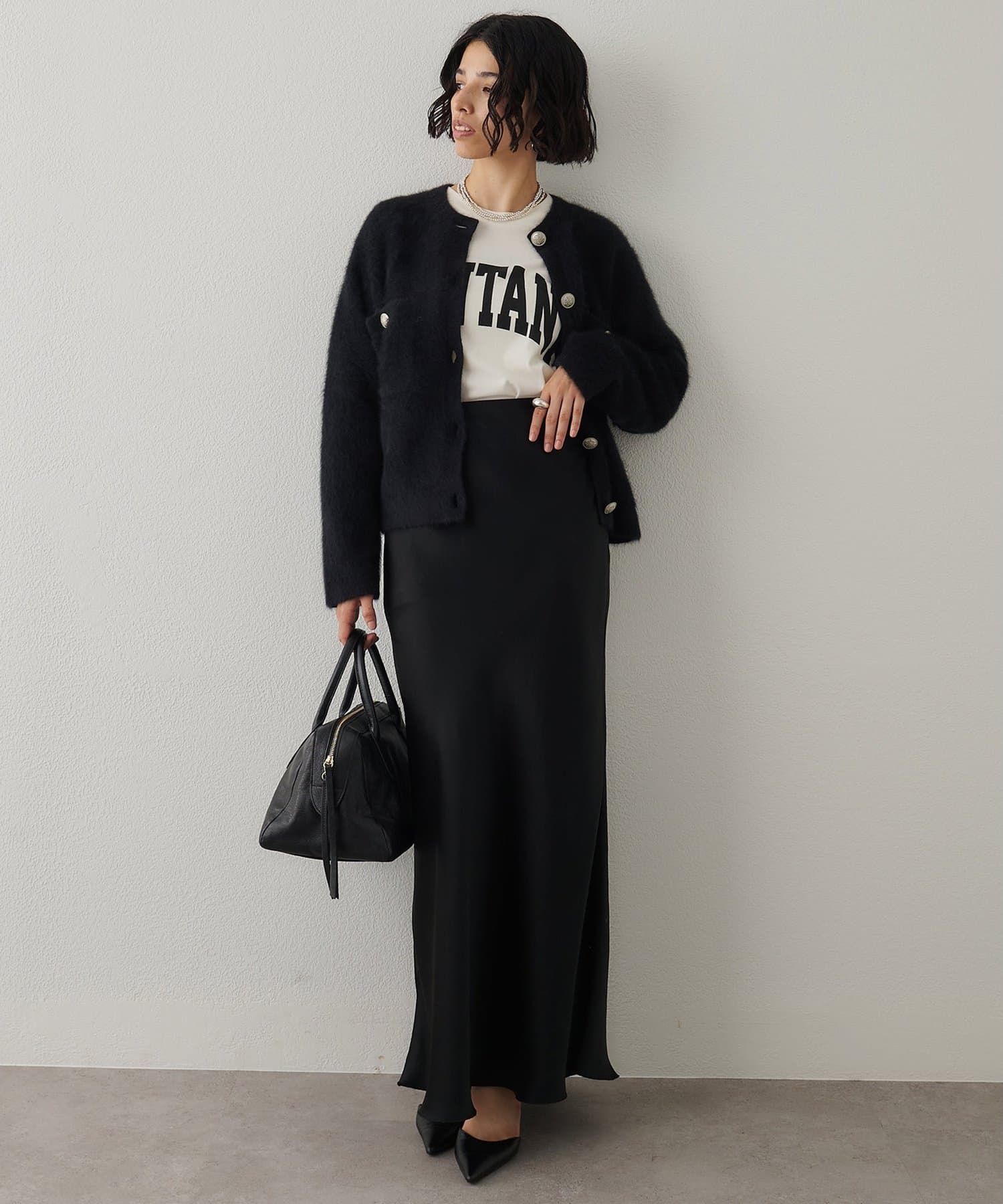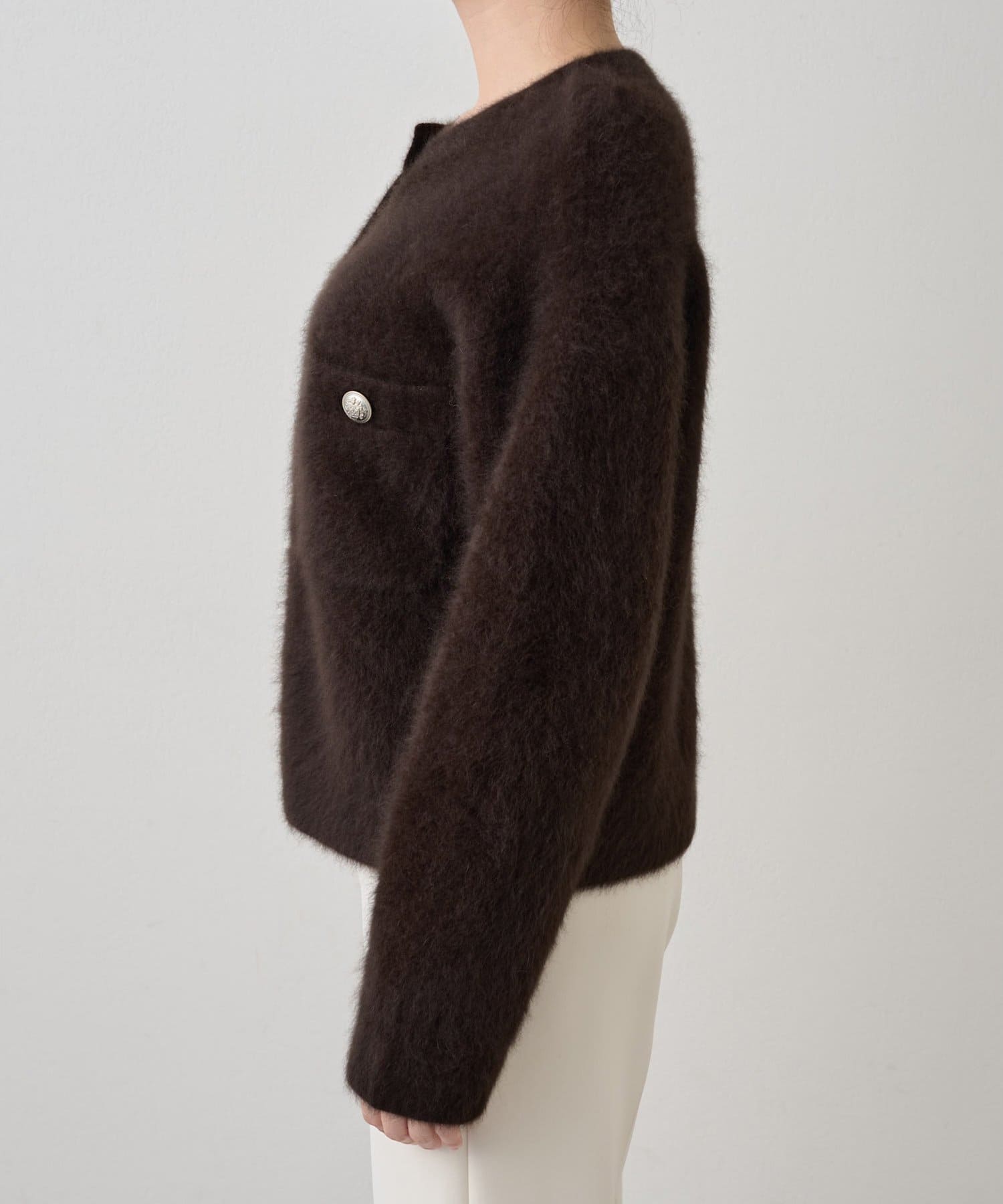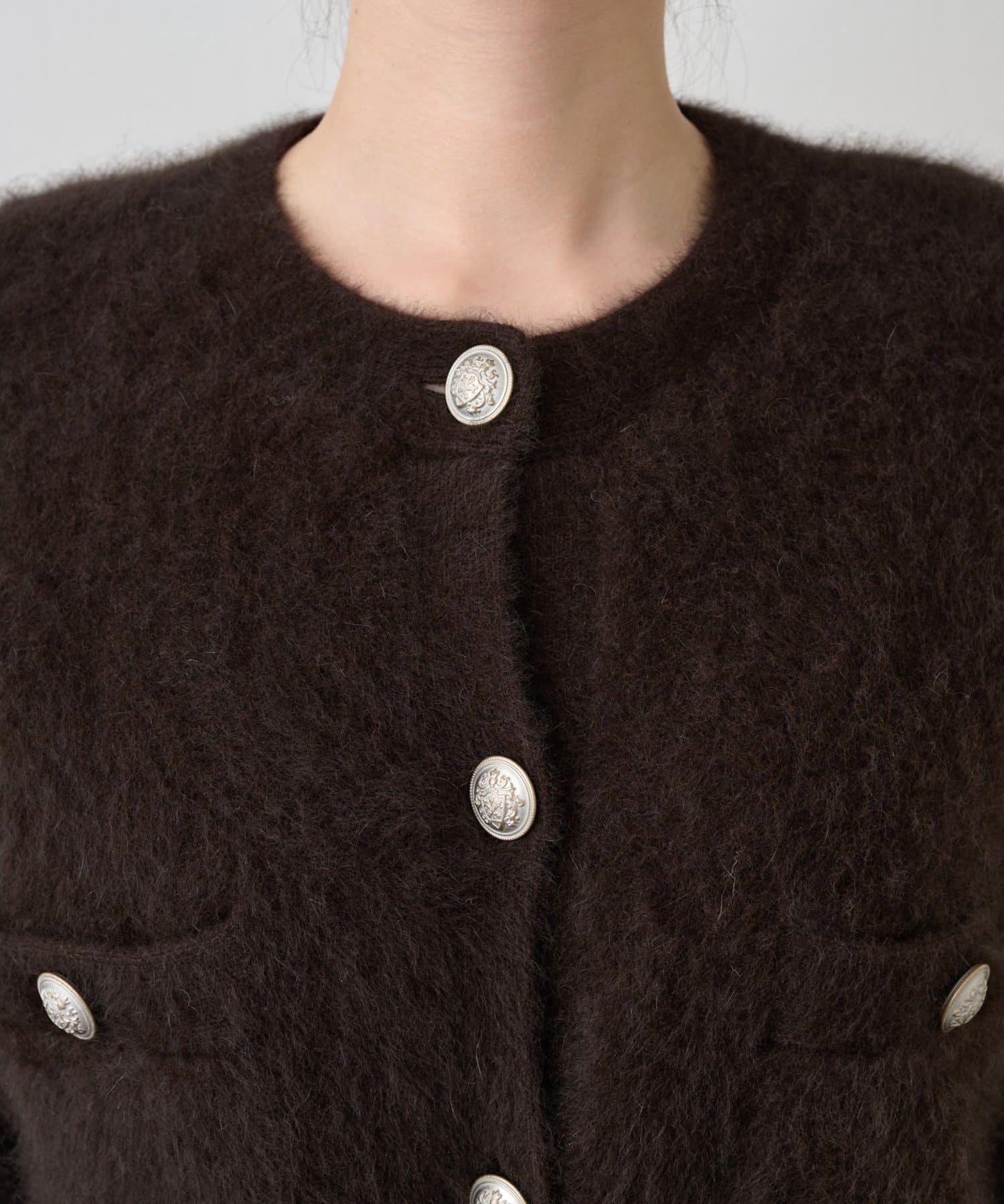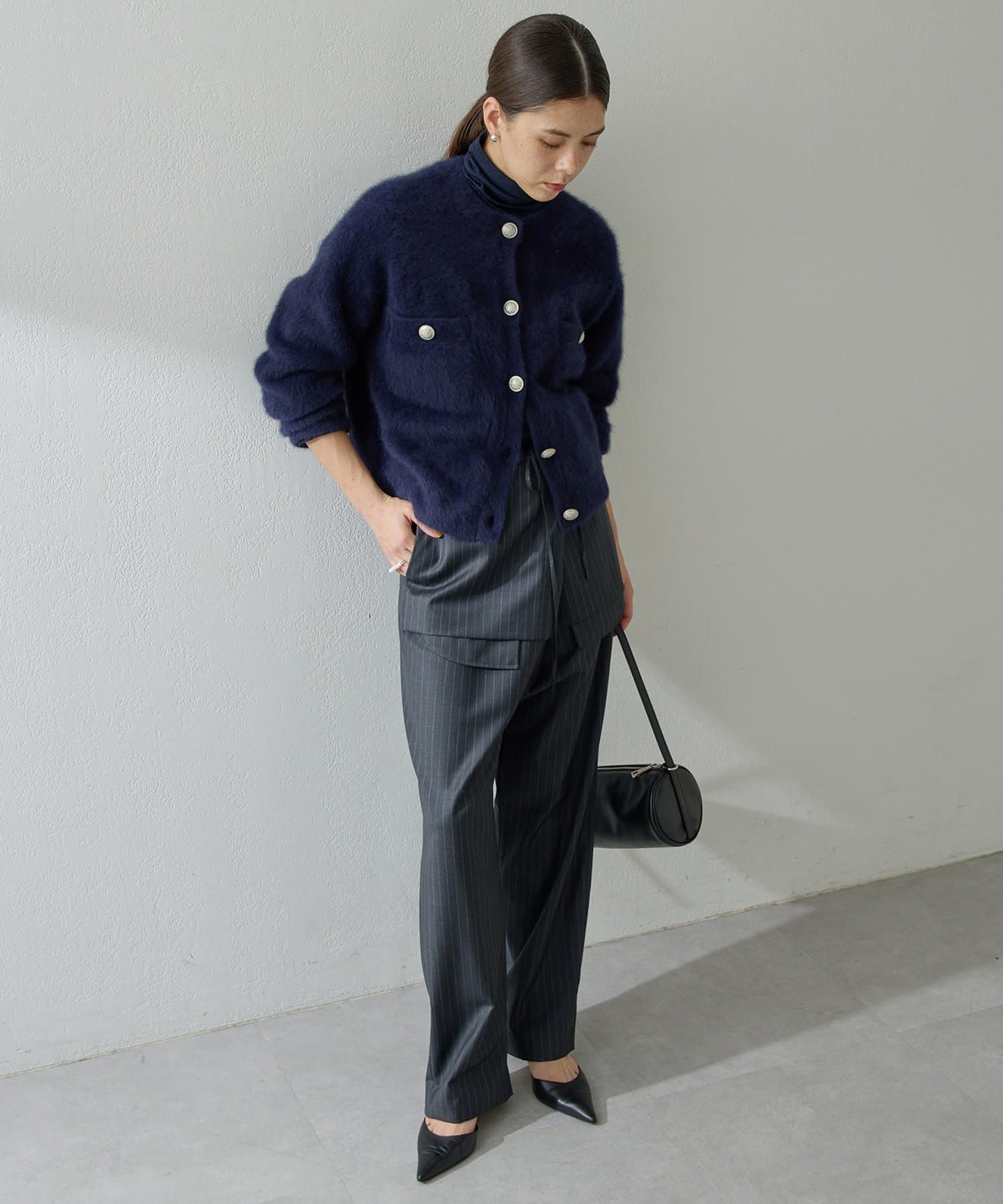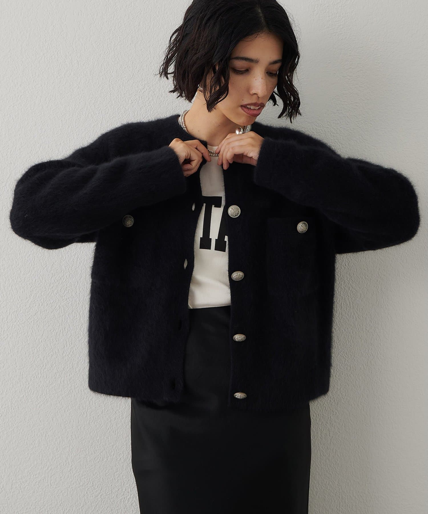 ■毛足感のあるふんわりとした風合いが魅力のニットカーディガン。