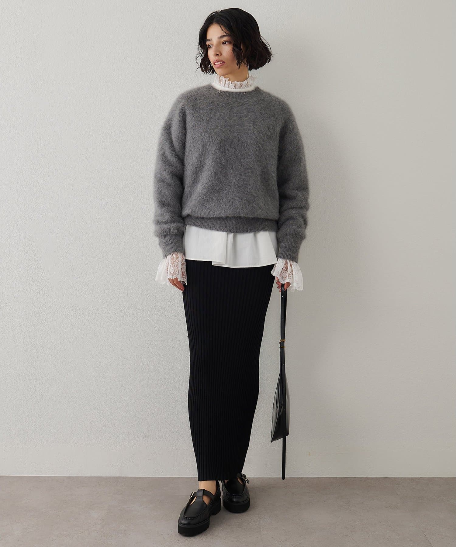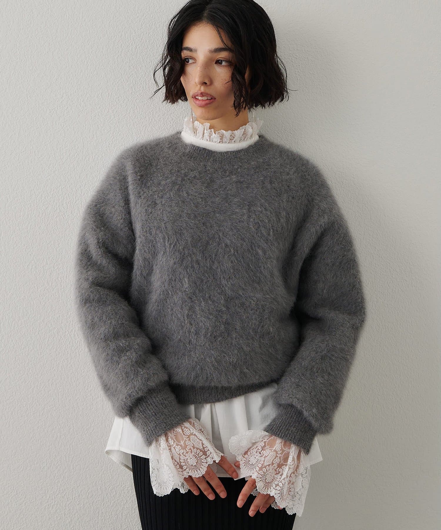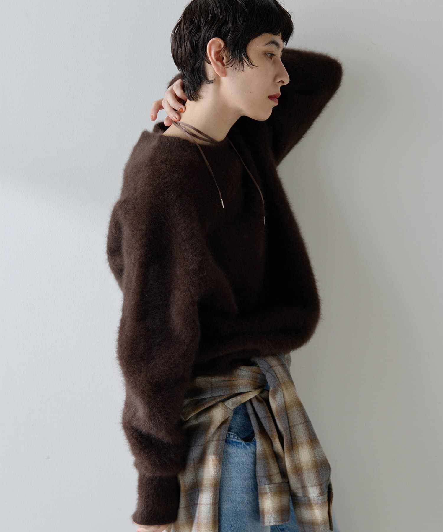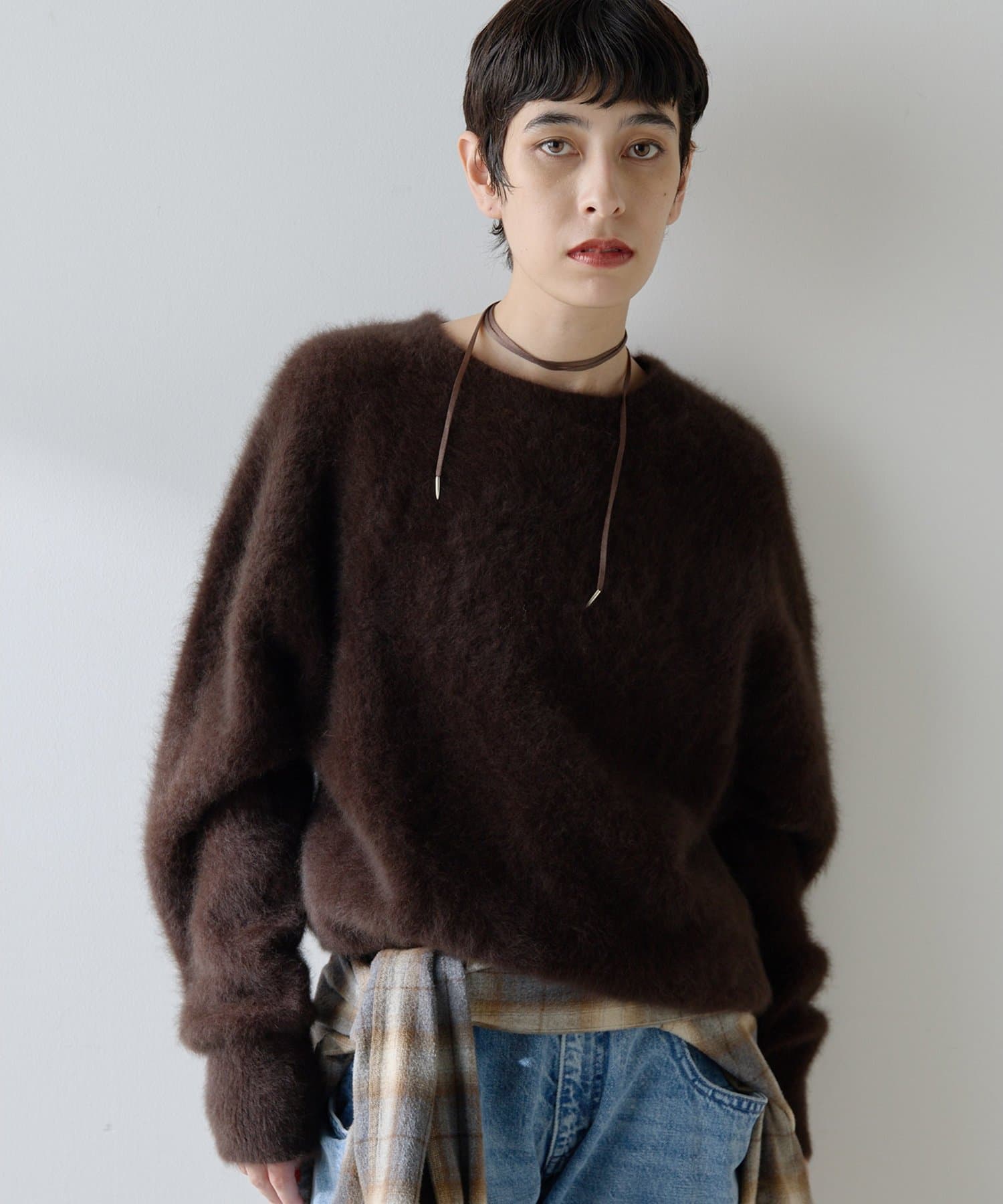 ■シャギーのボリューム感がありつつも、コンパクトなクルーネックですっきりとした印象に。