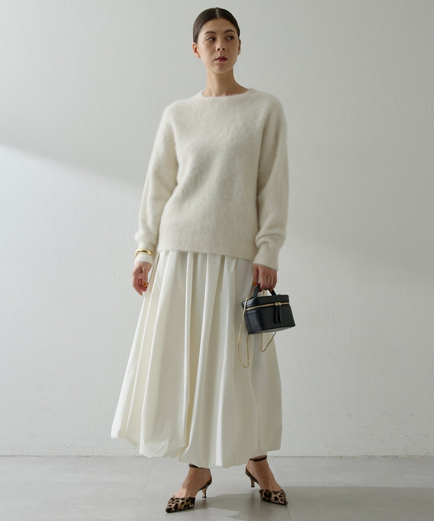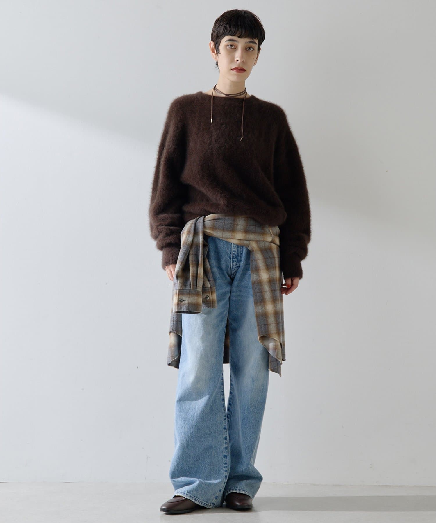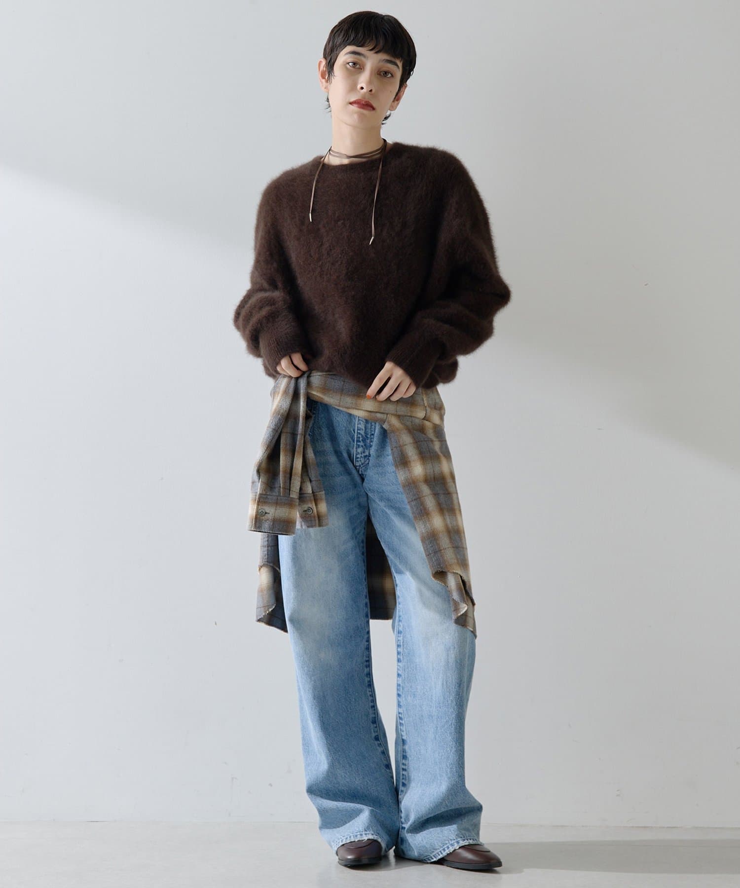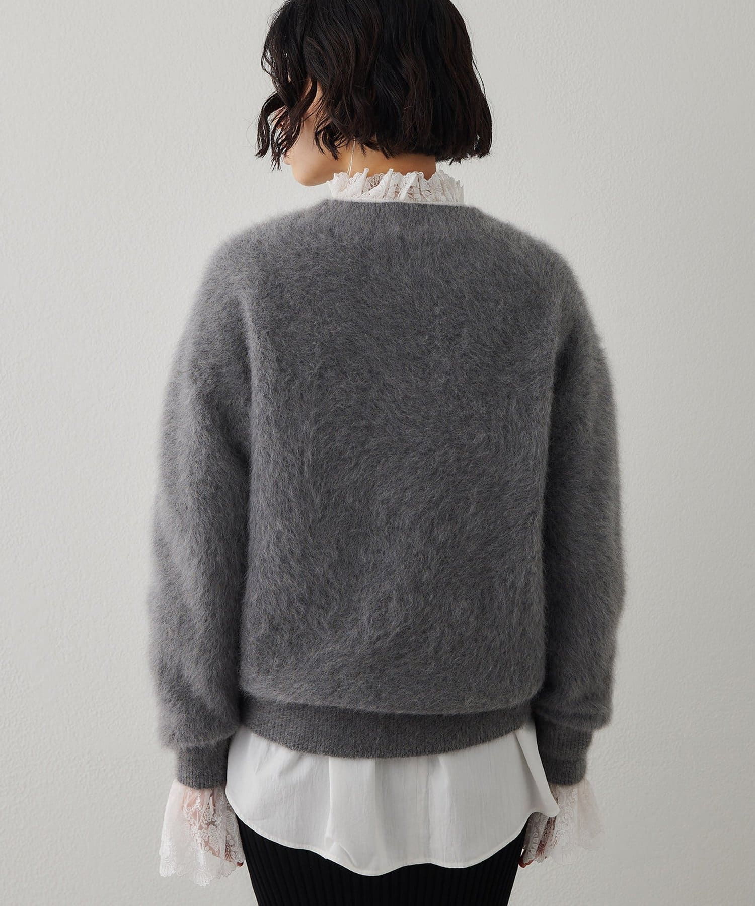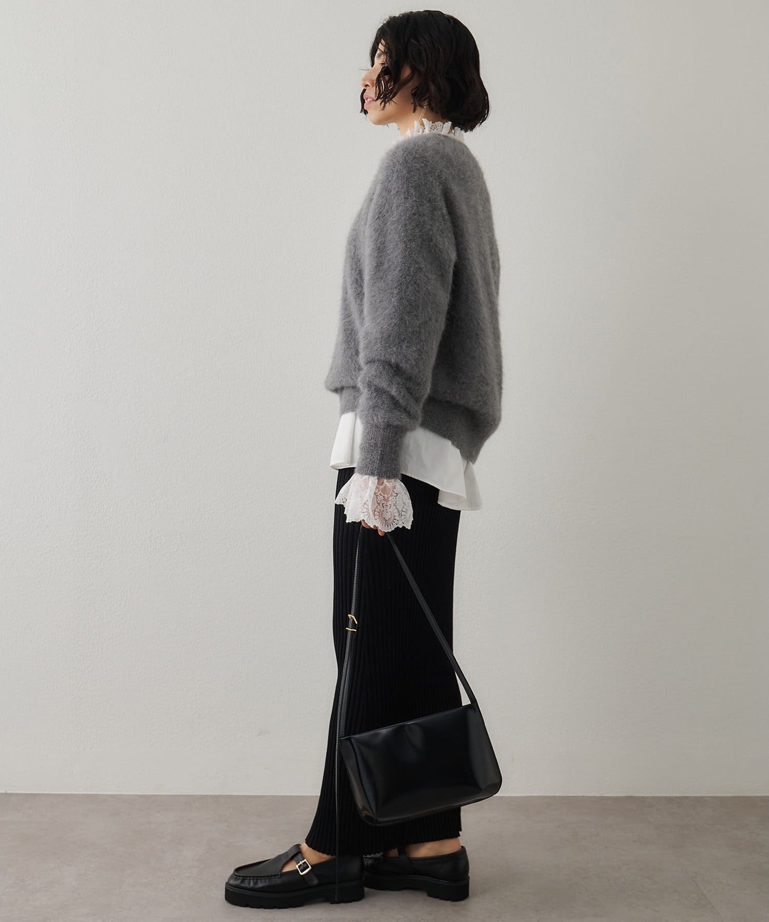 ■シャギーのボリューム感がありつつも、コンパクトなクルーネックですっきりとした印象に。