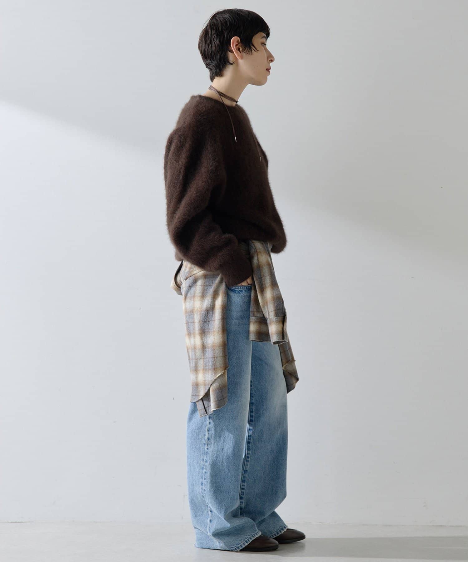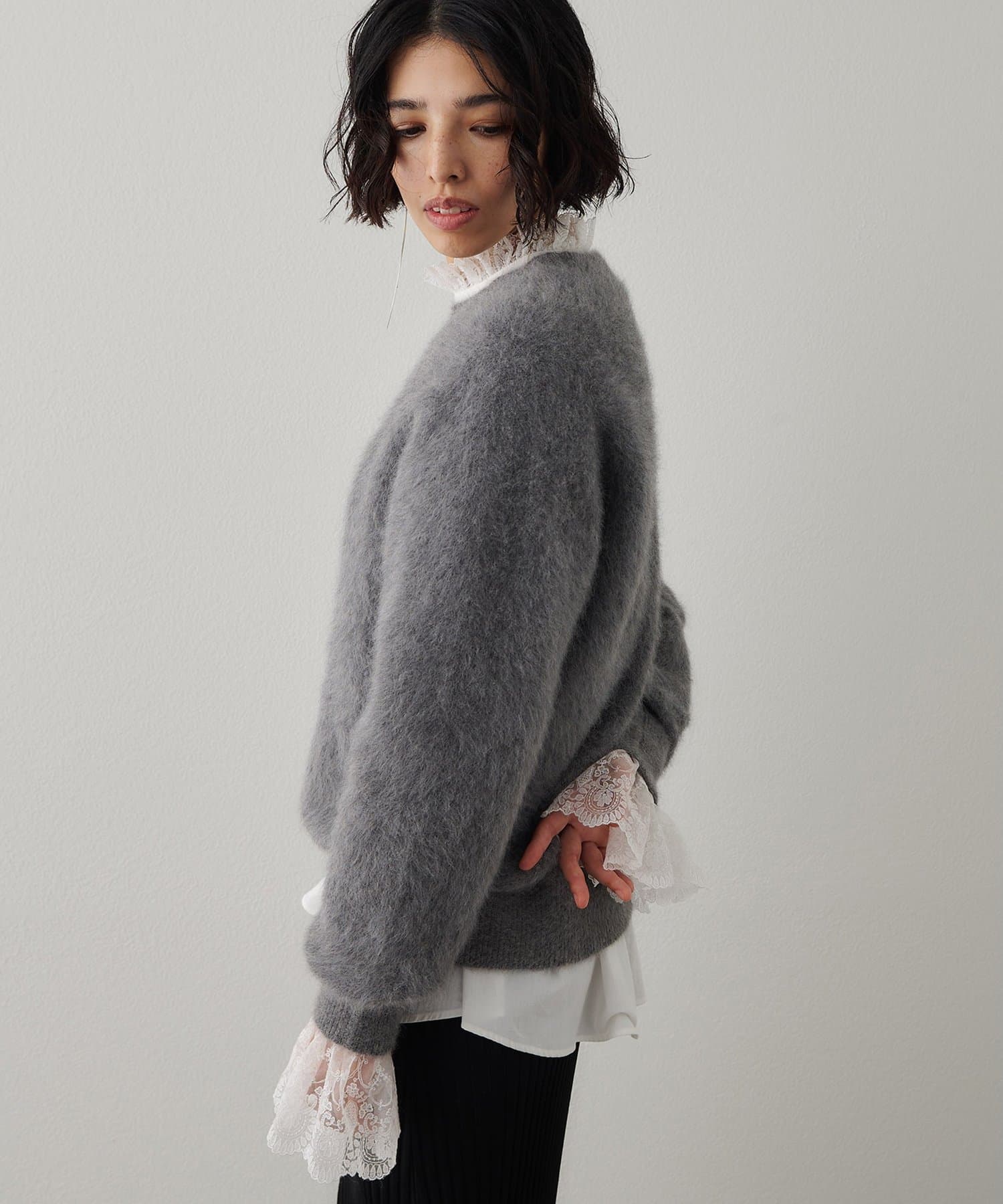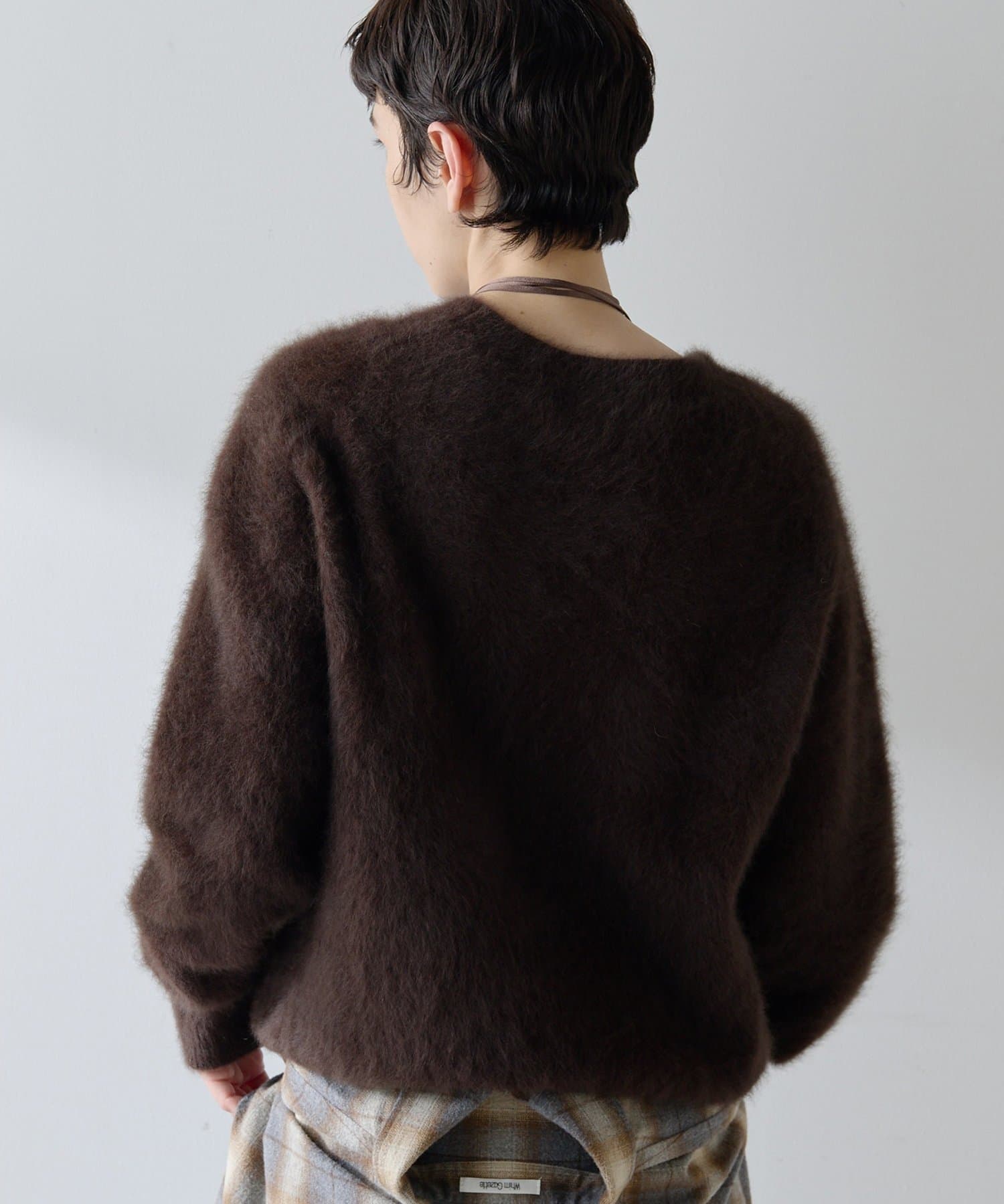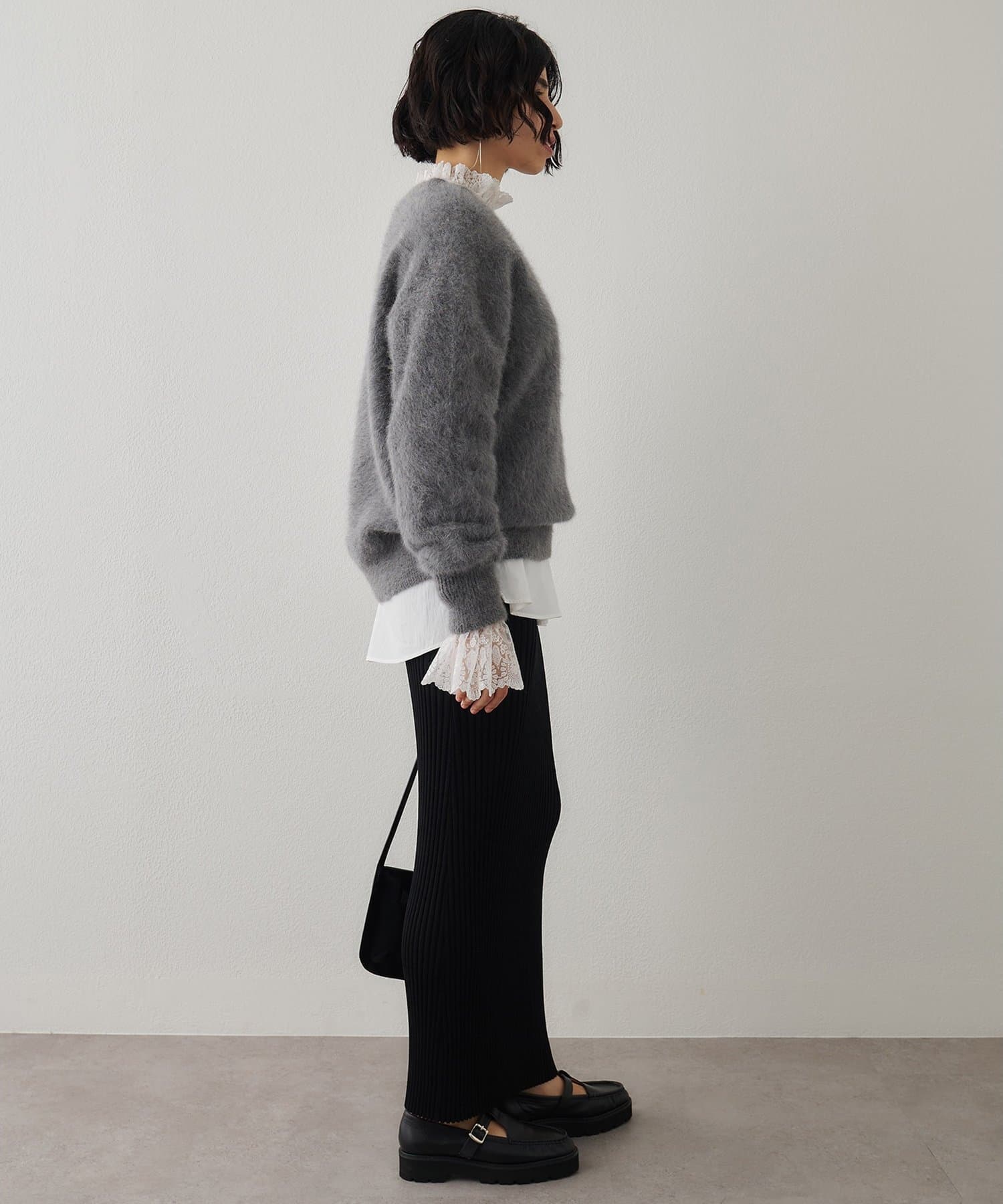 ■シャギーのボリューム感がありつつも、コンパクトなクルーネックですっきりとした印象に。
