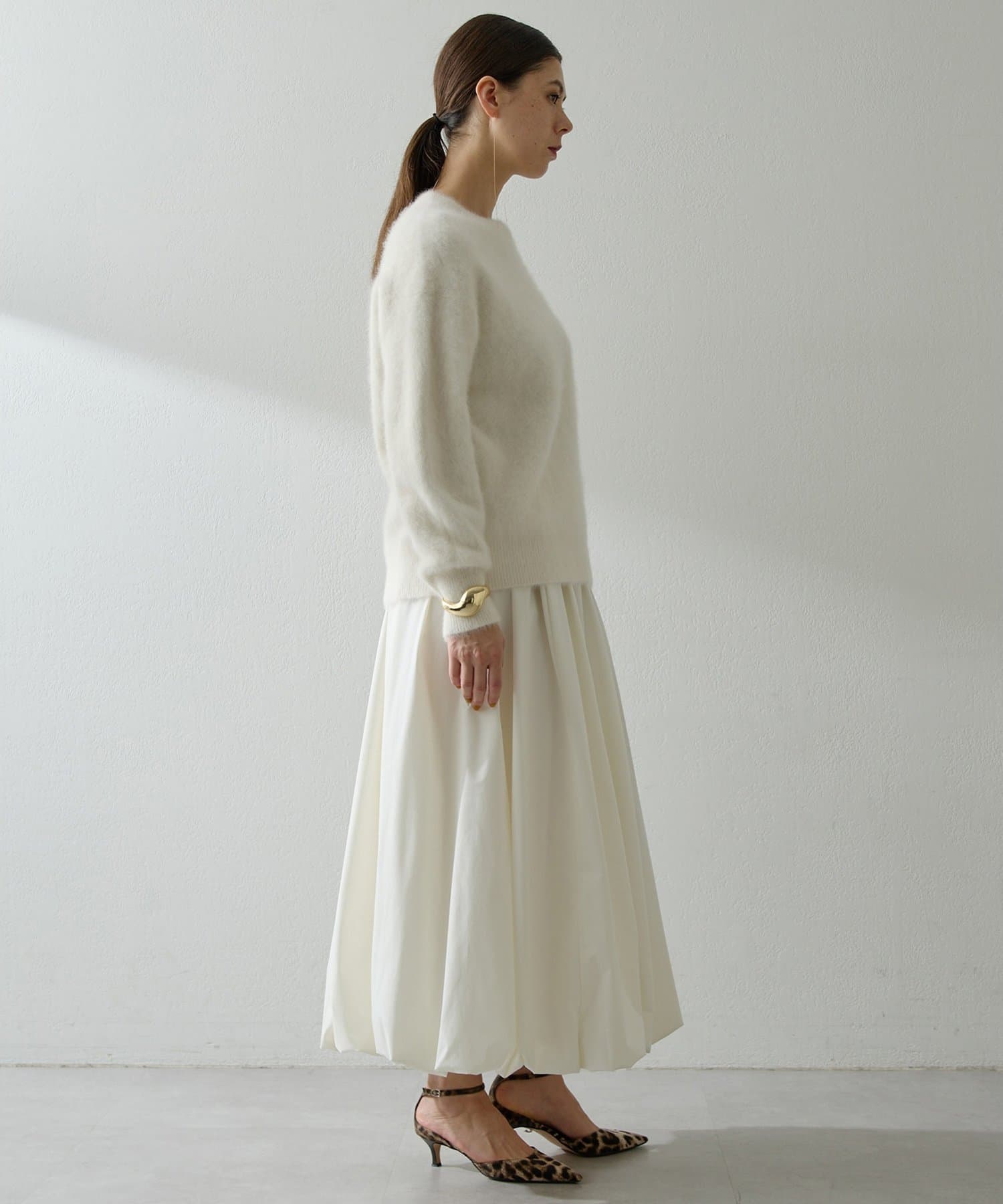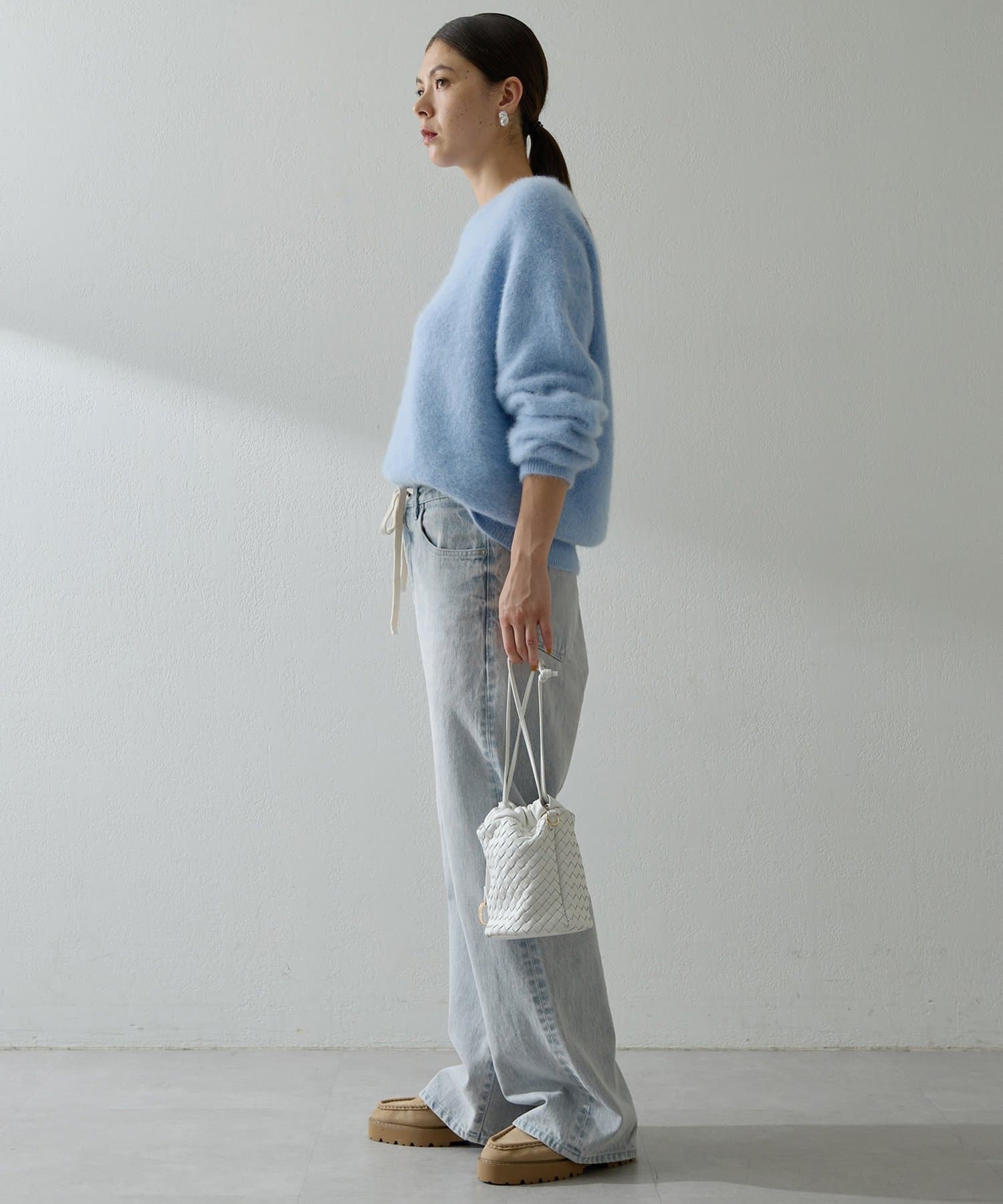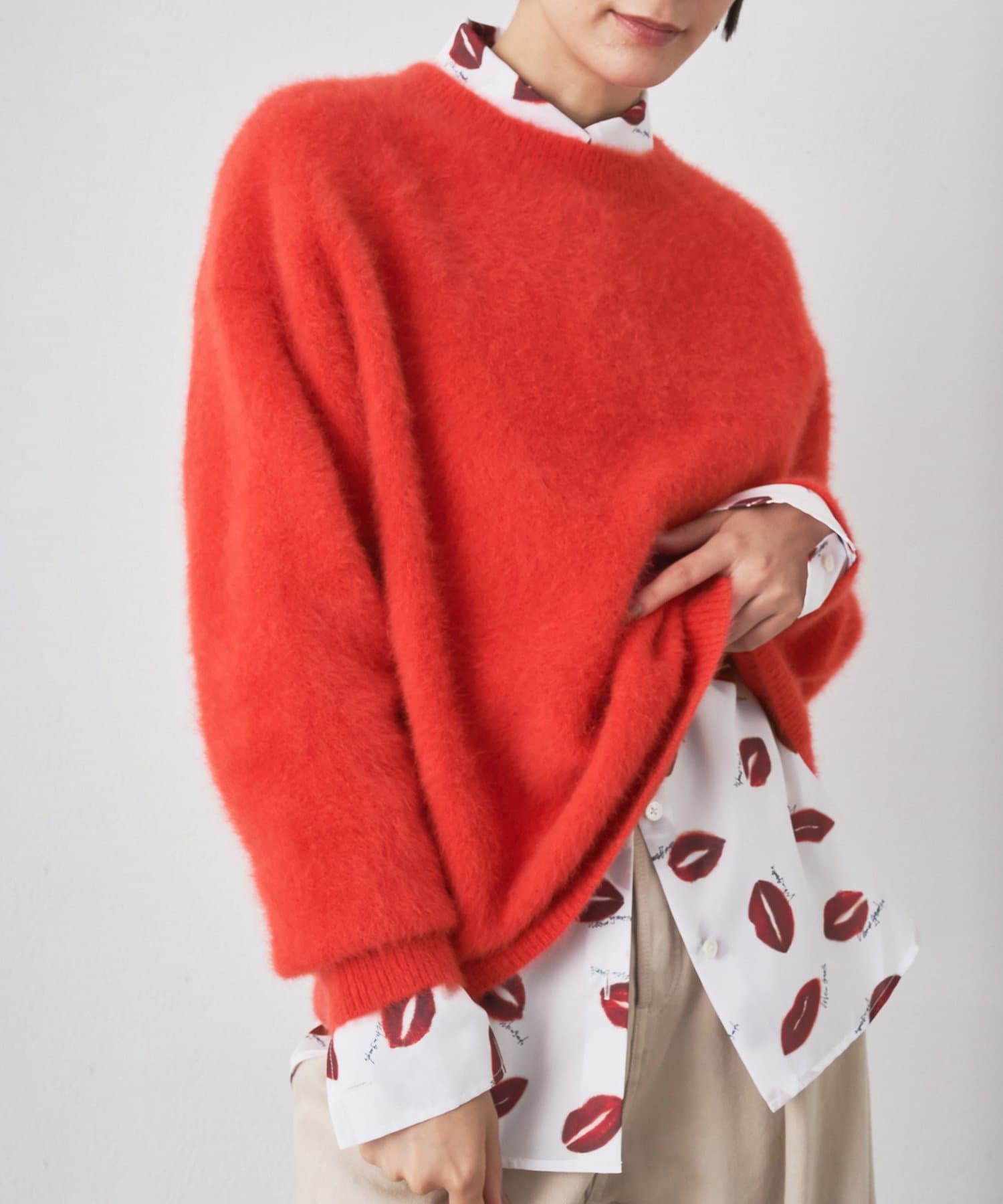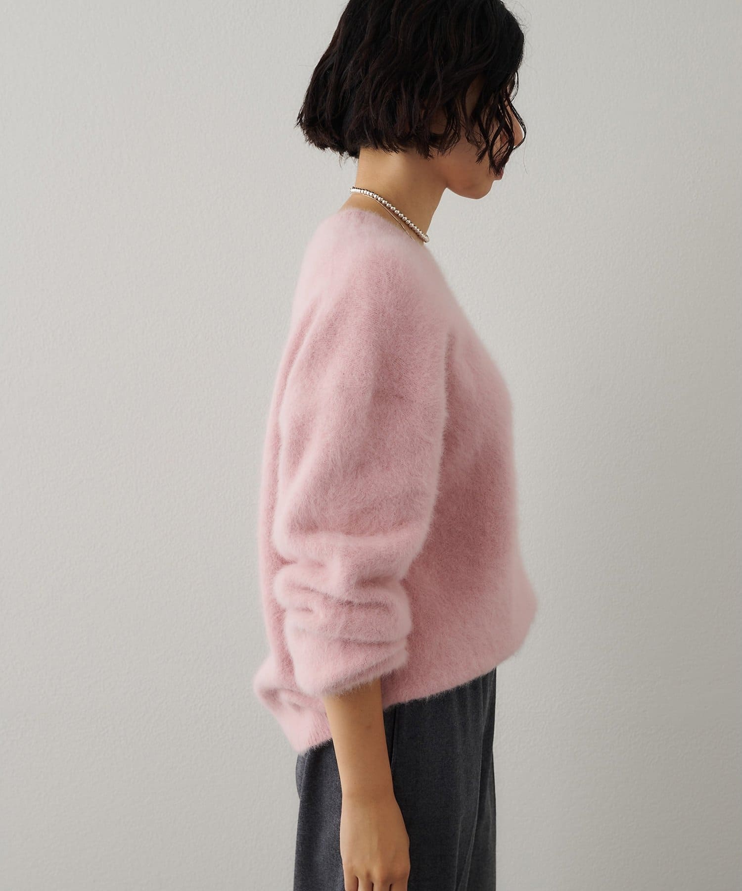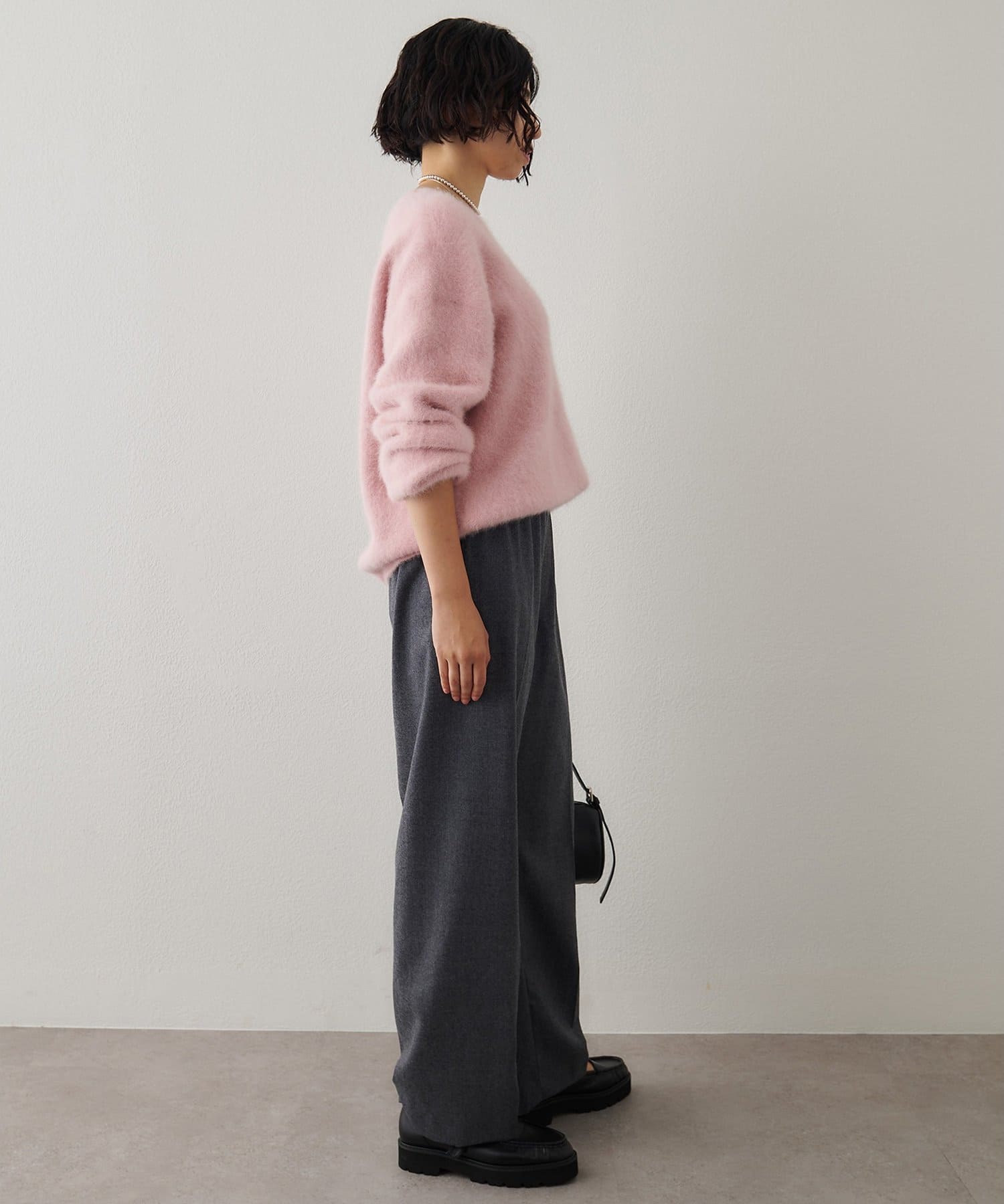 ■シャギーのボリューム感がありつつも、コンパクトなクルーネックですっきりとした印象に。