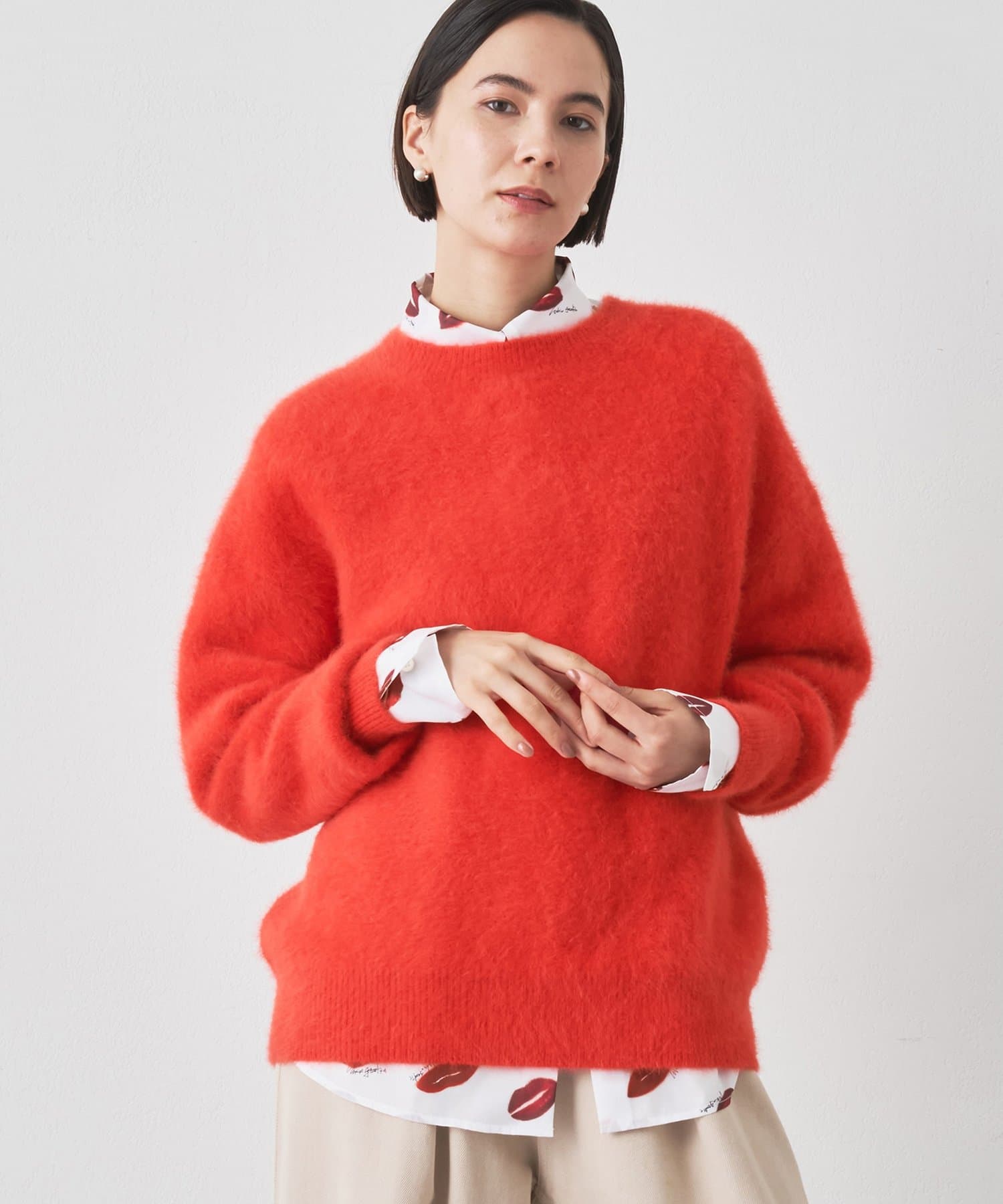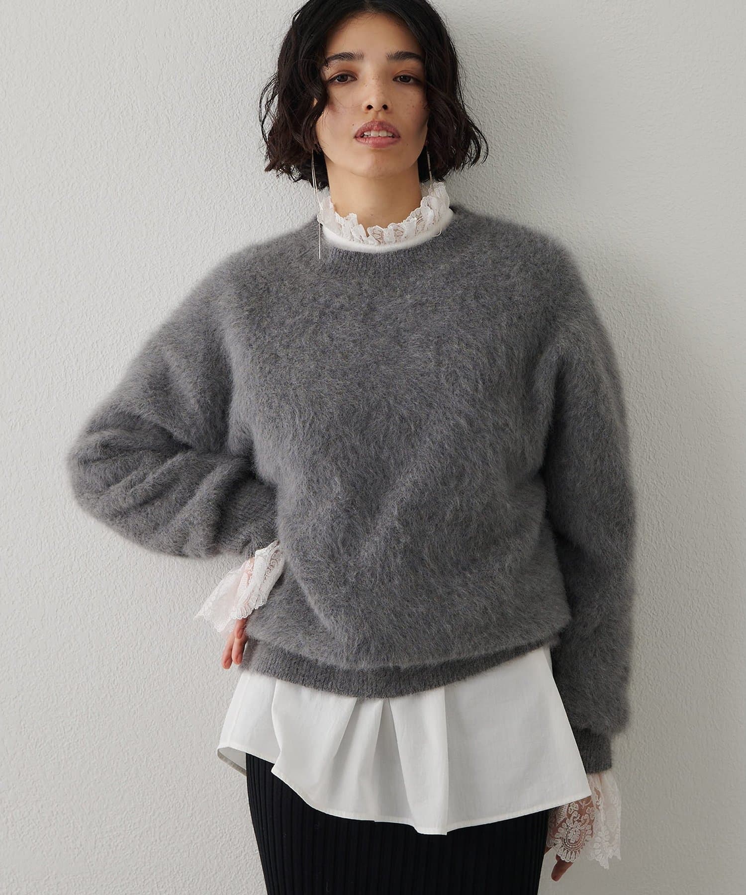 ■毛足感のあるふんわりとした風合いが魅力のクルーネックニット。