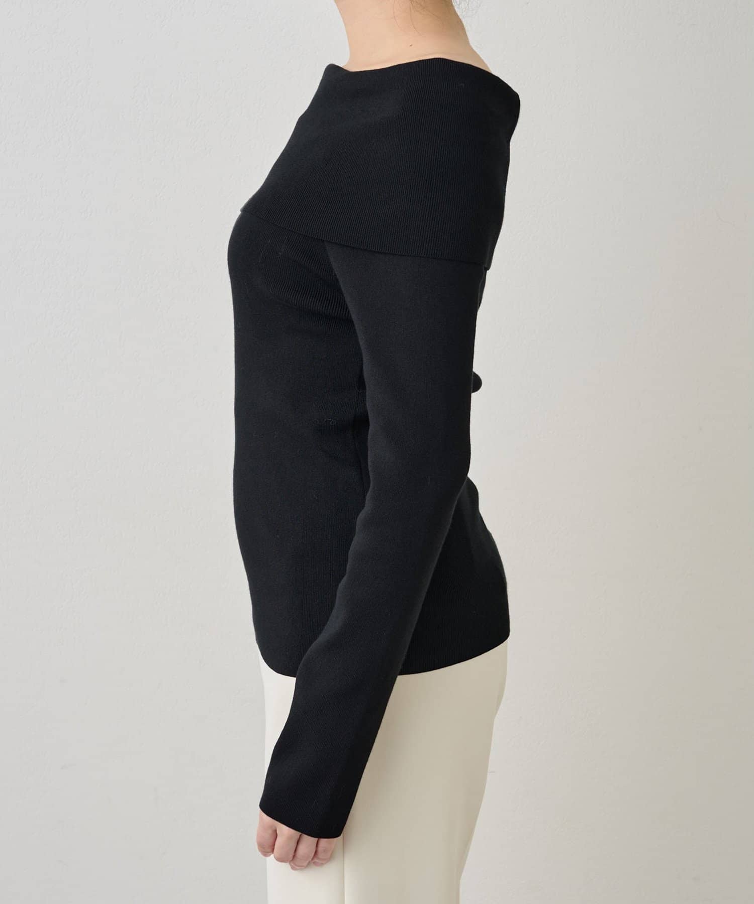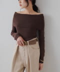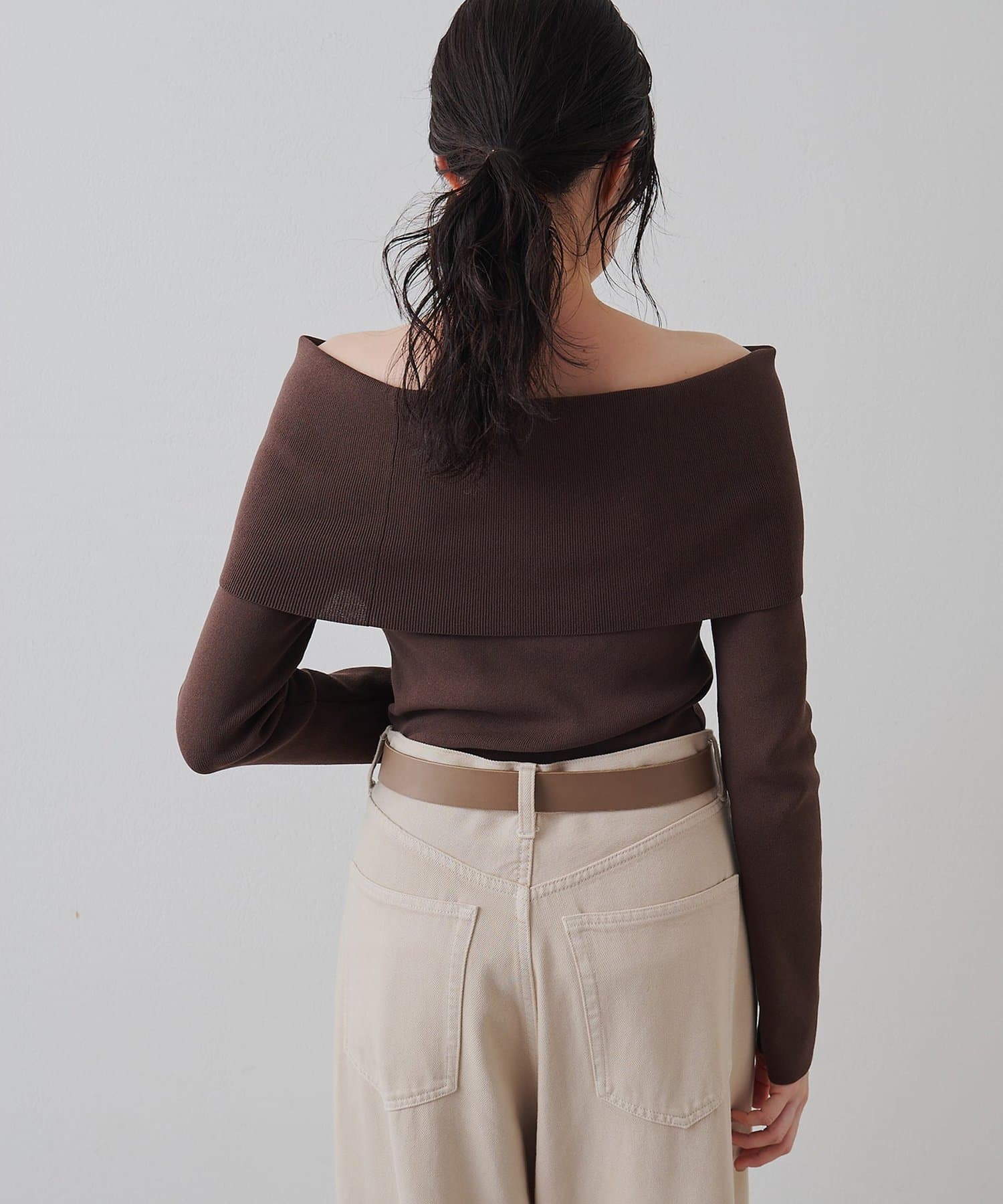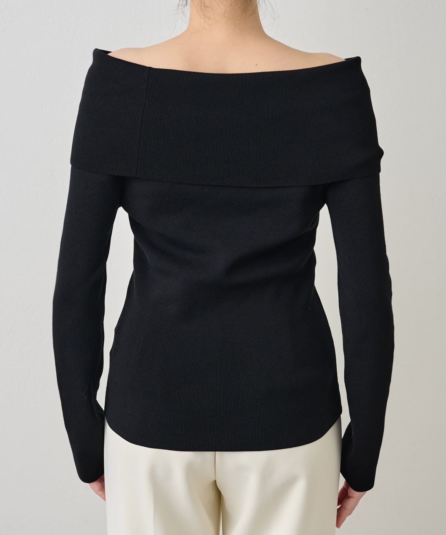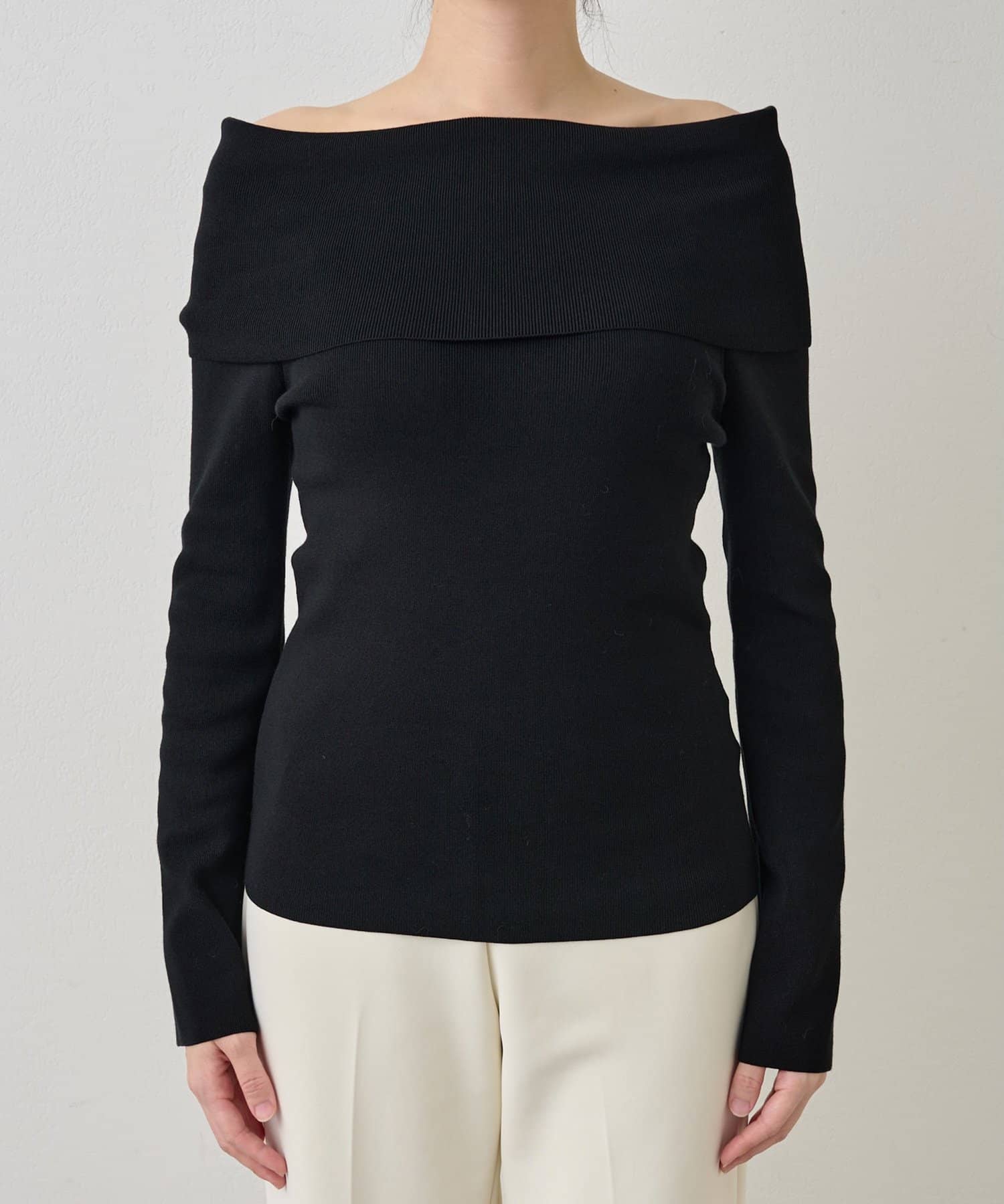 ■オフショルダーデザインがポイントの長袖ニットプルオーバー。