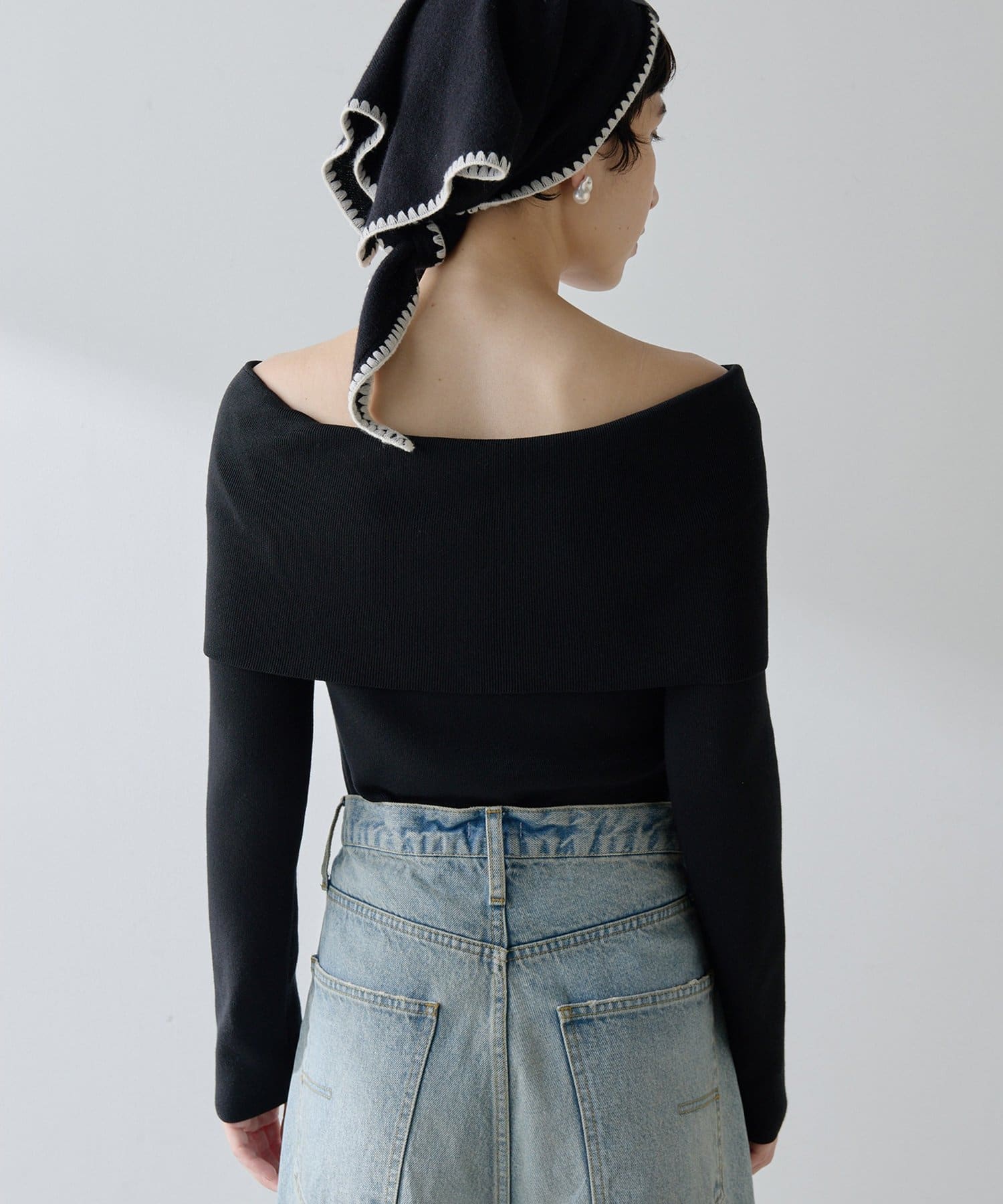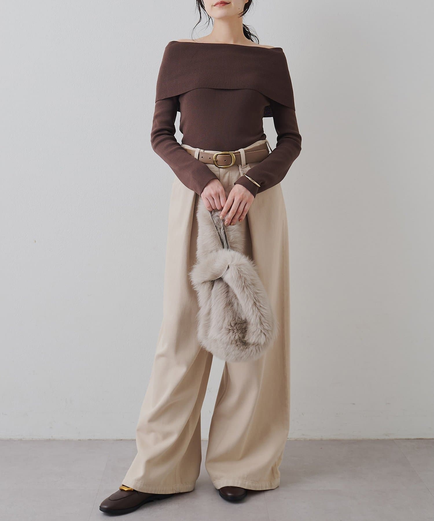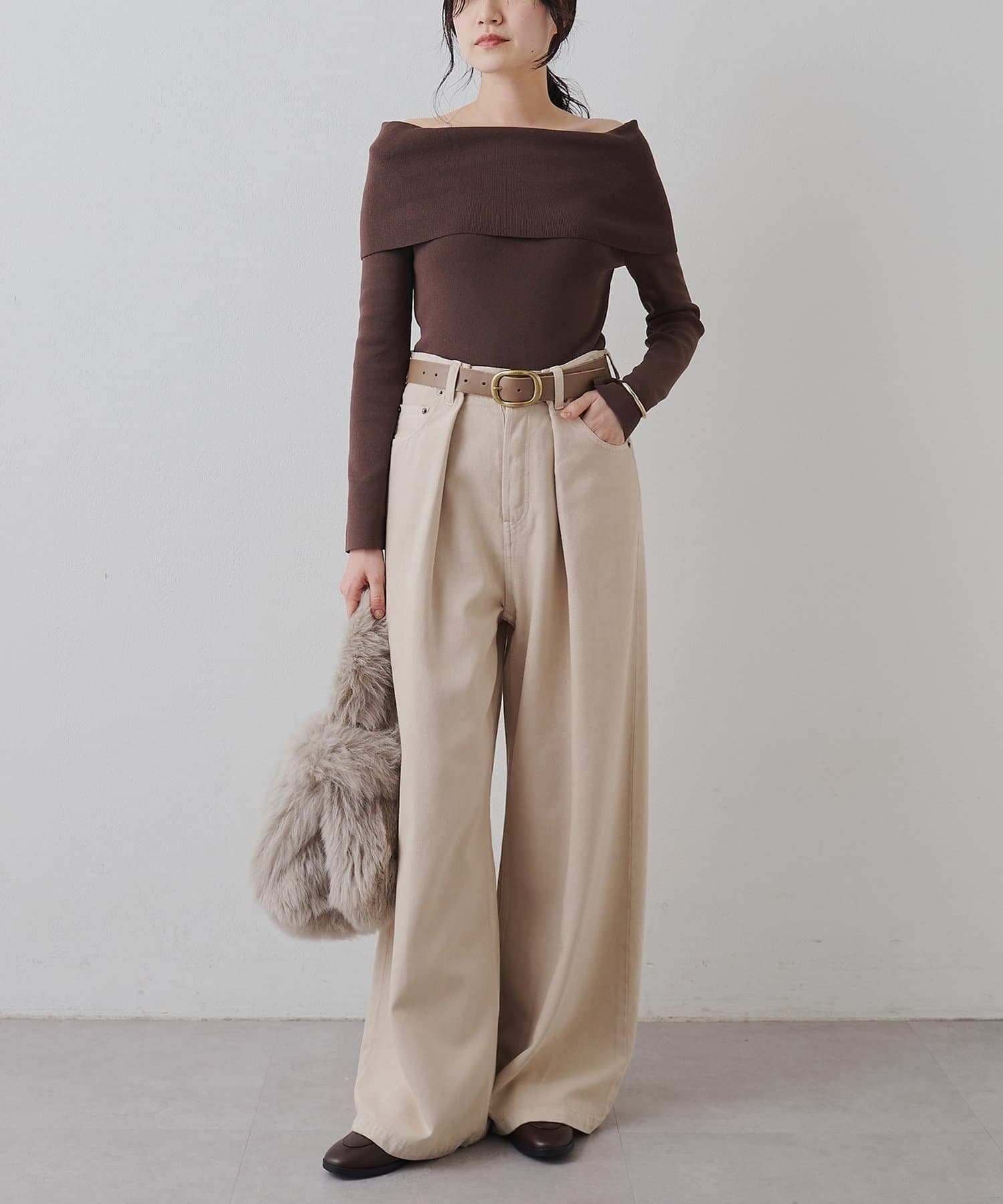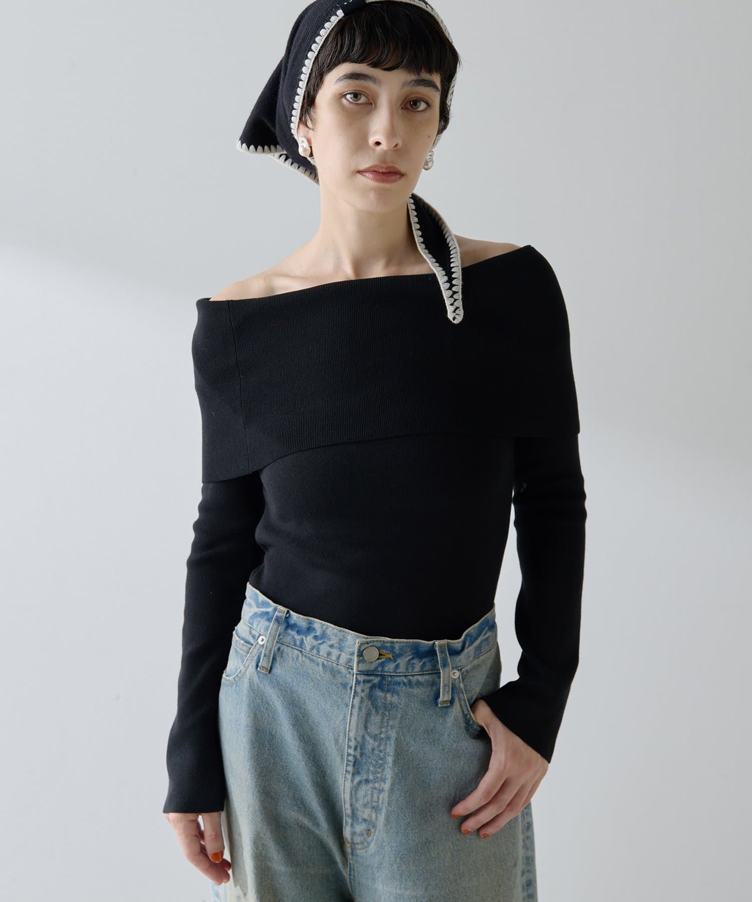 ■オフショルダーデザインがポイントの長袖ニットプルオーバー。
