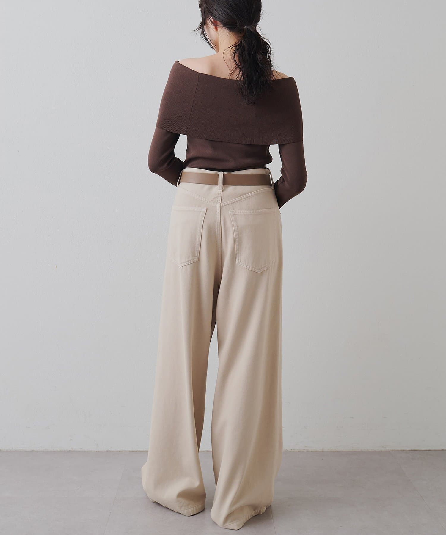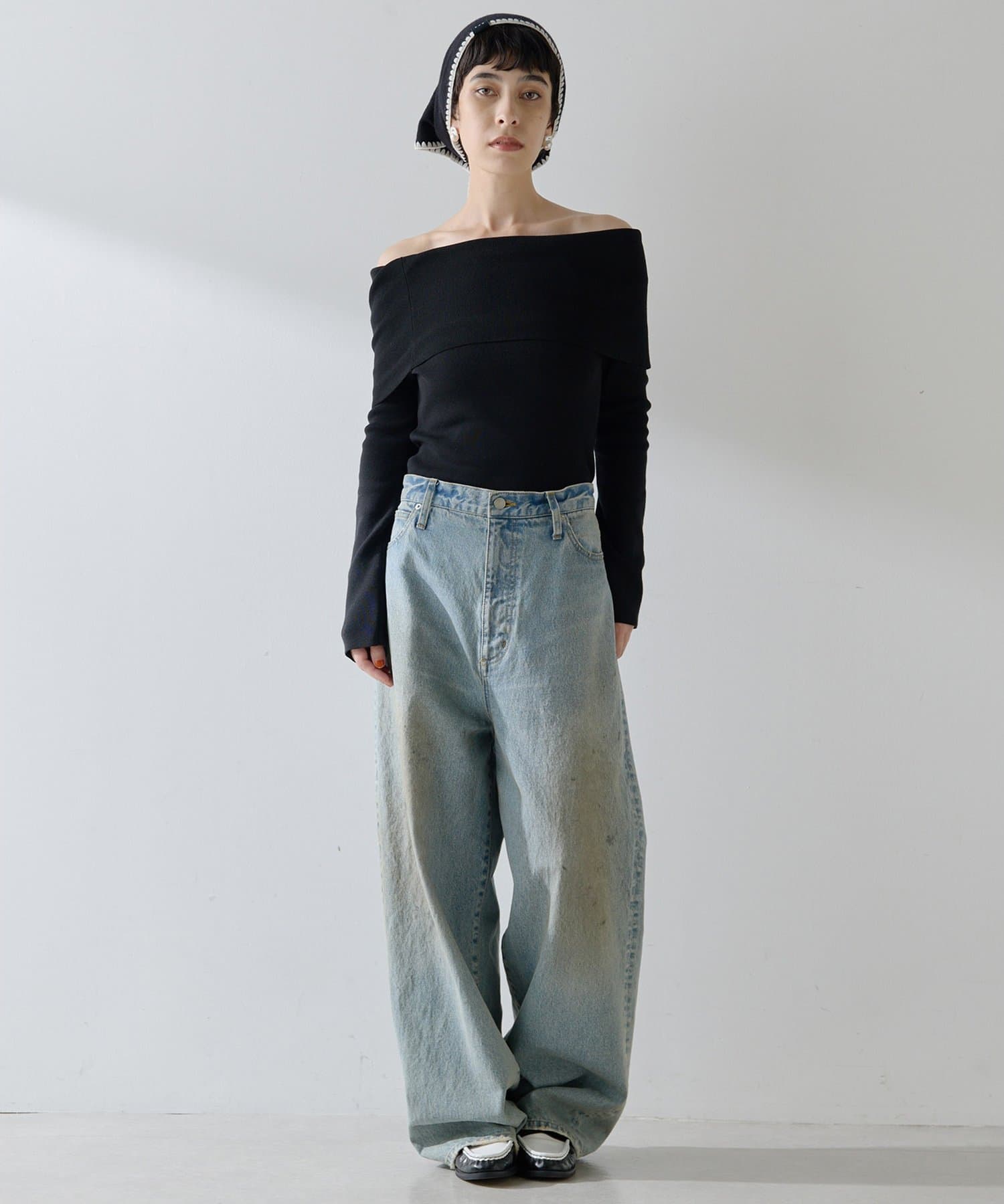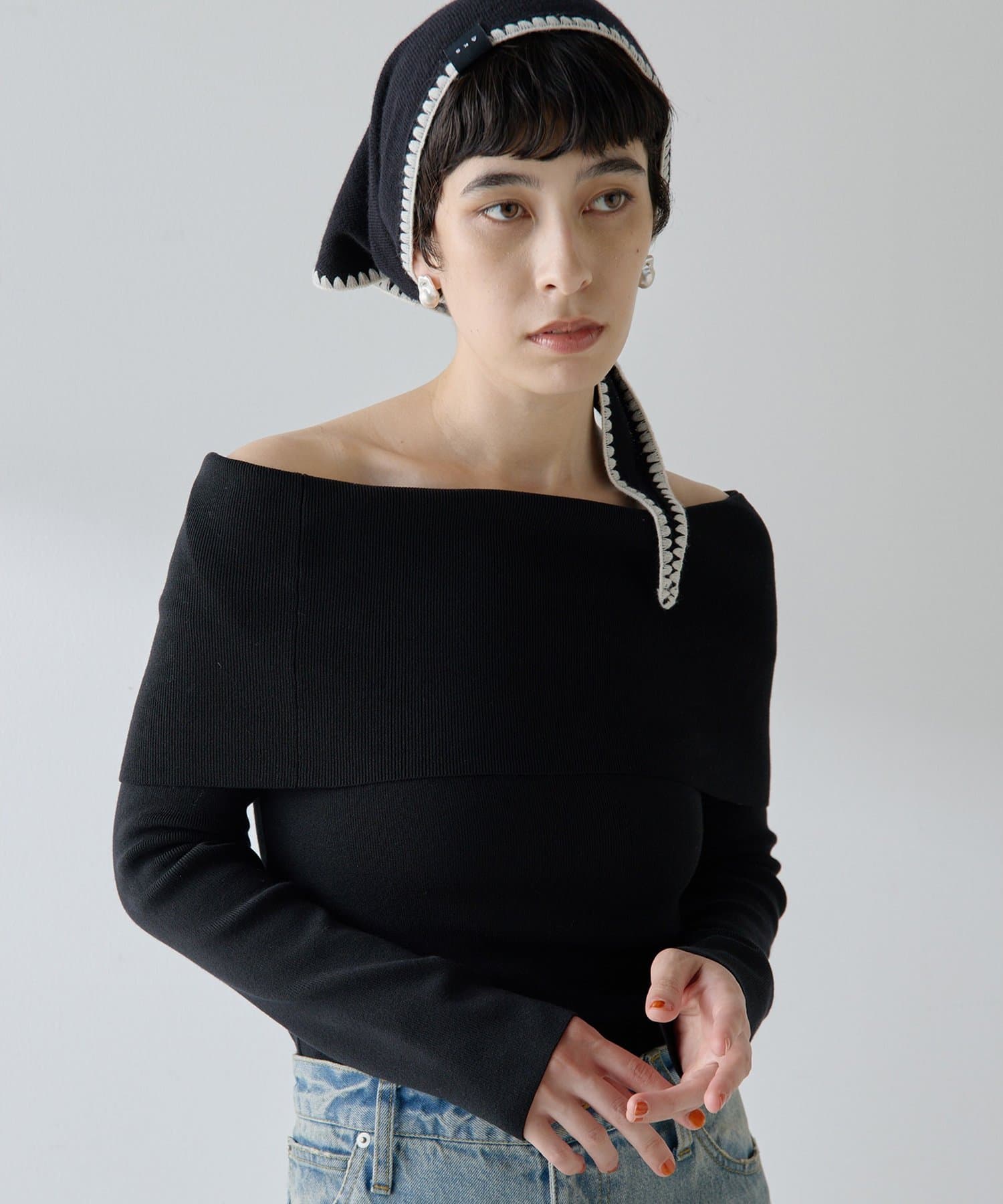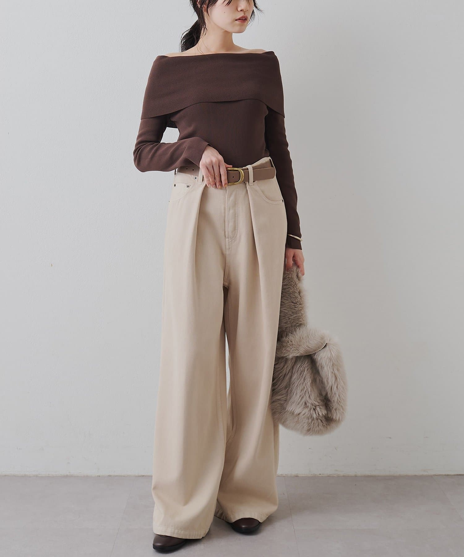 ■オフショルダーデザインがポイントの長袖ニットプルオーバー。