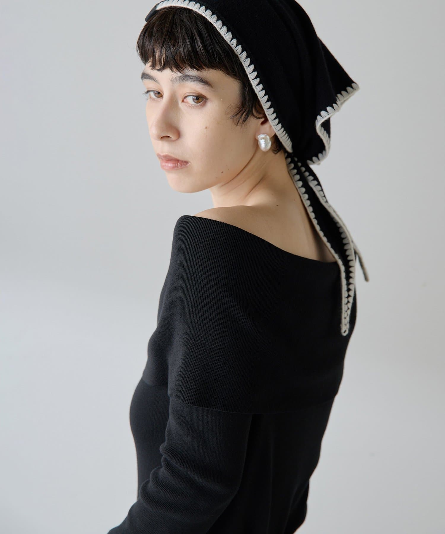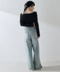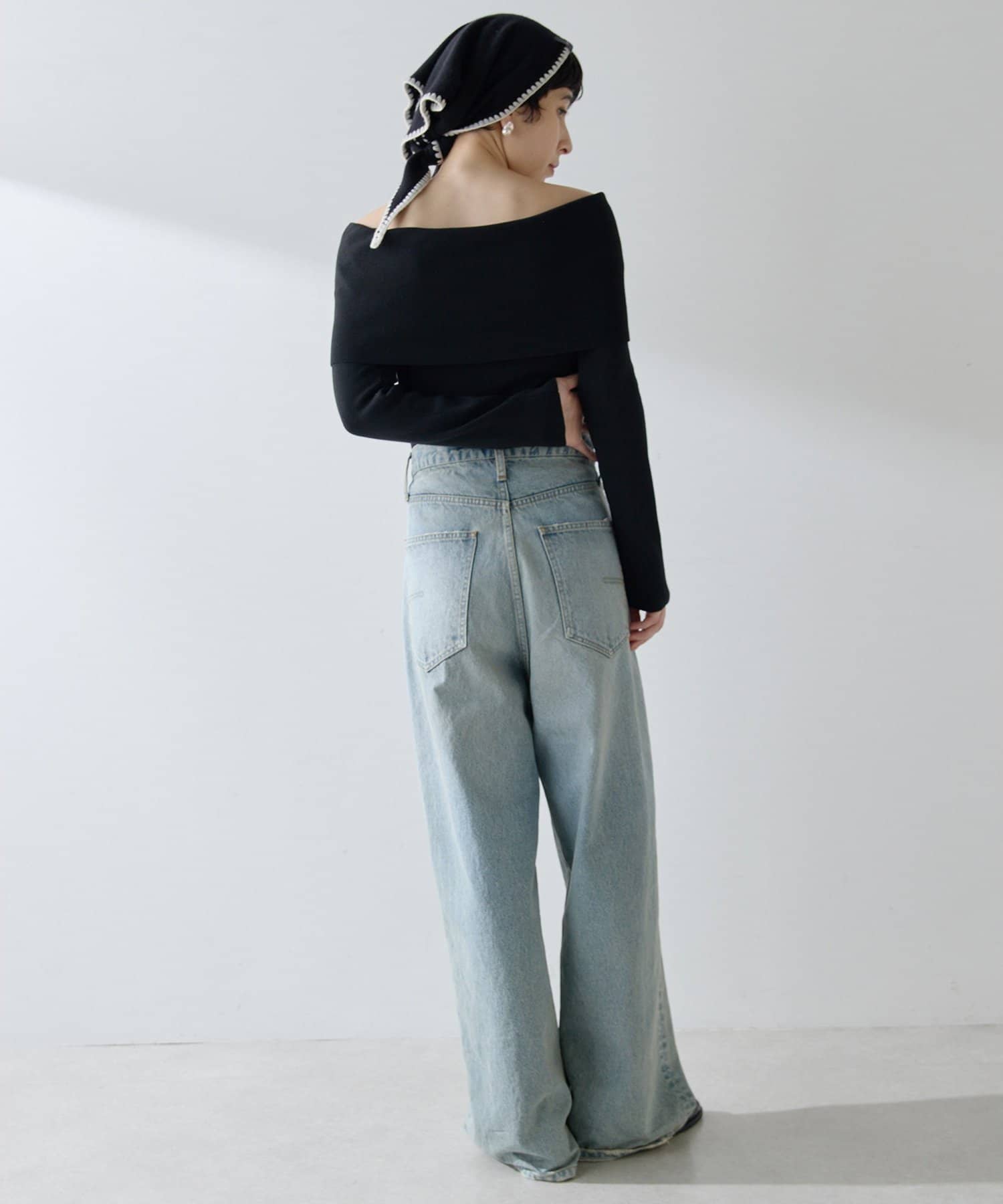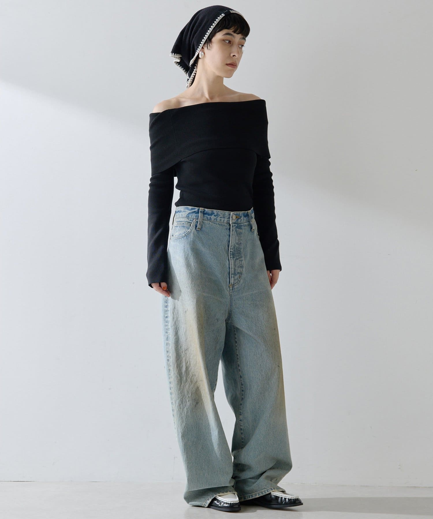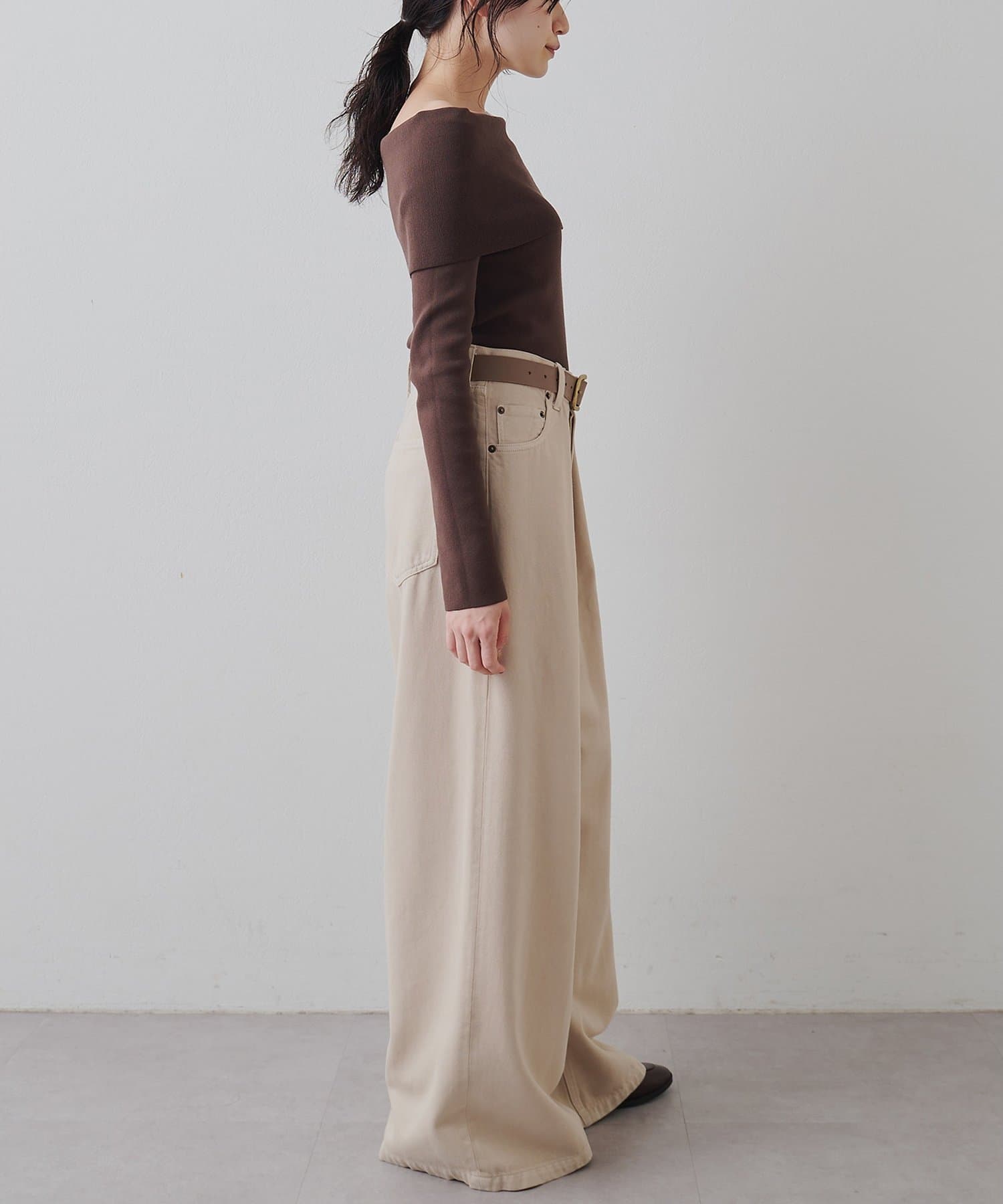■オフショルダーデザインがポイントの長袖ニットプルオーバー。
