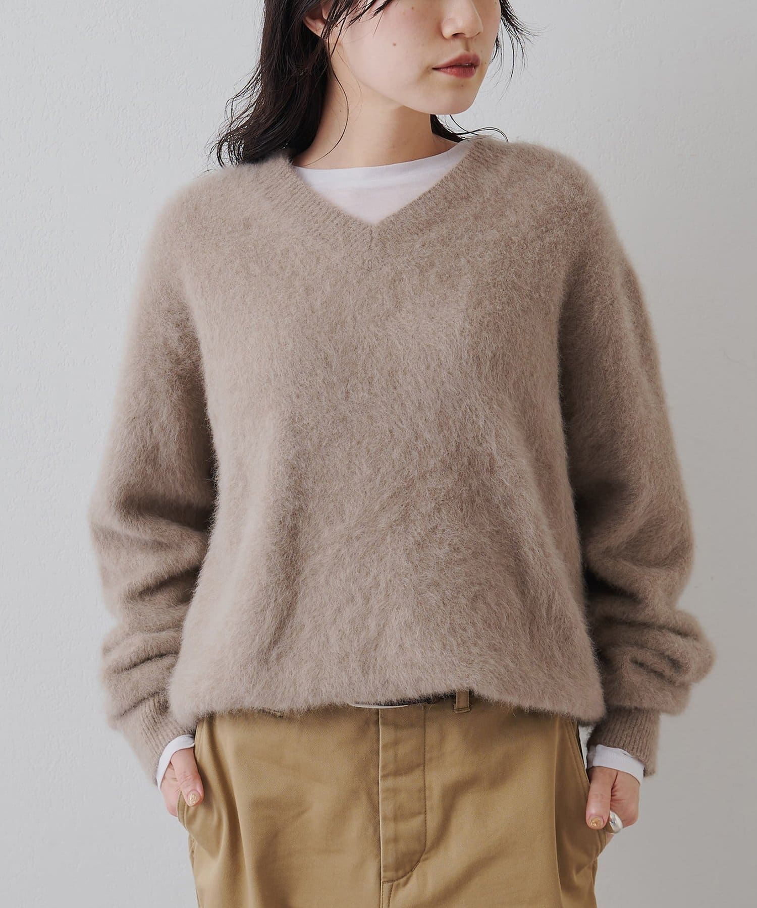■毛足感のあるふんわりとした風合いが魅力のVネックニット。