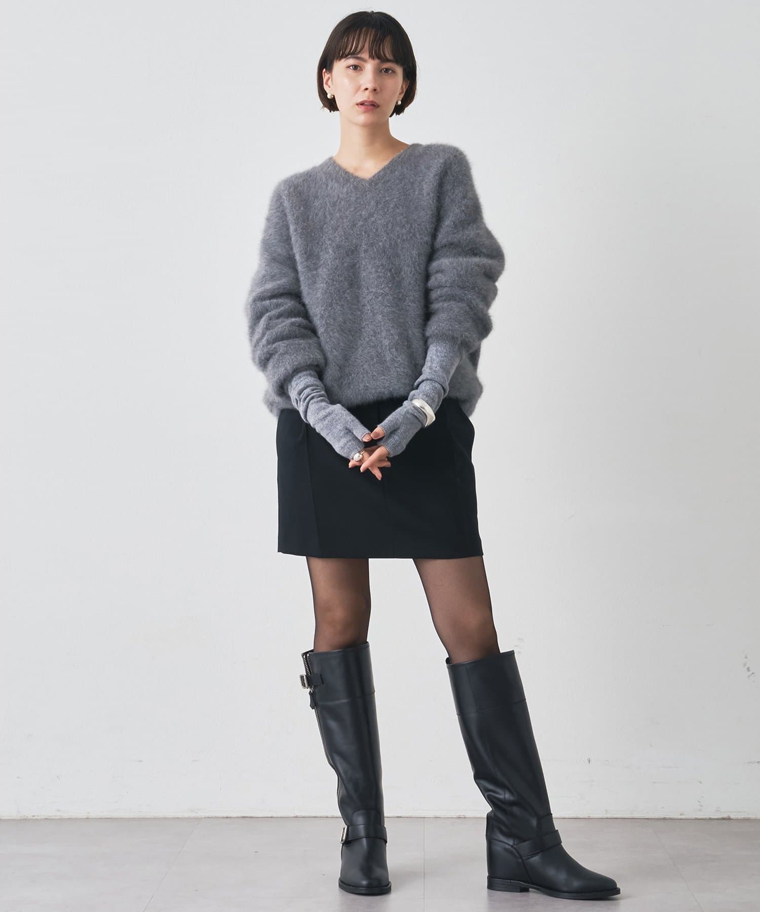 ■シャギーのボリューム感がありつつもVネックですっきりとした印象に。
