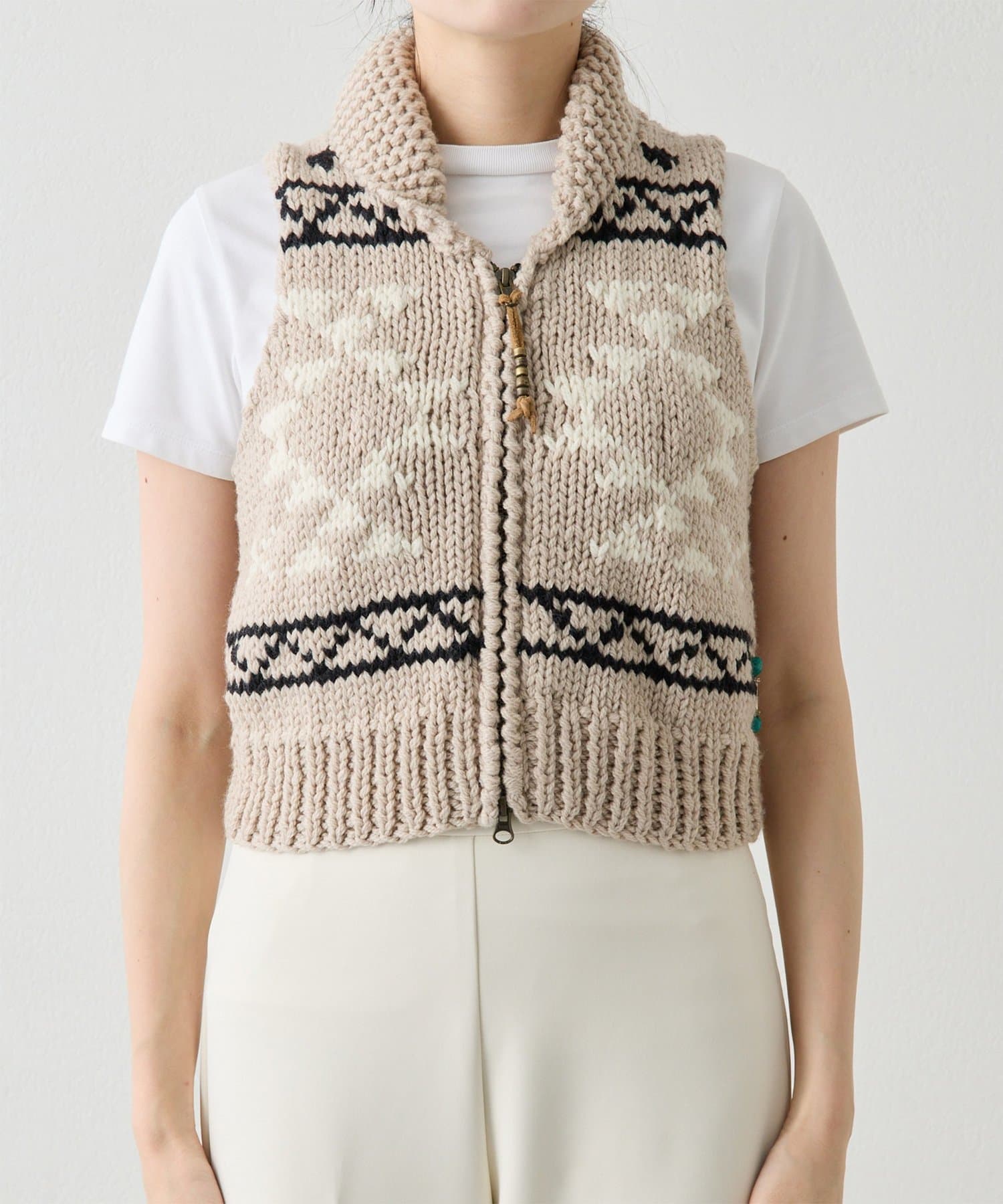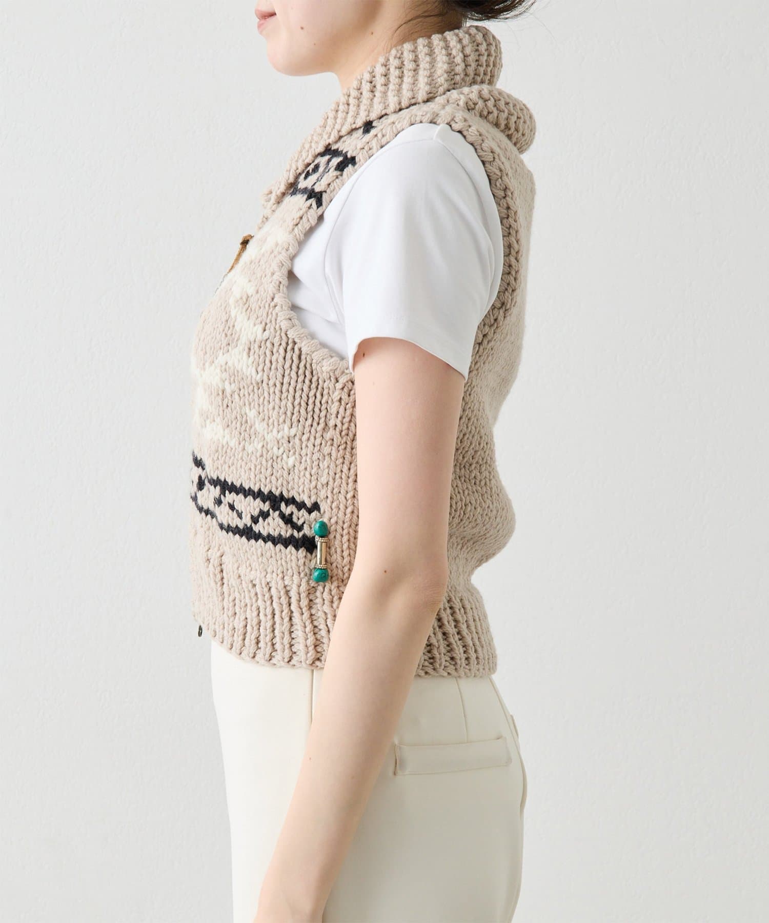■太番手のウール糸を使用したクラフト感のあるハンドニットベスト。