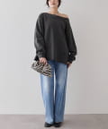 女性らしく着こなせる、抜け感オフショルスウェット
