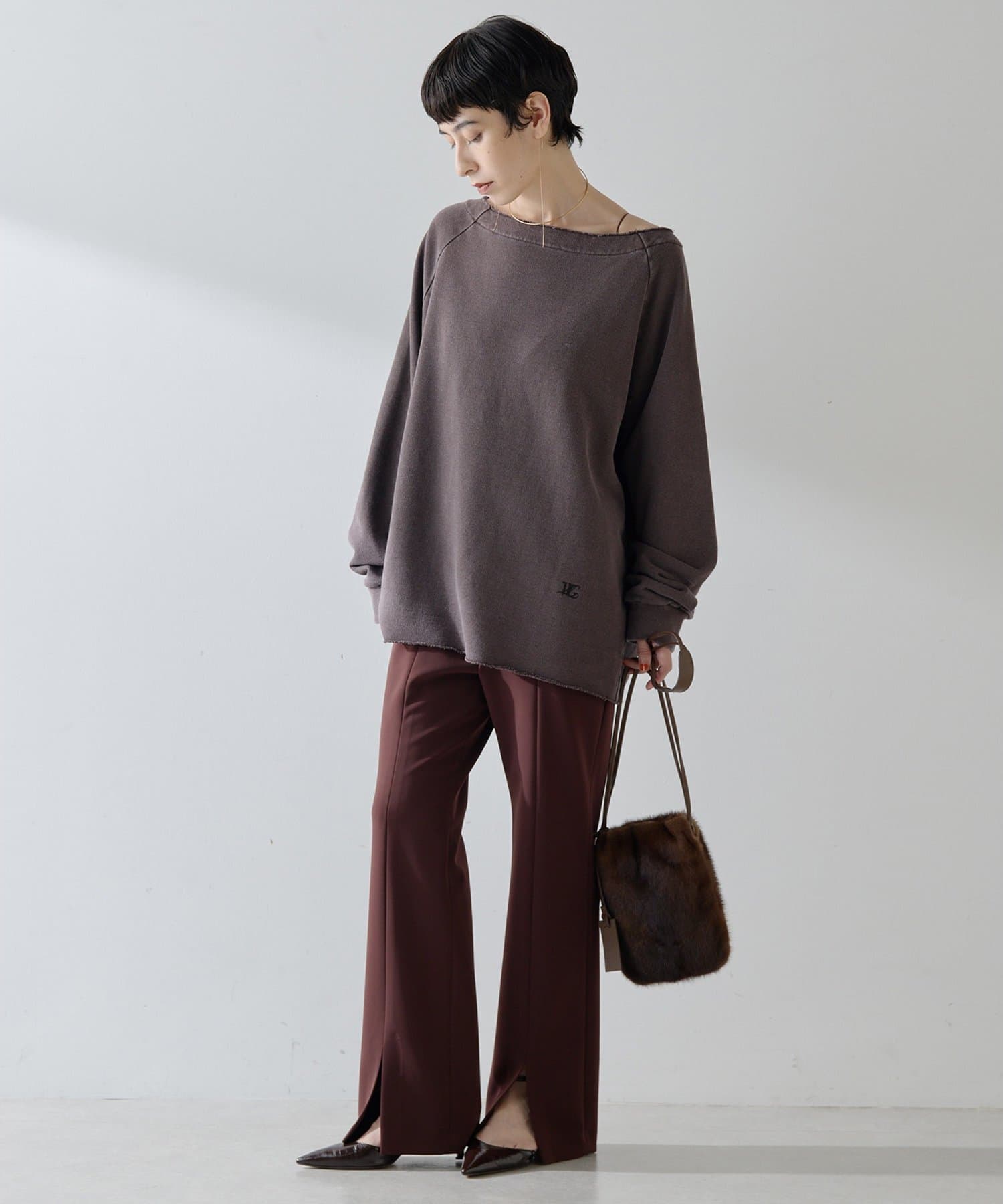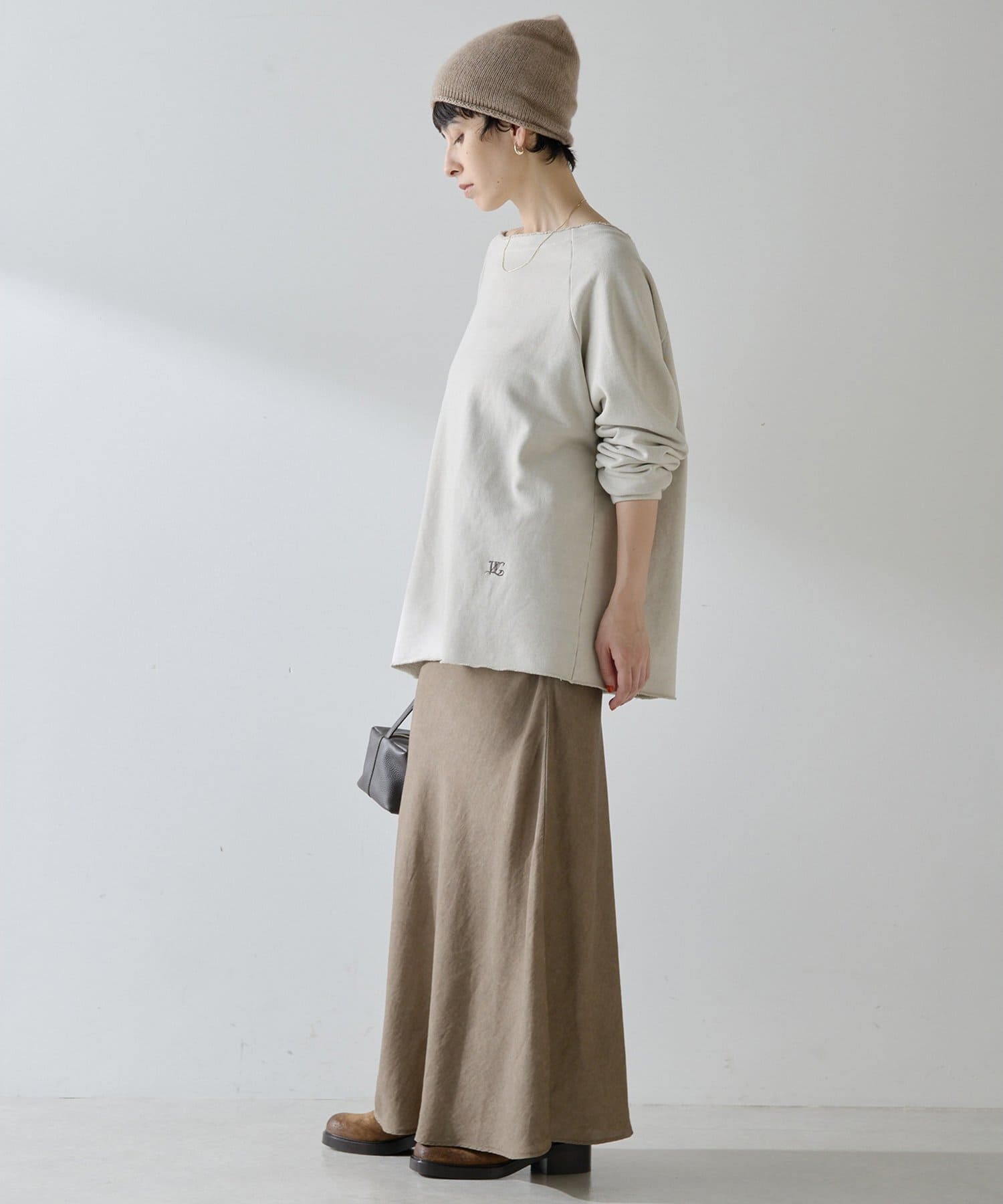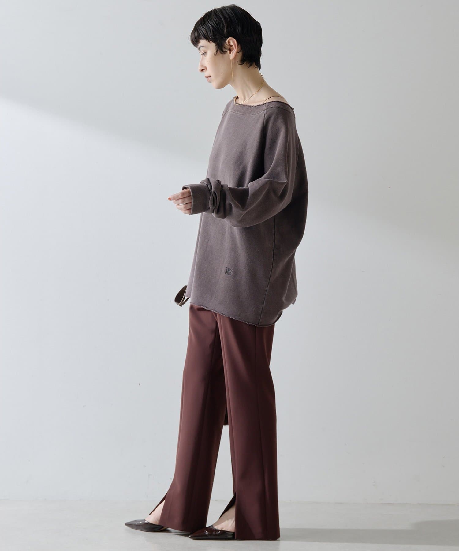■カジュアルになりがちな裏毛を女性らしく大人の雰囲気に仕上げた一枚。