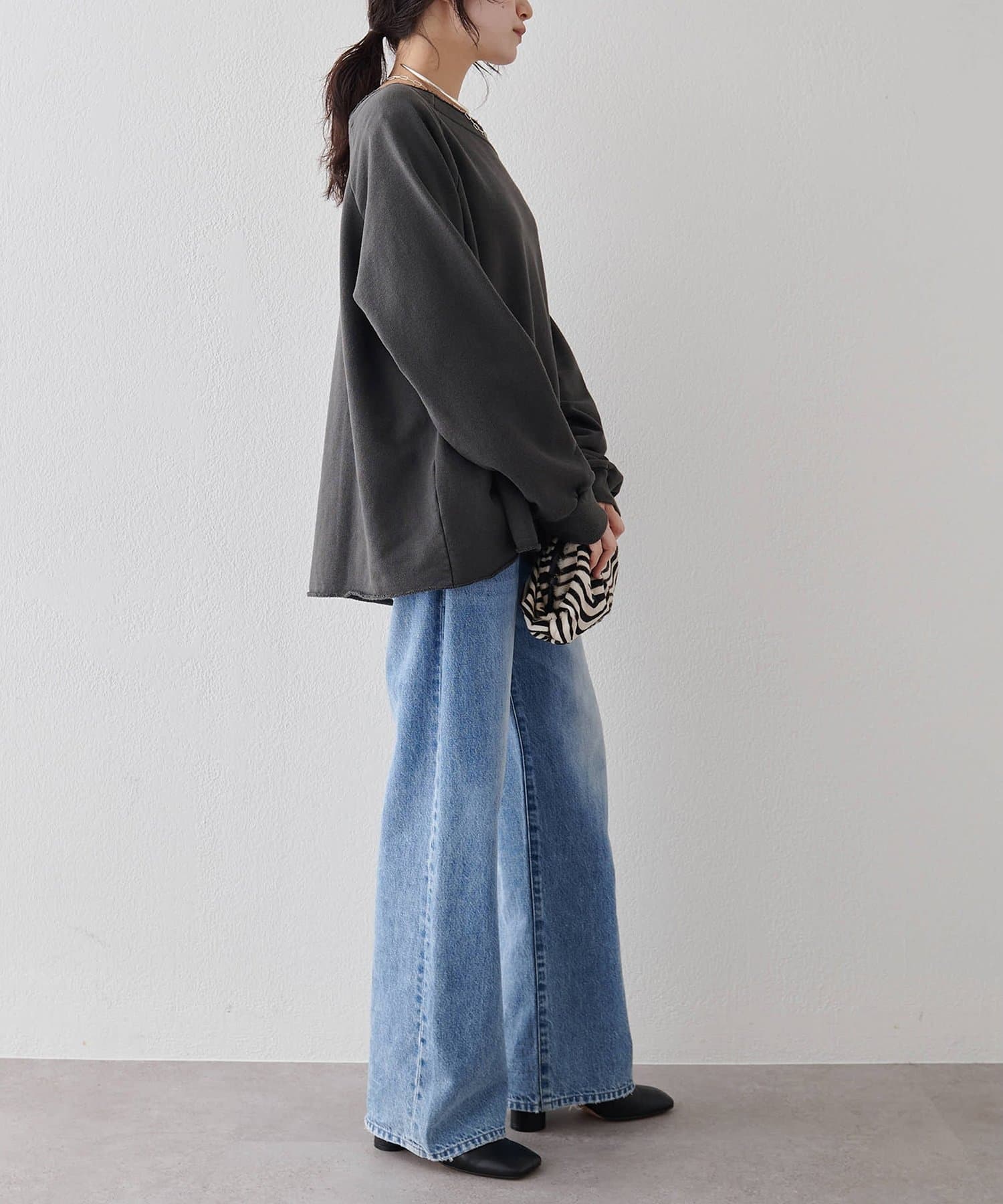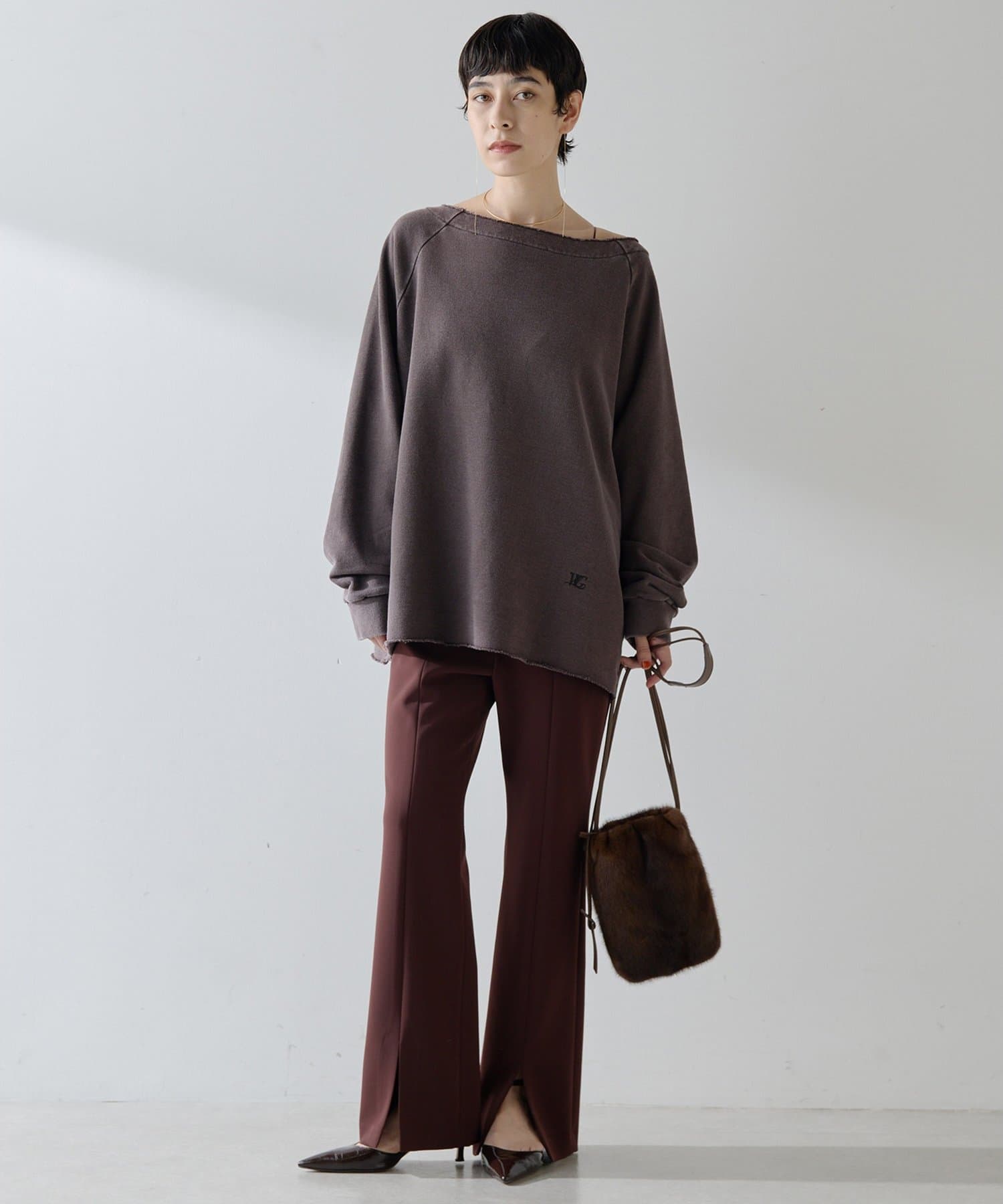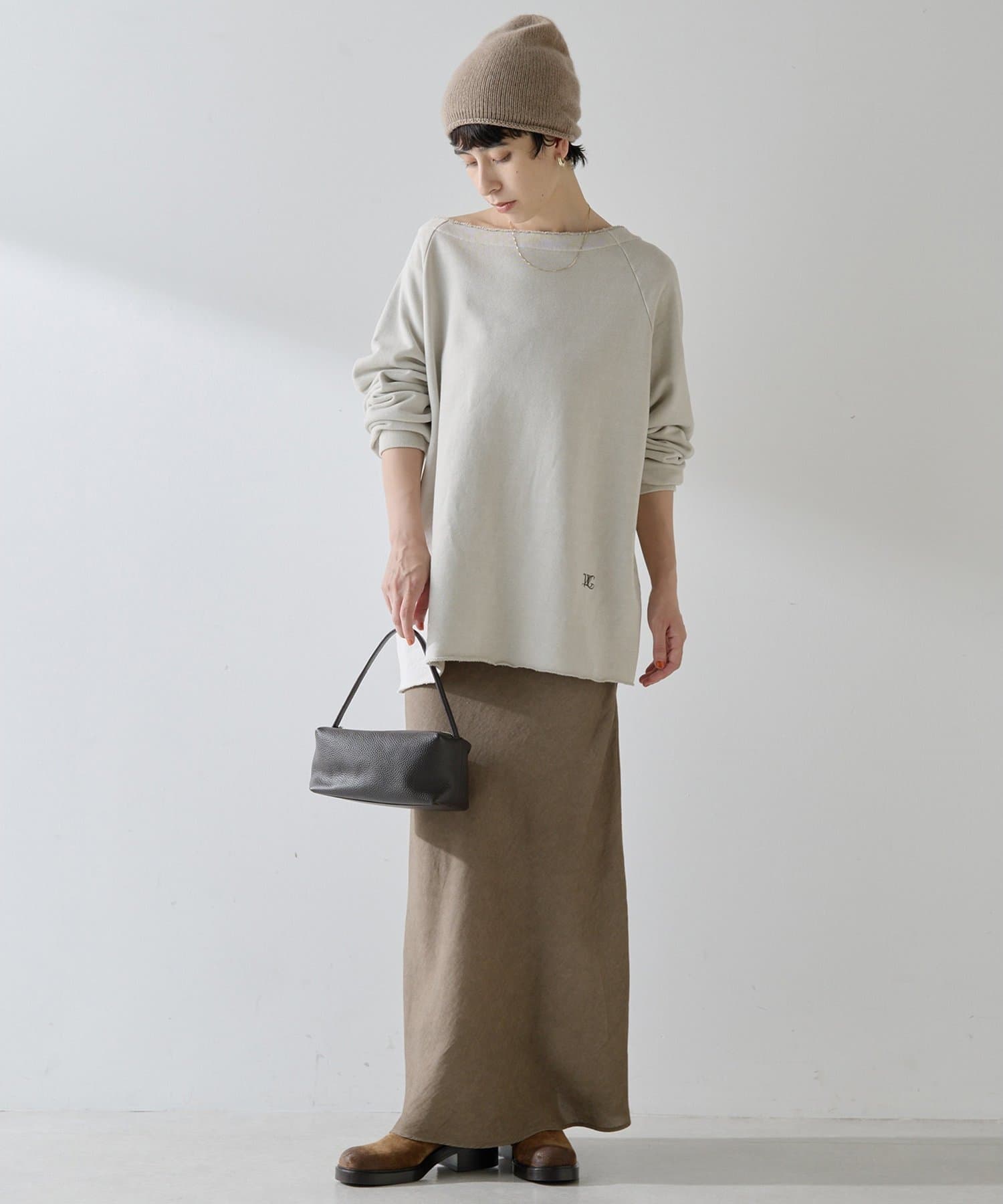 ■カジュアルになりがちな裏毛を女性らしく大人の雰囲気に仕上げた一枚。